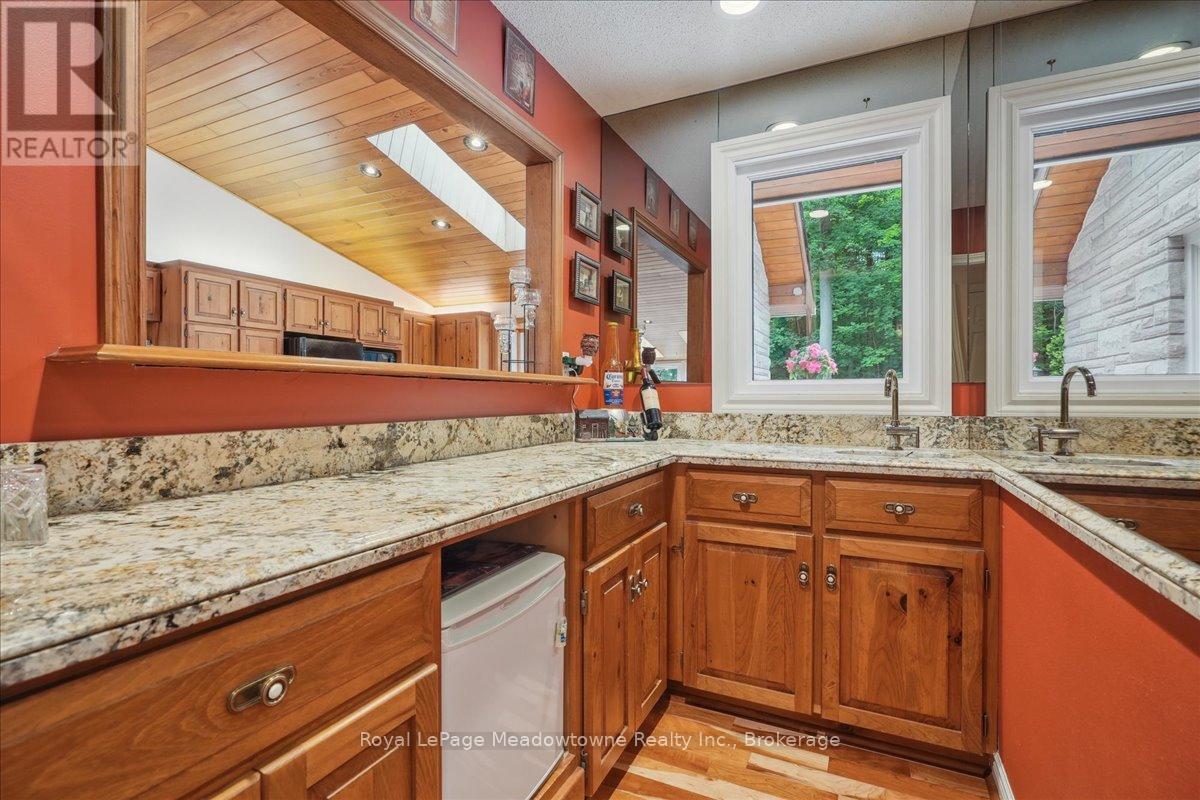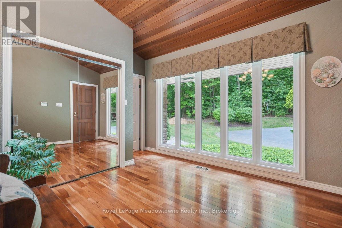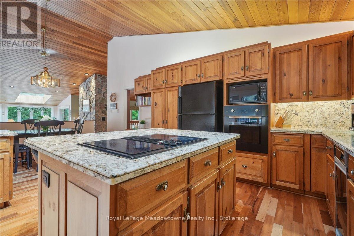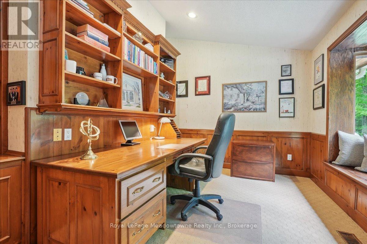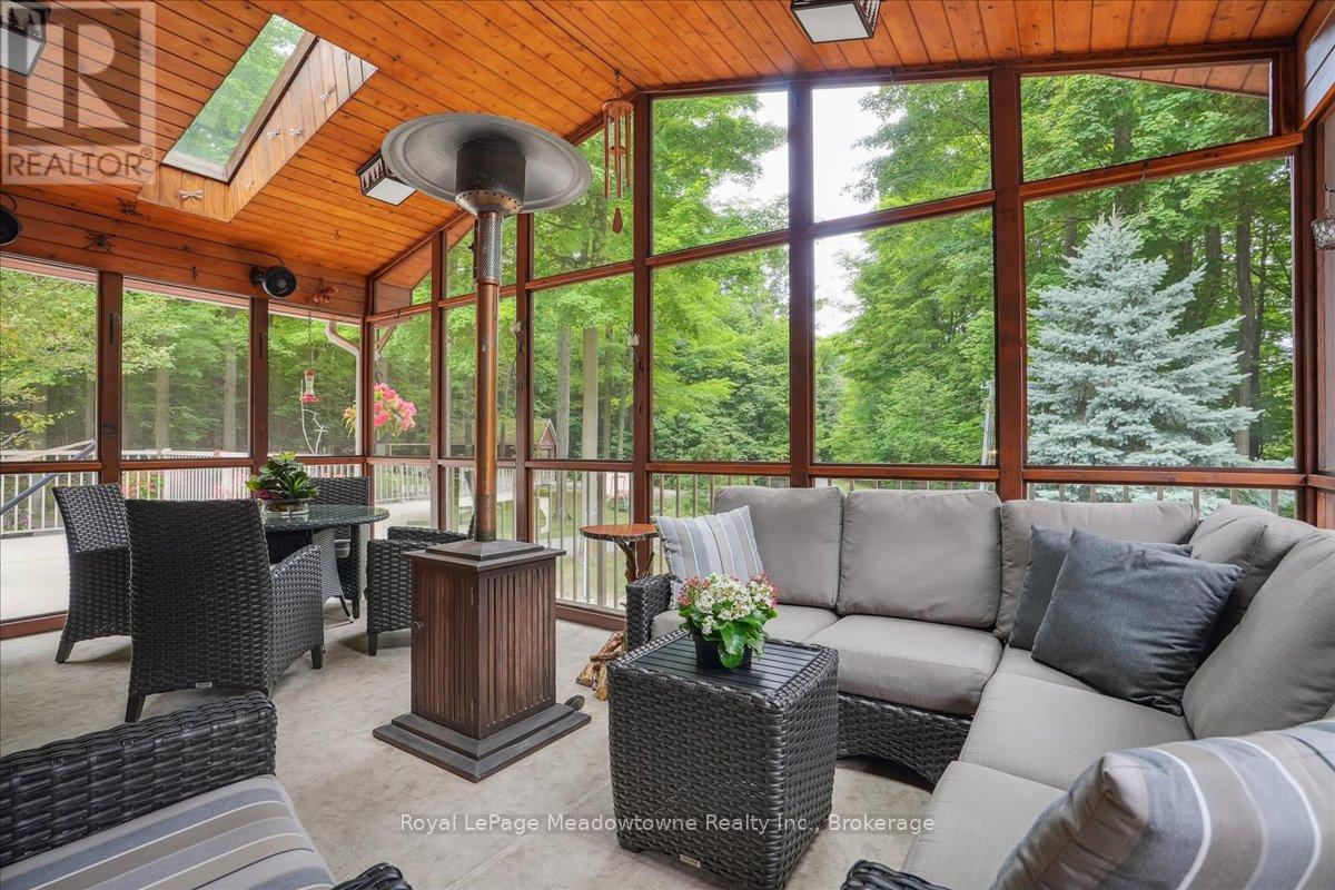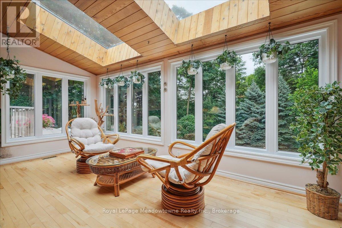 Discover an unparalleled gem rarely available on the market: a private and serene estate with a custom-designed home that fulfills every dream. Set on over 10 lush acres amidst the stunning Niagara Escarpment, this meticulously cared-for property is just minutes from the 401 and downtown Milton. Surrounded by vibrant perennial gardens and towering mature trees, this home is perfectly positioned in the heart of Halton Conservation's premier parks. You'll be just moments from Kelso Conservation Area, Rattlesnake Point, Crawford Lake, Hilton Falls, and the Bruce Trail ideal for outdoor enthusiasts and nature lovers. The custom-built bungalow features over 6,000 sq. ft. of exquisite living space. Its open-concept design showcases vaulted ceilings, a double-sided stone fireplace, a spacious kitchen with pine cabinets, granite countertops, and an island. A convenient wet bar, elegant dining room, and a fantastic outdoor screen room offers the perfect space for 3-season entertaining. Enjoy stunning views from walkout decks off the kitchen, screen room, sun room, and master bedroom balcony. The lower level is a haven of relaxation and recreation. You will find a large recreation room with a cozy wood-burning stove, a games room, four additional bedrooms, and access to a three-car garage. Walk out to a luxurious inground pool with a hot tub, cabana, and a soothing water feature. The home is equipped with a 400-amp electrical service, a propane-powered generator, and a geothermal heating and cooling system. A separate two-car garage provides the ideal "Man Cave" and additional storage for garden equipment. Garden enthusiasts will love the large greenhouse/potting shed, and the property boasts a fire pit with a patio area, night landscape lighting, and over one kilometer of meticulously groomed walking trails. Why settle for a cottage when you can have this dream home without the drive? Experience the ultimate in luxury and tranquility this is truly what dreams are made of! (41462073)