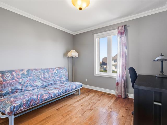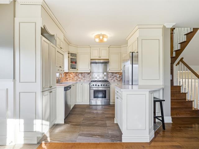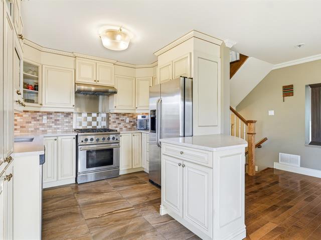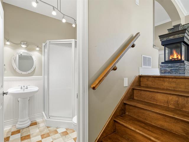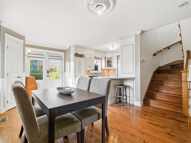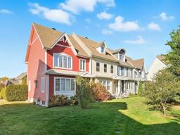 COLORFUL NEIGHBORHOOD. Beautiful corner townhouse, semi-detached condominium, offering 2 large bedrooms upstairs and the possibility of adding a third in the basement. Two bathrooms, three-sided natural gas fireplace, and country-style kitchen with quartz countertops. Private yard bordered by cedar hedges with deck, shed, and two parking spaces. Natural gas central heating system with integrated air conditioning. Located close to everything: schools, daycare centers, parks, bike paths, and public transportation. (50858220)
