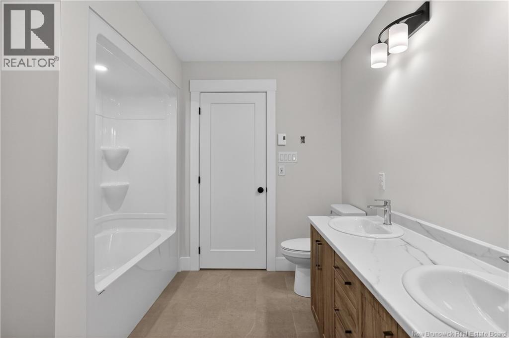 BRAND NEW HOME WITH WALKOUT BASEMENT, ATTACHED GARAGE & TREED BACKYARD Welcome to this beautifully crafted new build located in the peaceful village of Memramcook. Thoughtfully designed, this home combines modern finishes, a functional layout, and a serene natural setting. The main level offers an open-concept living area, featuring a beautiful kitchen with a center island and stainless steel appliances. The living room opens onto a 12x10 back deck, ideal for relaxing or entertaining while enjoying the private, treed backyard. The spacious primary bedroom includes a walk-in closet and direct access to a large bathroom complete with a double vanity and convenient laundry area. A second bedroom provides flexibility for guests, a home office, or additional living space. The finished walkout basement adds excellent value, offering a large family room, a third bedroom, a full 4-piece bathroom, a storage room, and an additional unfinished room with potential for future living space. Additional highlights include a paved driveway, epoxy-coated garage floor, landscaped lot, and a brick-accented exterior that enhances curb appeal. Located just minutes from Dieppe, this home delivers a quiet lifestyle with easy access to amenities. Perfect for first-time buyers or those looking to downsize, this property offers comfort, style, and natural beauty. Please note that the lot will be subdivided prior to closing. Dont waitcall today to book your private showing! (29130856)