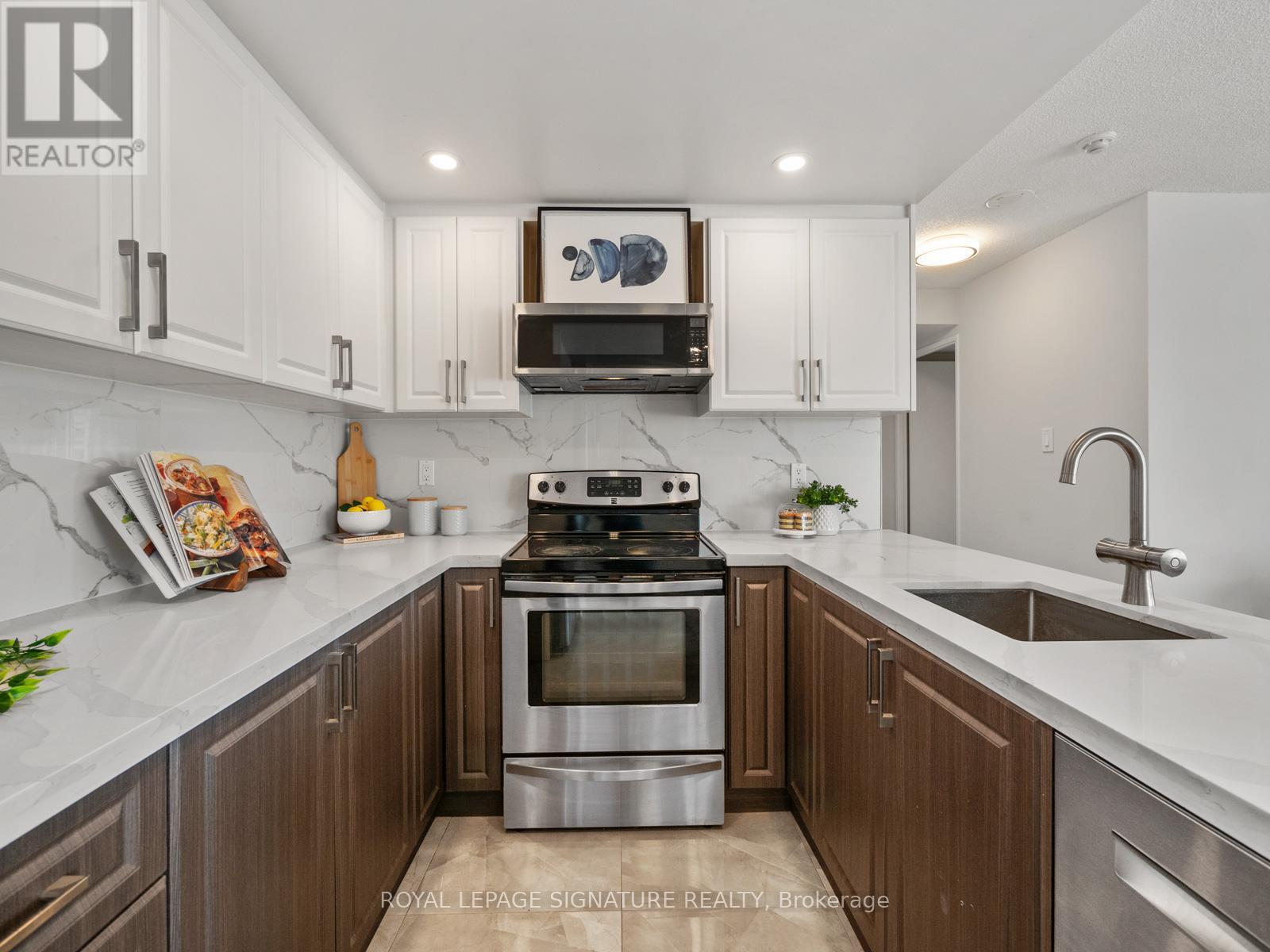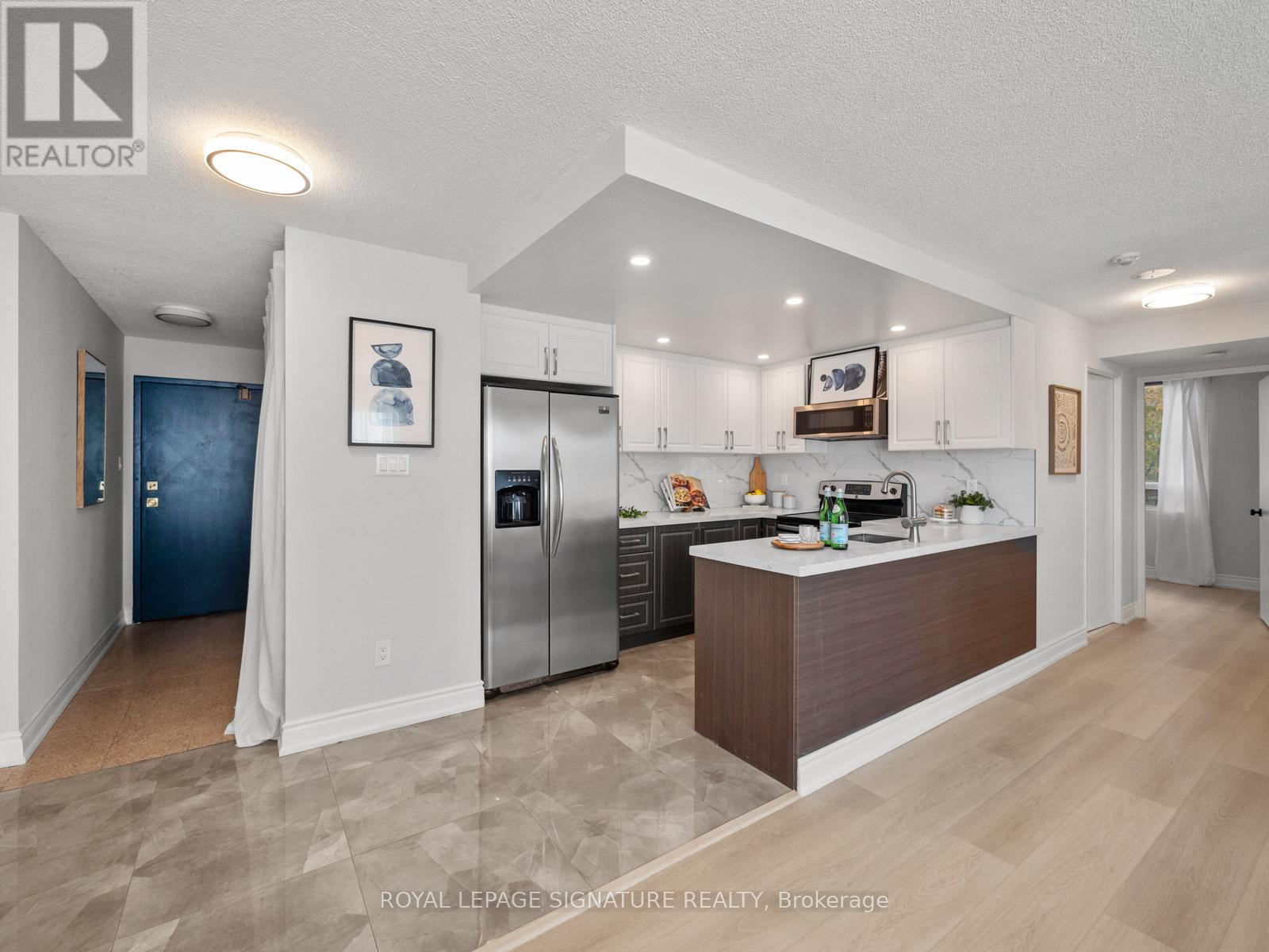 **Open House Sunday, Dec 14th, 12 pm-3 pm - Each open house guest will be entered into a draw to win a $250 gift card of their choice (restrictions apply) - See you Sunday!** Location is everything at Mapledale! Welcome to this spacious, sun-filled 3-bedroom, 2-bath condo perfectly situated across from U of T Scarborough and Centennial College. Enjoy a renovated kitchen with quartz counters and stainless steel appliances, an open-concept living space, fresh paint, brand-new luxury vinyl flooring throughout, modern lighting, and an en-suite laundry. Just steps to Pan Am Sports Centre, Food Basics, Dollarama, Tim Hortons, and Morningside Park trails, no car needed - but we have a spot in case you need one:) Also includes 2 Lockers!! Mapledale offers 24-hour concierge/Security, underground parking, free visitor parking, indoor pool, sauna, tennis court, and games room. Move-in ready and ideal for students, first-time buyers, or downsizers, don't miss this opportunity! (41472157)