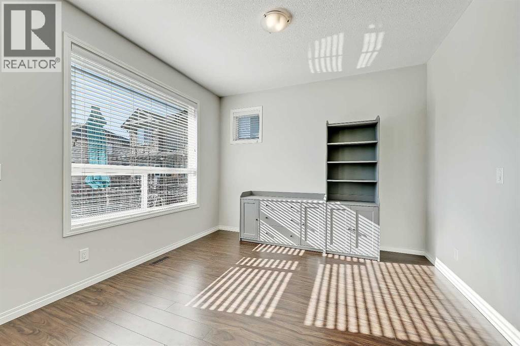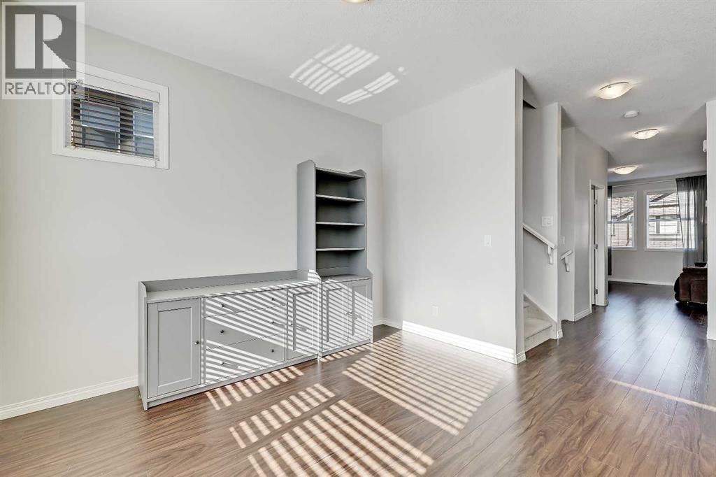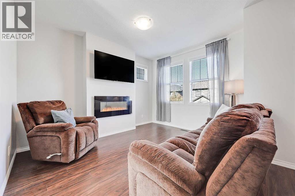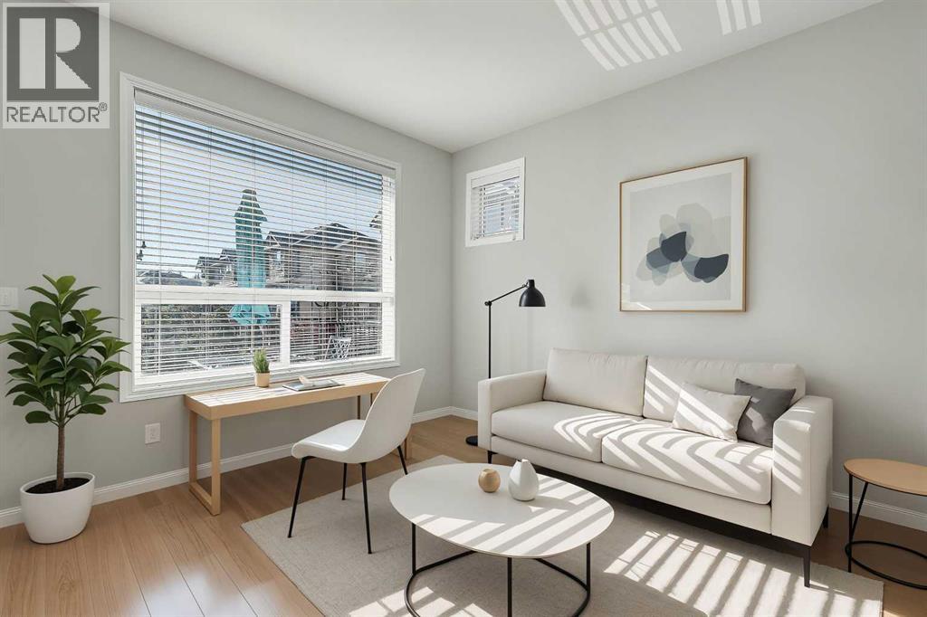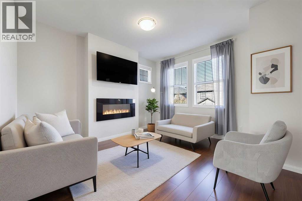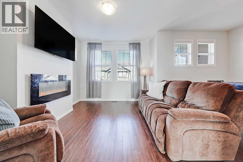 BRIGHT END UNIT | DOUBLE GARAGE | FINISHED WALKOUT BASEMENT | SCHOOL & NATURE PRESERVE STEPS AWAY! This spacious end unit in the family and pet-friendly Bridges at Williamstown complex offers an exceptional location with a south-facing balcony and enclosed yard that overlook the central courtyard. This property also provides easy access to an absolute abundance of amenities including playgrounds, parks, pathways, sports fields, Herons Crossing School just steps away, direct access to Williamstown Nose Creek Preserve right from the complex and close proximity to Reunion Pond, Woodside Golf Course and the shops, services, restaurants and retail along Veterans Boulevard.As you enter the property you will discover a main floor designed for both comfort and functionality. The spacious front foyer welcomes you with a large closet and easy access to the main and lower walkout levels of the home. Wide plank laminate floors flow throughout, enhancing the open-concept layout. The well-appointed kitchen offers rich cabinetry, stainless steel appliances, a pantry closet, ample granite countertop space, island with sit up breakfast bar, nook and a stylish stacked tile backsplash. The main living room is connected to the designated dining room and is warm and welcoming with bright windows and an attractive electric fireplace, perfect for relaxing evenings or gathering with friends. The main floor is completed with a half bathroom and a functional flex space that is ideal as a sitting room, reading area or computer station and provides direct access to the balcony. Upstairs, the home continues to impress, the spacious primary bedroom is a true retreat offering room for a king-sized bed, a generous walk-in closet and a 4-piece ensuite with a double vanity and a fully tiled shower. There are 2 additional bedrooms that offer size and versatility - ideal for kids/teens or a home office. Finishing off the upper level is a 4-piece bathroom with a large vanity and full tub/show er combination and a convenient laundry closet. The fully finished lower walkout level is as versatile as it is welcoming. It can easily serve as a 4th bedroom with a separate entrance and dedicated bathroom, or as a multi-use space for a home theatre or games room. Highlights include a modern 3-piece bathroom with in-floor heating, privacy door separating the space and oversized windows. From this level, you’ll also find access to the utility room and the attached double garage.The outdoor living areas are outstanding with a sunny, south-facing raised balcony on the main level that overlooks the courtyard and a good-sized lower concrete patio and fenced yard off the lower level, perfect for sipping your morning coffee or just relaxing and enjoying the space. Additional features include 9’ ceilings on the main level, new stove and over the range microwave (2024), new paint (2025), large driveway with room for 2 vehicles, ample visitor parking close to the unit and more. Welcome Home. (31270695)