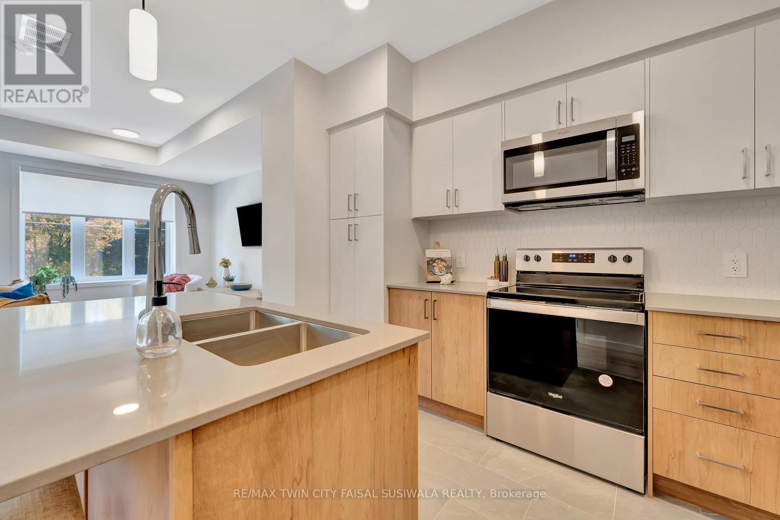 VIVA-THE BRIGHTEST ADDITION TO DOWNTOWN KITCHENER. In this exclusive community located on Mill Street near downtown Kitchener, life at Viva offers residents the perfect blend of nature, neighbourhood & nightlife. Step outside your doors at Viva and hit the Iron Horse Trail. Walk, run, bike, and stroll through connections to parks and open spaces, on and off-road cycling routes, the iON LRT systems, downtown Kitchener and several neighbourhoods. Victoria Park is also just steps away, with scenic surroundings, play and exercise equipment, a splash pad, and winter skating. Nestled in a professionally landscaped exterior, these modern stacked townhomes are finely crafted with unique layouts. The Hibiscus end model boasts an open-concept main floor layout - ideal for entertaining including the kitchen with a breakfast bar, quartz countertops, ceramic and luxury vinyl plank flooring throughout, stainless steel appliances, and more. Offering 1450 sqft including 2 bedrooms, 1 full bathroom, 2 powder rooms, and a covered porch. Thrive in the heart of Kitchener where you can easily grab your favourite latte Uptown, catch up on errands, or head to your yoga class in the park. Relish in the best of both worlds with a bright and vibrant lifestyle in downtown Kitchener, while enjoying the quiet and calm of a mature neighbourhood. (41476209)
