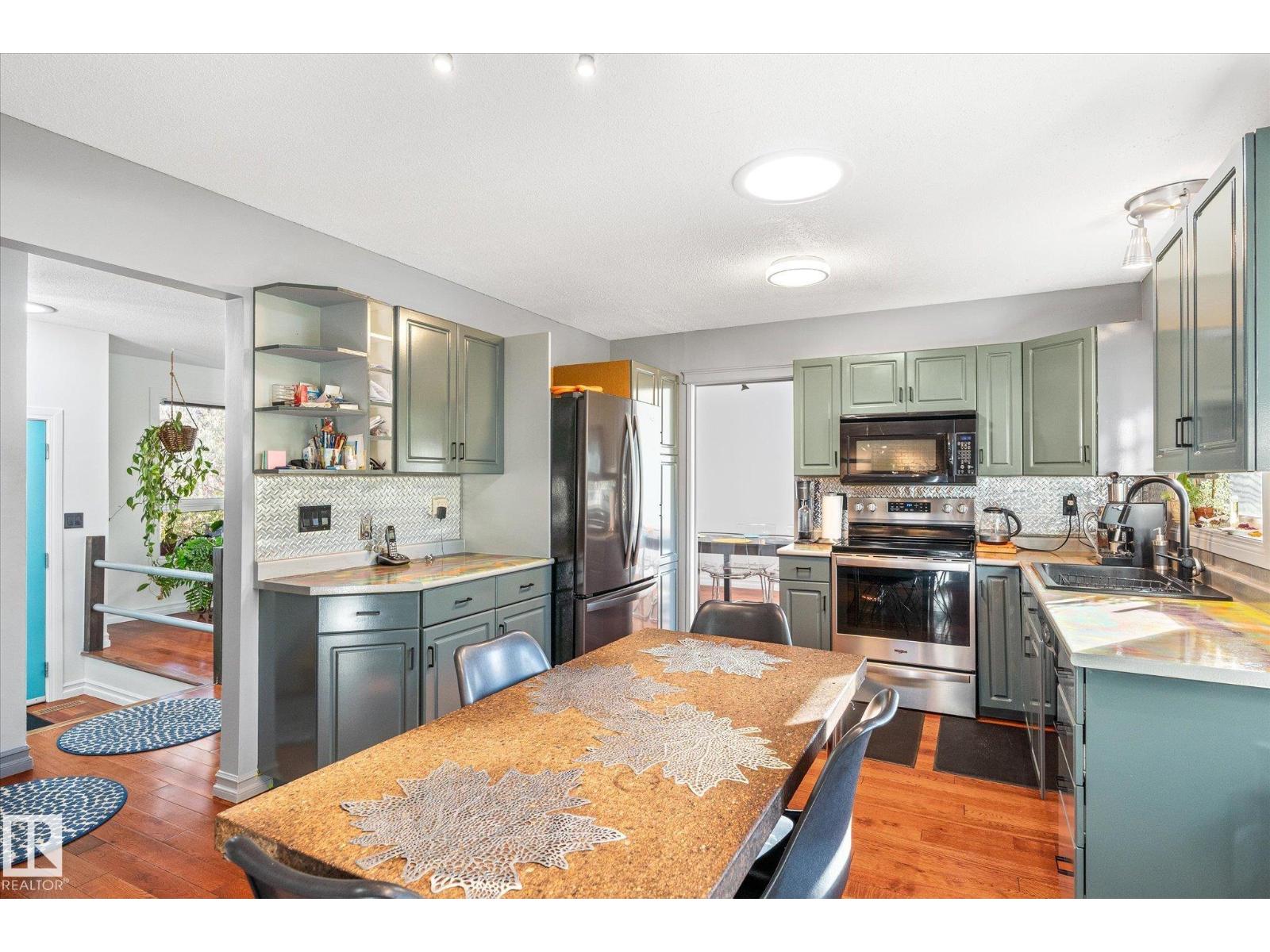 A sanctuary of light, comfort, and connection to nature in the heart of Steinhauer. This beautifully maintained 4-level split offers over 1,800 sq.ft. with 4 bedrooms and 3 full baths, including two ensuites. Thoughtfully upgraded with triple-pane windows, sun tunnels in the main living areas, high-efficiency furnace & A/C, HWT, updated lighting, 40-year roof, new siding with added insulation, redone concrete driveway, and an insulated double garage. Oak hardwood floors, large windows, and a wood-burning fireplace create warmth throughout. Every window connects to nature: olive and mulberry trees in front, and a west-facing backyard with a covered patio, fruiting plants, herbs, berries, and a ready-to-grow vegetable garden. Near schools, parks, & minutes to the LRT, this home blends comfort, design, and an inspiring connection to the outdoors. With all major updates complete and a warm, inviting layout, this rare opportunity offers long-term peace of mind and everyday beauty. (33469157)
