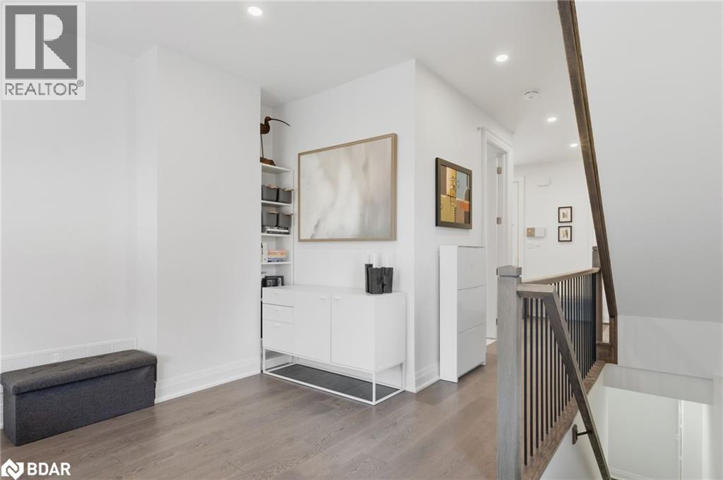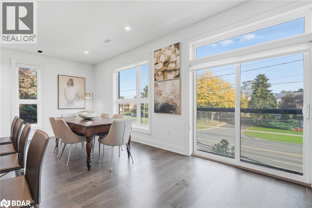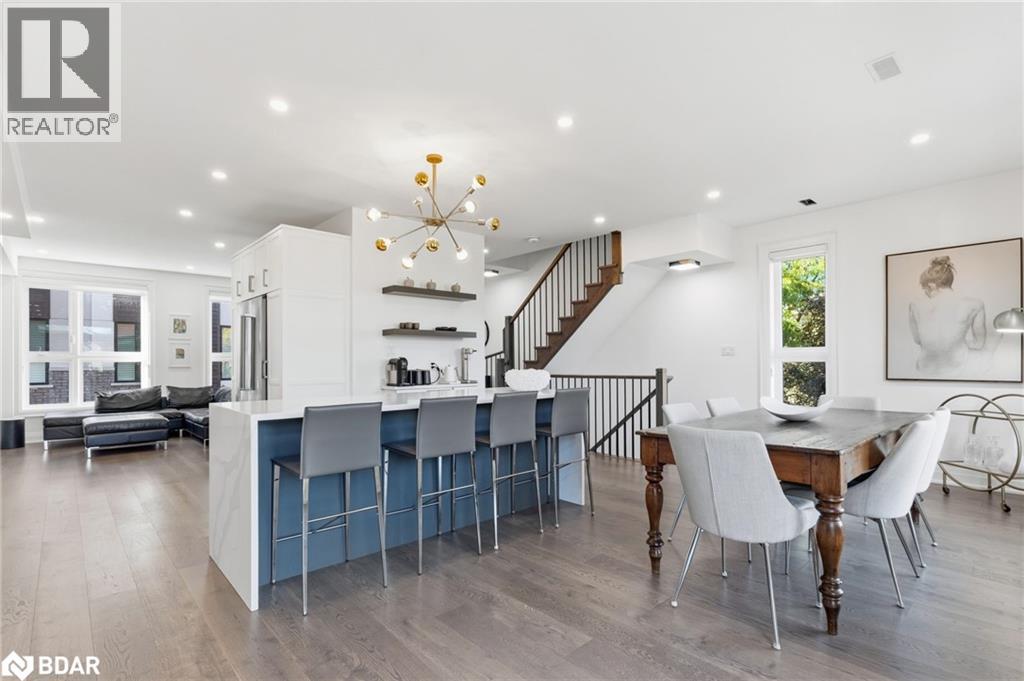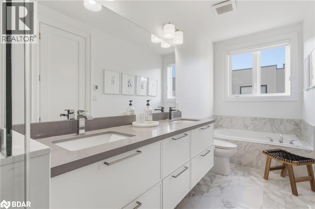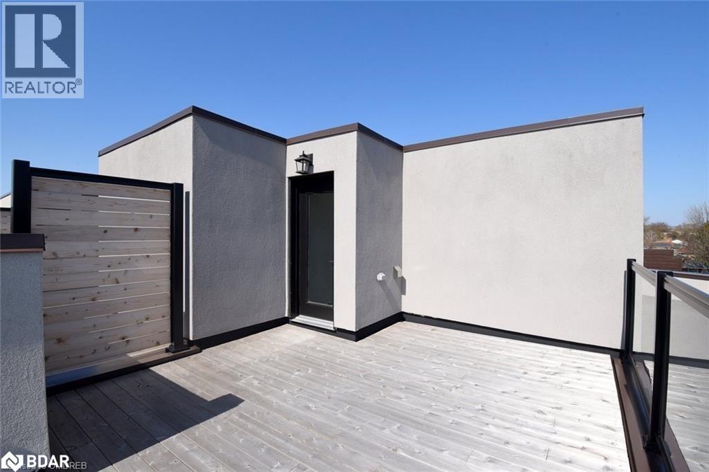 A One-of-a-Kind FREEHOLD Townhome in a Sought-After Community, Exceptional in both design and scale, this beautiful three-bedroom home stands apart as the largest and widest floorplan in this exclusive ten-residence enclave. Every detail has been carefully chosen, creating a bright, refined living space filled with natural light from its extra-large windows. The exterior blends brick, stone, and stucco with a striking 8-foot modern entrance door. Inside, you’ll find 9-foot ceilings on every level, 8-foot solid interior wood doors, upgraded trim, and hardwood floors throughout—no carpet anywhere. The custom kitchen is the heart of the home, featuring soft-close cabinetry, quartz countertops and backsplash, a waterfall island with undermount sink, KitchenAid appliances including a gas stove, and a built-in beverage fridge. The open-concept living area flows seamlessly and features a gas fireplace and Juliette balcony, creating a space that feels both stylish and inviting. The oak staircase with metal pickets and Hunter Douglas blinds continue the home’s attention to detail. Upstairs, the primary suite offers a spa-like retreat with heated floors, a frameless glass shower, and double comfort-height vanities. Additional thoughtful upgrades such as custom closet organizers, LED pot lights, and a full-sized washer and dryer finishes the space beautifully. The appeal extends outdoors with a rare 375-square-foot rooftop terrace finished in cedar and complete with a gas line for barbecuing—perfect for relaxing or entertaining under the open sky. Additional conveniences include inside garage entry, a large window in the garage, a covered second parking space, and an owned hot water tank. Located close to Downtown Burlington, shopping, schools, parks, the Burlington Centennial Bike Path, public transportation, major highways and the GO Train. This is a home worth seeing... you will truly be impressed. (69787039)