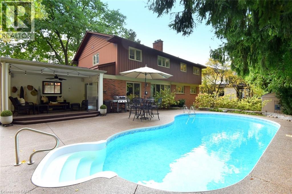 SITUATED IN A PRIME ANCASTER LOCATION ON A BEAUTIFULLY TREE LINED STREET. FOR THOSE OF YOU WHO WILL APPRECIATE THIS TRADITIONAL FLOOR PLAN, YOUR SEARCH IS DEFINITELY OVER. TRULY A HOME FOR ENTERTAINING, SUPER SIZED BRIGHT KITCHEN WITH EASY CARE LAMINATE FLOORING, ENDLESS CABINETRY & SHELVING. EXIT DOOR INTO GARAGE IS DEFINITELY AN ADDED FEATURE. HUMONGOUS FAMILY ROOM WHERE YOU CAN SHARE THE SPACE WITH YOUR LOVED ONES. DON'T WANT TO SHARE SPACE? SEPARATE SUNKEN LIVING ROOM WITH WOOD BURNING FIREPLACE FOR THOSE COLD WINTER NIGHTS AS YOU SIP ON YOUR FAVOURITE BEVERAGE. FORMAL DINING ROOM FOR THOSE DINNER PARTIES – 2 SETS OF SLIDING DOORS - ONE TO THE BACKYARD AND ONE TO THE FABULOUS COVERED PORCH, FEATURING EASY CARE CERAMIC FLOORING FOR EASY CLEAN UP. OVERLOOKING THE SPECTACULAR IN-GROUND SALTWATER POOL FOR THOSE HOT SUMMER DAYS. FEATURES INCLUDE AGGREGATE SURROUNDING THIS BEAUTIFUL POOL, AS WELL AS WALKWAY TO THE FRONT OF THIS SPECTACULAR HOME. MAIN FLOOR BEDROOM IS DEFINITELY AN ASSET FOR THOSE WHO DON'T LIKE STAIRS. CURRENTLY USED AS AN OFFICE FOR THOSE WHO HAVE WORKING FROM HOME FLEXIBILITY. UPPER LEVEL FEATURES 4 SUPER SIZED BEDROOMS AND GREAT LOFT AREA WITH NATURAL LIGHT FROM THE 2 SKYLIGHTS. MAIN BATHROOM IS WHERE YOU WILL ALSO FIND THE CONVENIENT LAUNDRY AREA. Also POTENTIAL FOR MULTI-GENERATIONAL LIVING AS THE BASEMENT FEATURES A SEPARATE STAIRCASE INTO THE GARAGE. CUSTOMIZE THIS LEVEL TO SUIT YOUR PERSONAL NEEDS OR SIMPLY MOVE IN AND ENJOY THE EXTRA BEDROOM, GAMES ROOM AND EXERCISE ROOM. SUPER LOCATION WITH EASY ACCESS TO ALL AMENITIES INCLUDE MEADOWLANDS SHOPPING WITHOUT LIVING TOO CLOSE TO THE TRAFFIC. YOU WILL NOT BE DISAPPOINTED. (69788613)