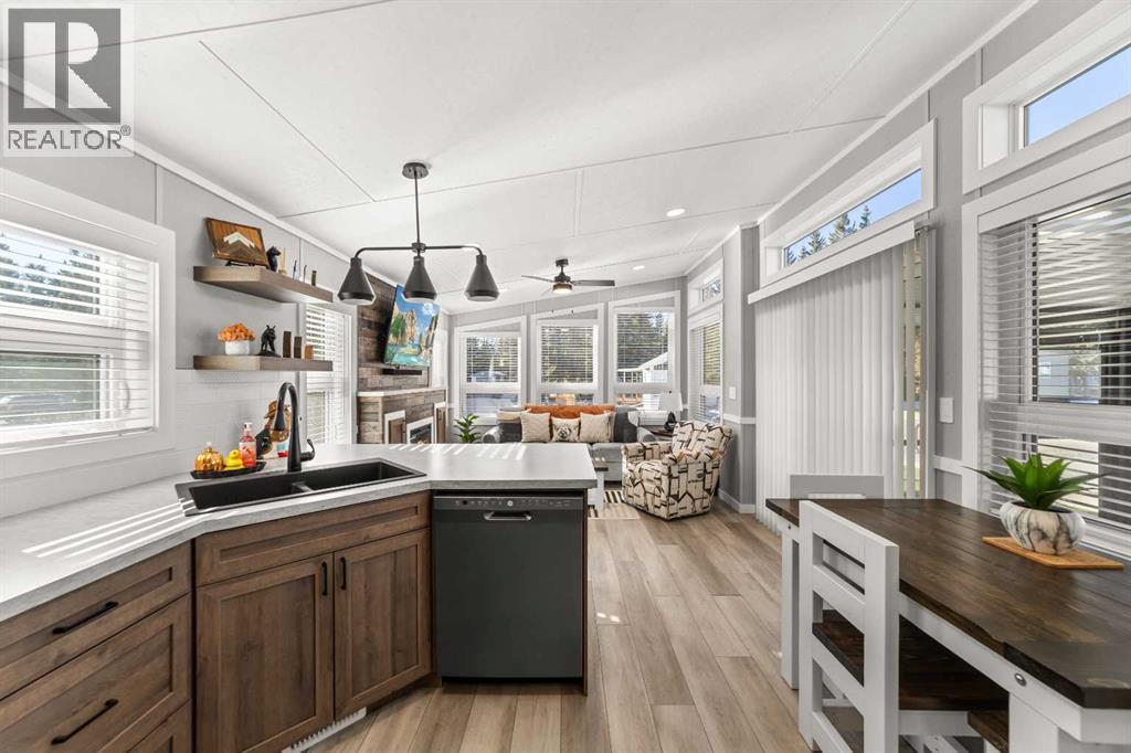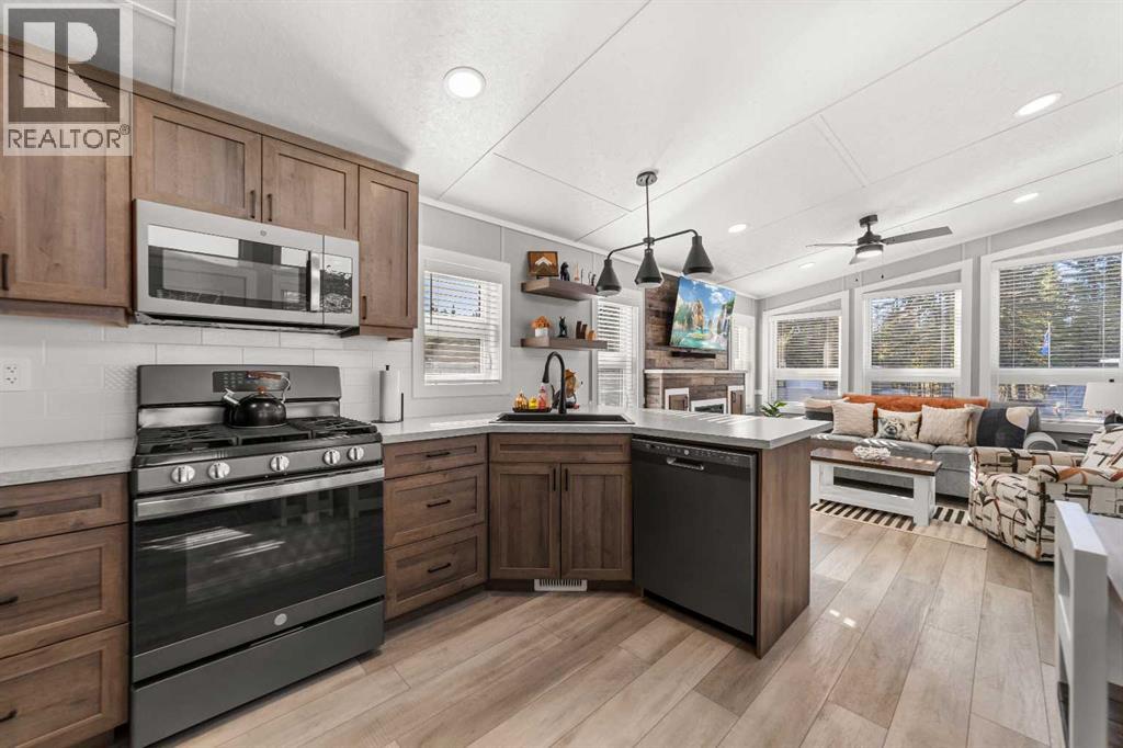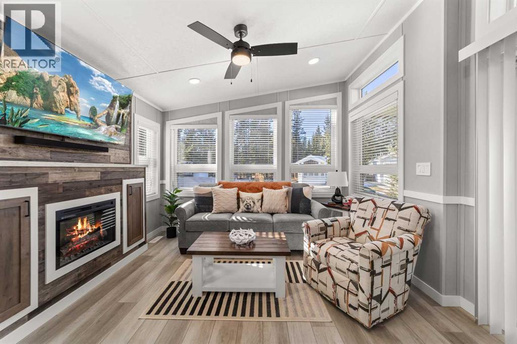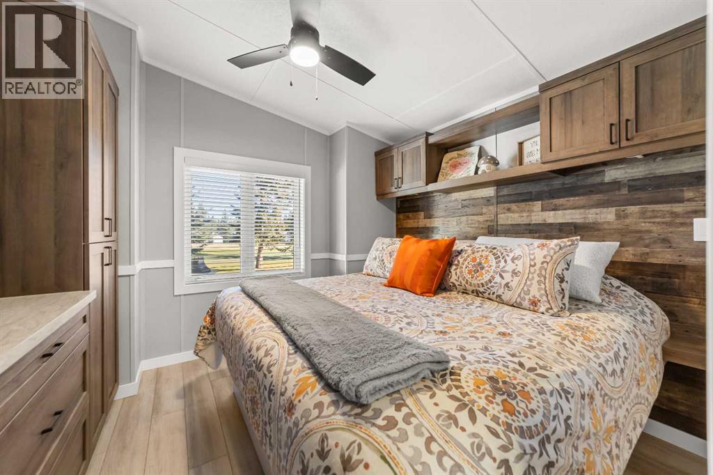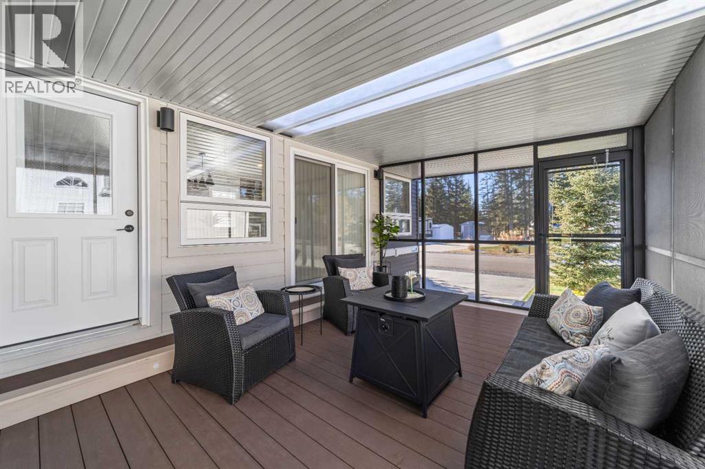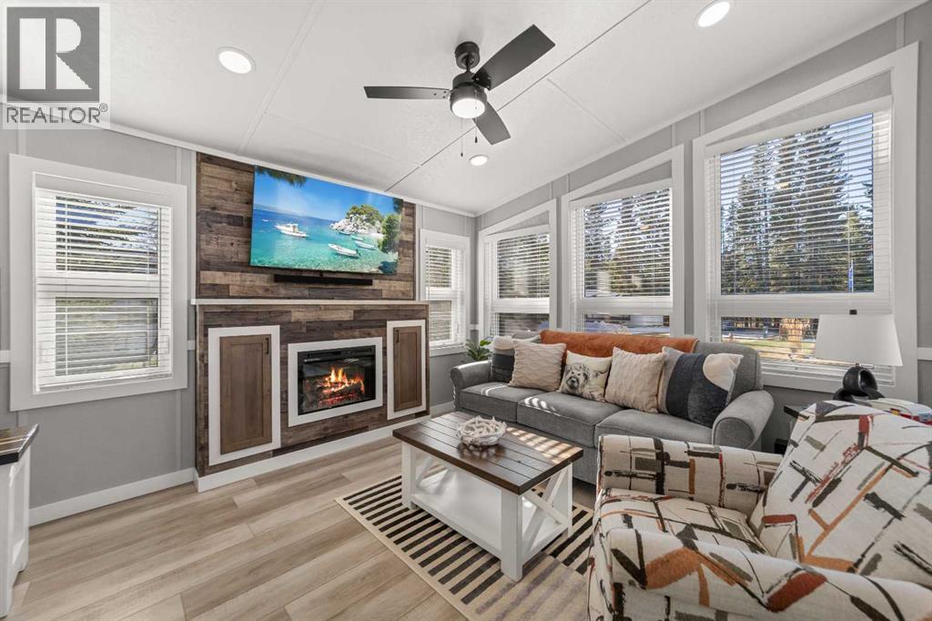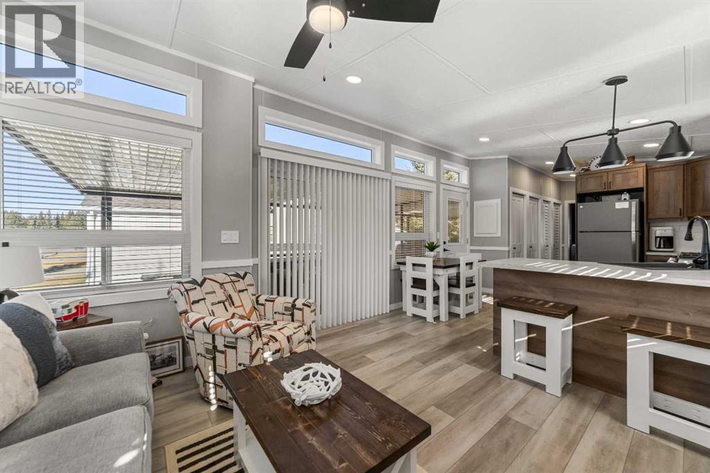Welcome to 21 Coyote Creek – a rare opportunity to own a 2024 luxury Park Model backing directly onto the 9th tee box in a four-season golf resort community. This fully furnished, turnkey 544 sq ft retreat sits on a private 0.08-acre lot & offers thoughtfully designed indoor-outdoor living with unmatched quality & efficiency. Step inside to discover soaring high ceilings, durable vinyl plank flooring, & an expansive open-concept living space flooded with natural light. The chef-inspired kitchen features black stainless steel appliances, ample cabinetry, a modern sink with black fixtures, & spacious dining options. Relax in the cozy living room by the gas fireplace with built-in TV & surround sound above, framed by rich wood tones & custom millwork. The spacious bedroom is a restful retreat with built-in cabinetry & warm accents. The spa-inspired bath includes a full-size shower, upgraded vanity, backlit mirror, & linen storage. Enjoy the seasons from your massive 11x15 enclosed composite deck or your 11x12 covered composite deck, ideal for entertaining or peaceful morning coffee. A concrete patio with wood-burning outdoor fireplace extends the living space with serene golf course views & towering evergreens. Built for year-round comfort & energy efficiency, this home boasts 2x6 construction, R30 heated floors, R40 insulated metal roof, a six-sided vapour-sealed barrier, & impressive performance of just over 1 ACH (air change/hour). The home is skirted with Trulock, fully insulated underneath, & situated on a full concrete pad. Additional features include: Washer & dryer hookups. Custom high-end blinds. Wrap-around Gemstone Lighting (app-controlled color changes). 10x12 wired shed/golf cart garage. Exterior combo of Hardiplank & vinyl siding. Central Air Conditioning. Starlink & Shaw satellite systems included. This is luxury park model living at its finest — low maintenance, energy efficient, & directly on the golf course. Located just minutes from Sundre, where y ou'll find shopping, schools, an aquaplex, gym, arenas, public library, & the arts centre. Whether you're a passionate golfer, nature lover, looking for a weekend escape, or a full-time four-season residence, 21 Coyote Creek delivers it all. “Home Is Where Your Story Begins!” (31275946)