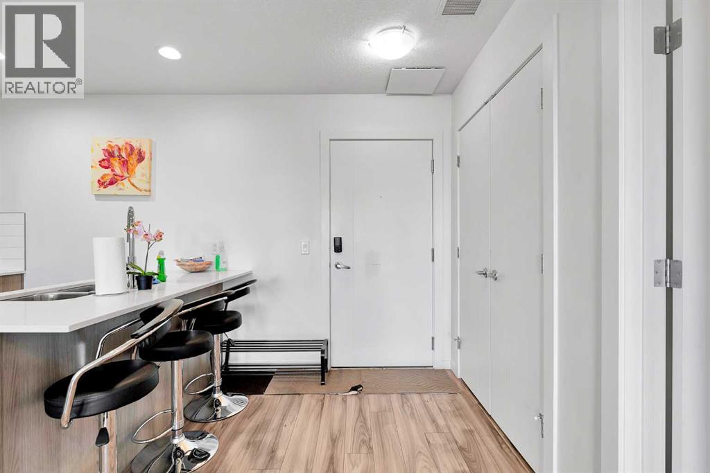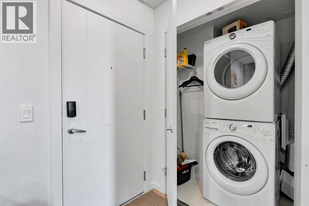 Discover exceptional comfort and modern style in this beautifully appointed two-bedroom plus den condominium, perfectly designed for contemporary living. Built with solid concrete and steel construction, this residence offers outstanding durability, sound insulation, and long-term value. The open-concept layout is bright and inviting, featuring wide-plank flooring, polished quartz countertops, and premium Fisher & Paykel appliances, including an induction cooktop, convection microwave, and built-in dishwasher. The thoughtful design extends throughout with in-suite laundry, a titled underground parking stall, and geothermal heating and cooling for year-round efficiency. The primary bedroom includes a spacious walk-in closet and a private ensuite, while the additional bedroom and den provide flexibility for guests or a home office. Ideally situated just steps from the C-Train, close to local shops, restaurants, Westhills, and a short commute to downtown, this home offers both convenience and lifestyle. Whether you’re a professional, downsizer, or investor, this residence combines quality construction, modern finishes, and an unbeatable location for effortless urban living (31280509)
