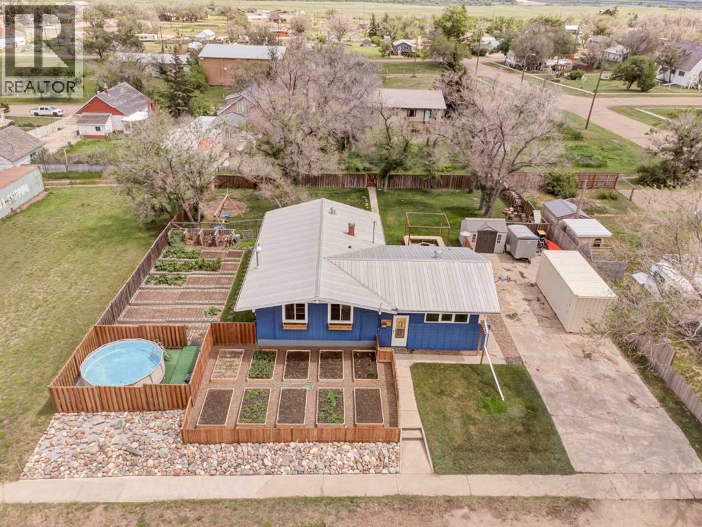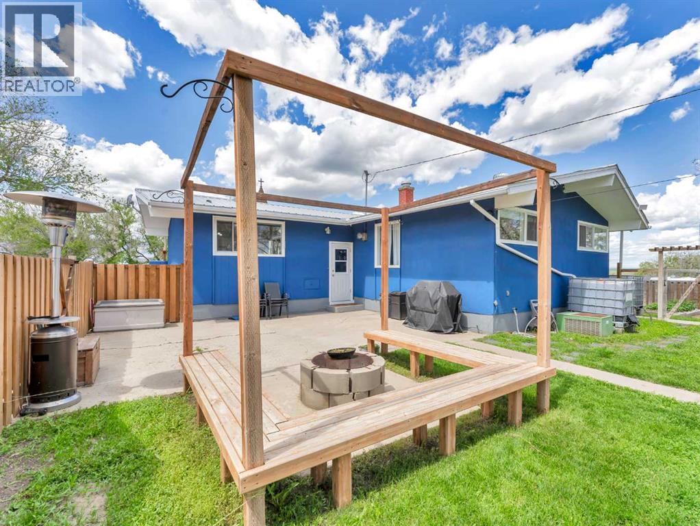 Welcome to 436 3 Street W in the adorable village of Empress, Alberta, situated just 40 minutes from Oyen. This well appointed bungalow, with a total of over 2000 sq ft living space, is situated on a massive lot which is already landscaped/treed and has a large gate accessed from the back alley. The yard is utilized for gardening and entertaining alike, with multi areas including a fire-pit with built in seating, cement pad with gas line for BBQ, play area with swings and protected pool area. You need room for parking? No sweat, the parking pad adjacent to the house can host a family of vehicles, bikes and even an RV. Let's talk about the inside of the house...5 bedrooms (3 on main floor), 3 baths, huge living room on the main floor with vaulted and beamed ceilings lending to that mid century modern feel. Adjacent to the living room is the large kitchen and dining area, both having large windows to keep things bright! Toward the back of the house you will find 2 bedrooms and a 4 pc bathroom and finally the master bedroom with its own 2 pc ensuite. Head downstairs to find a cozy family room with workout/study area that includes a wood stove to keep everyone cozy during the fall and winter. A very large storage room will accommodate all the extras, 2 well sized bedrooms with new vinyl windows, a 2 pc bath and large laundry area. This is a fabulous home for the growing family (with a Splash Park just steps away) or spacious home for the couple who wants a piece of land but desire the amenities of town life. Empress has a cute gift shop/groceteria, hairdresser, a mechanic, gas and towing services, a diner and homecare services as well as a driving range located 1 block from this home. For the days of greater need, Oyen is a 40 min drive and includes a hospital with emergency department, hardware supplies, and a high school. Acadia Valley is a mere 25 minutes away and is where you will send your kiddos K- grade 9. Don't miss this great opportunity to live in a welcom ing community...call your favourite agent to book a showing today! (31281186)