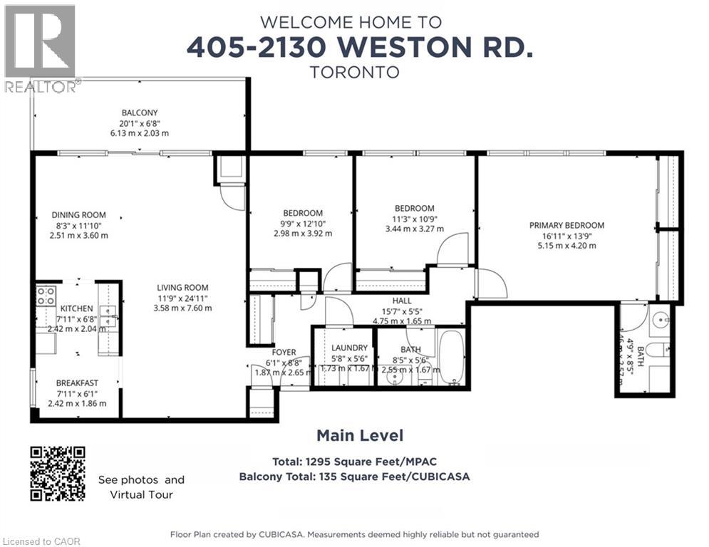 Welcome to Unit 405 at 2130 Weston Road - a rarely offered, exceptionally spacious 3-bedroom, 2-bathroom condo with 1,295 sq ft (MPAC) of bright, well-designed living space plus an oversized 135 sq ft balcony/CubiCasa)! This corner unit features large windows in every room, providing abundant natural light and serene south-western exposure overlooking mature trees and the Humber River. Enjoy a carpet-free lifestyle with hardwood floors in the open-concept living/dining room, laminate flooring in all three bedrooms, and tile in the front foyer, kitchen, bathrooms, and laundry room. The large, updated balcony with panoramic views has been recently reconditioned, and the unit features newer windows, a newer sliding door, and an in-suite laundry area equipped with a newer washer and dryer. Located in a well-managed, well-kept and sought-after building, this home is perfect for families, professionals, or downsizers seeking space, convenience, and tranquility. Step outside to enjoy nearby outdoor trails, green space, and easy walking distance to both public and separate schools. Commuters will love the short walk to TTC bus stops, UP Express, GO Station, and the new Eglinton Crosstown LRT. For drivers, you're just minutes to major highways: 401 (3 mins), 400 (4 mins), 427 (8 mins), and 404 (15 mins). Condo fees offer excellent value and include: Water, Cable TV, High-Speed Internet, Parking, Building Insurance, Common Elements, Exercise Room, Party Room, Workshop, Additional Coin-op Laundry Room, and Separate Saunas for Men & Women. This is a fantastic opportunity to own a spacious, well-appointed condo in a convenient and evolving Toronto neighbourhood. Don't miss out on making this wonderful space your new home! (69796523)