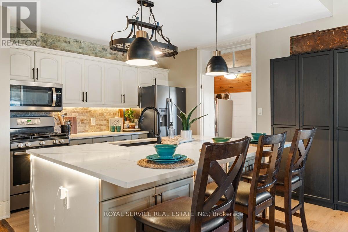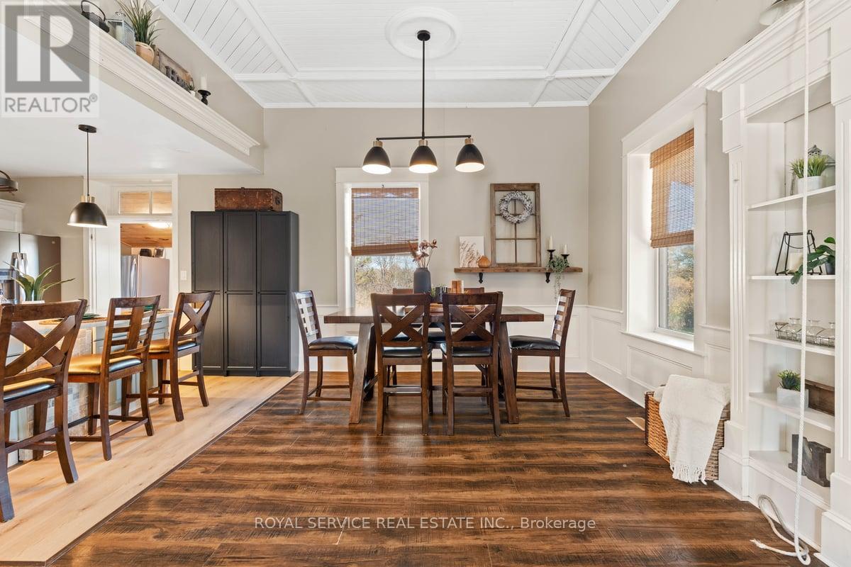 Historic Schoolhouse Turned Dream Home! Built in 1904, Harold School S.S. No. 14 has been beautifully transformed into a truly unique residence. From the original school bell still resting in the belfry to the character-filled hardwood floors, history is alive here - yet perfectly balanced with thoughtful modern updates. A recently built gorgeous covered front porch enhances the exterior and offers the ideal spot for morning coffee or evening drinks in a peaceful country setting where you can often watch the neighbours pass by in their horse-drawn buggies. Step inside to soaring 11' ceilings and oversized windows that flood the open living and dining areas with natural light. The updated kitchen boasts a massive quartz island designed for entertaining, leading seamlessly to a large bright pantry with a walkout to a 12' x 12' deck. The main floor also features a 4-piece bath with soaker tub, two spacious bedrooms, and convenient laundry. Upstairs, in the loft, a private suite awaits with skylights, stunning inlay hardwood floors, a 2-piece ensuite, and walk-in closet. The lower level expands your living space with a freshly painted rec room, office, and plenty of storage. Outside, a 24' x 30' insulated garage (built in 2020) with hydro, 10' ceilings, woodstove, and lean-to delivers incredible versatility for hobbies, storage, or workshop use. With modern upgrades, efficient utilities, and high-speed internet, this rare offering blends historic charm with everyday comfort in a welcoming country setting. (41493123)