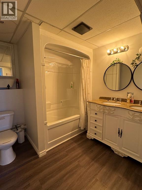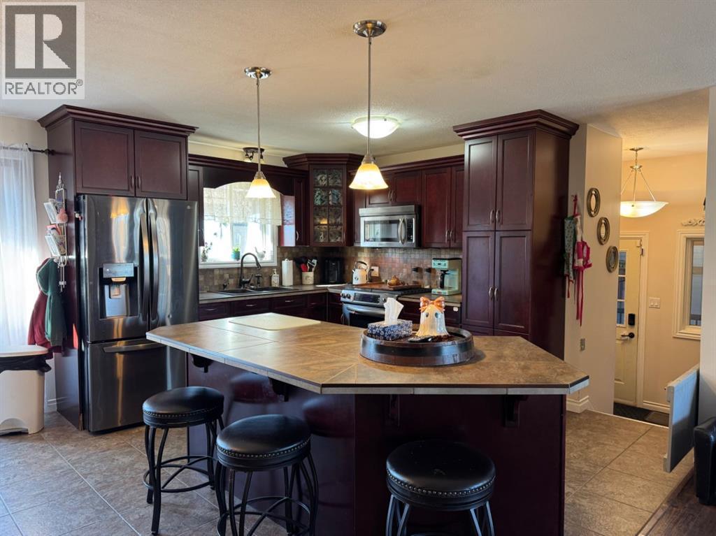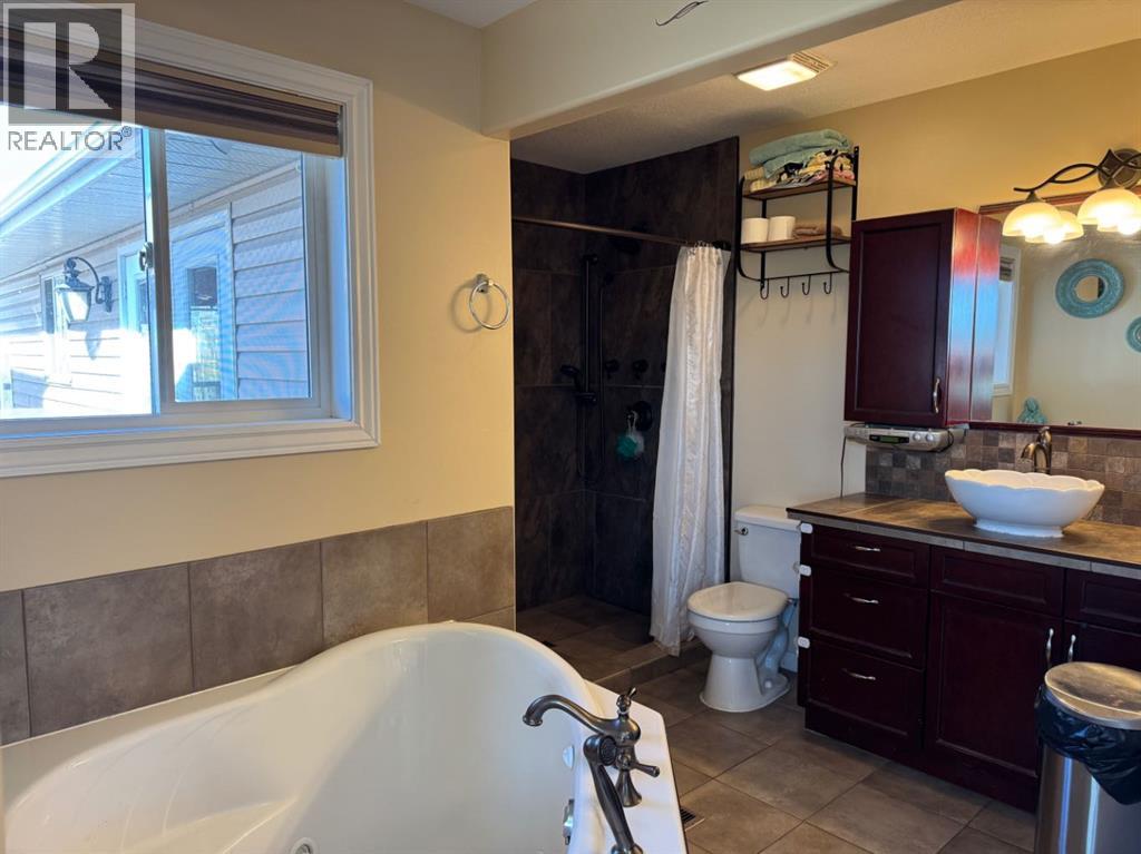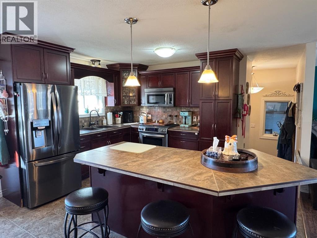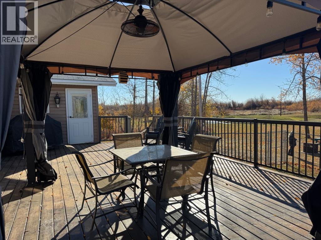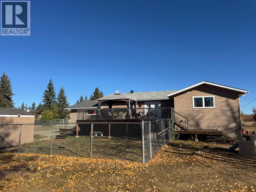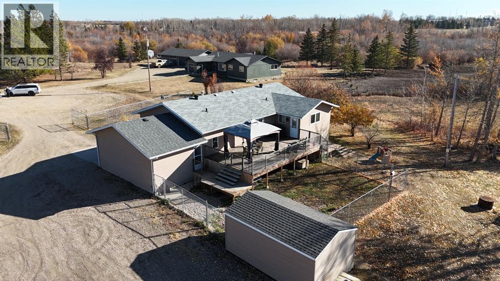 UNBELIEVABLE ACREAGE OPPORTUNITY WITHIN FAIRVIEW TOWN LIMITS!Discover the perfect blend of town convenience and country living on this beautifully maintained 5.49-acre property, ideally located near Cummings Lake Walking Trails and the Fairview Golf Course.This 1657 sq. ft. renovated bi-level home offers modern comfort, functionality, and space for the whole family. The main level features a large open-concept kitchen with a central island, high-quality cabinetry, stainless steel appliances, and main floor laundry. The primary bedroom includes a 4-piece ensuite with a jetted tub, separate shower, and private access to the large back deck—a perfect spot to relax and enjoy the peaceful views and visiting wildlife. The main floor also offers 2 more good sized bedrooms, another full bathroom, a large open concept living area that flows into the kitchen and dinning areas. There is central air conditioning for summer days as well conveniently has central vacuum. The fully finished basement hosts a mother-in-law suite complete with a full kitchen, living room, 3 bedrooms, 3-piece bath, laundry, and cold storage—ideal for extended family or guests.Outdoors, the property truly shines!•32’ x 54’ Truck/Work Shop with 16’ sidewalls, ample secure parking, and a convenient lean-to.•Fully fenced yard with improved grading and gravel for easy access.•Town water, and new septic tank pump (replaced 2 years ago).•Fish pond stocked with tiger trout, rainbow trout, brown trout, and koi—a unique touch for nature lovers.•Three light towers illuminate the property, plus two new yard lights behind the shop.•Two sheds, currently used for ducks and peacocks.This rare acreage offers it all—space, updates, utilities, and unbeatable location—all within town limits!Don’t miss this incredible opportunity—acreages like this in Fairview are hard to find! (31285705)