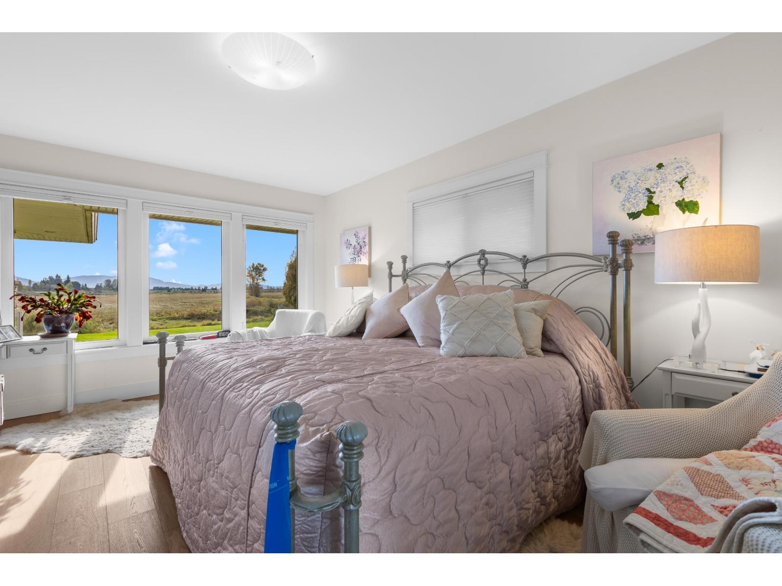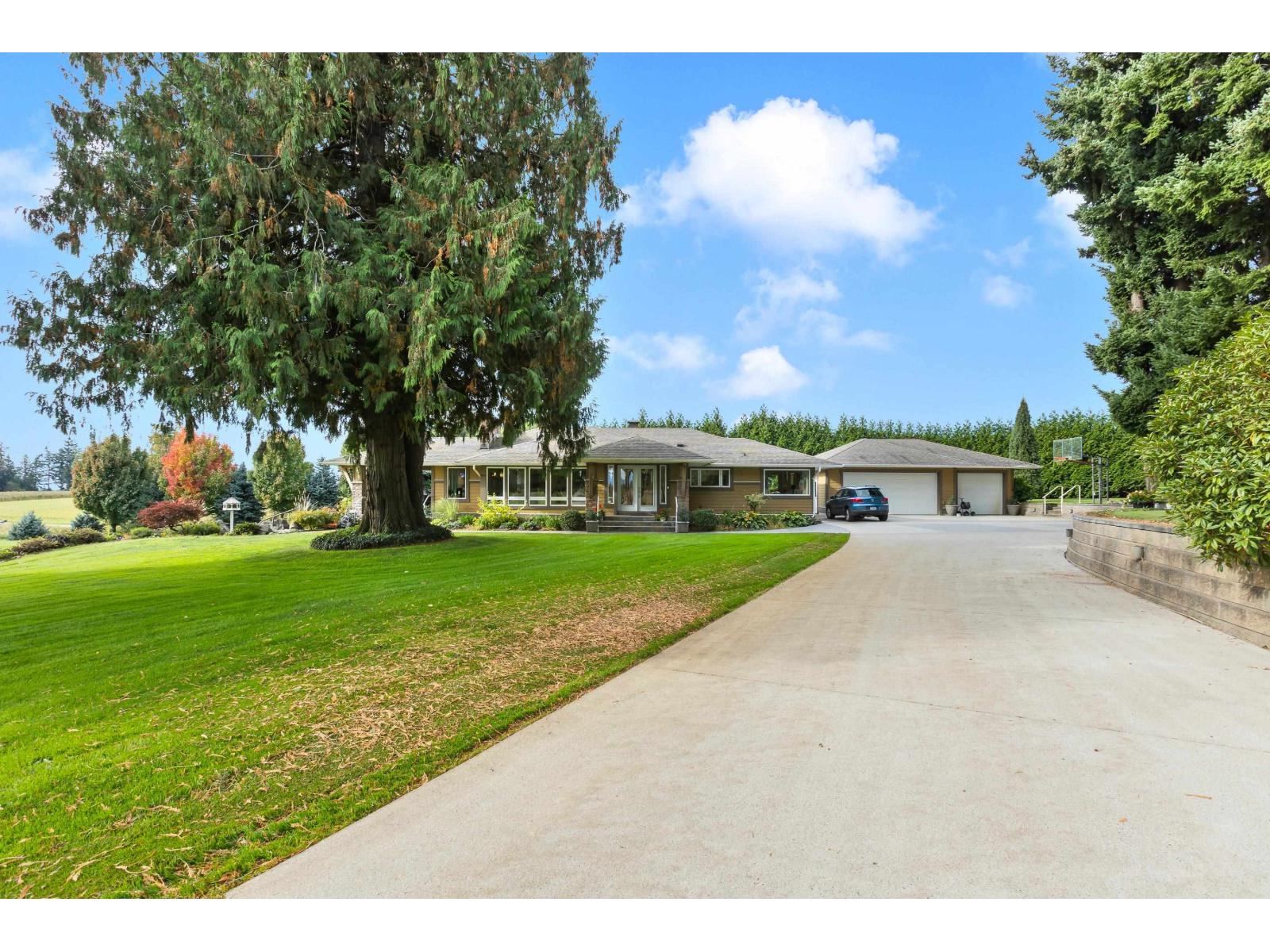 Exceptional 115.7 acre farm in a premier location! This scenic property features a 3 bed/3 bath 3,414 sq.ft. home over a full walk-out basement, thoughtfully updated while keeping its timeless charm. Expansive windows throughout fill the home with natural light and capture stunning panoramic views of Mount Baker, Judson Lake, and farmland. Take in the views from the cozy nook, elegant living room, inviting sitting room, or while relaxing on the covered patio or lakeside gazebo. A newly built 3 bedroom mobile home provides extra accommodation, and the 45'x29' heated shop (w/bathroom) plus additional storage and coverall add great utility. ~80 acres are in raspberries and vegetable crops with irrigation from Judson and Laxton Lakes. A previous study (~20 years old) suggested potential gravel resources on the property; buyers are advised to make their own independent inquiries. This is, above all, a highly productive farm offering a rare combination of fertile land, natural beauty, and comfortable living. (32083076)