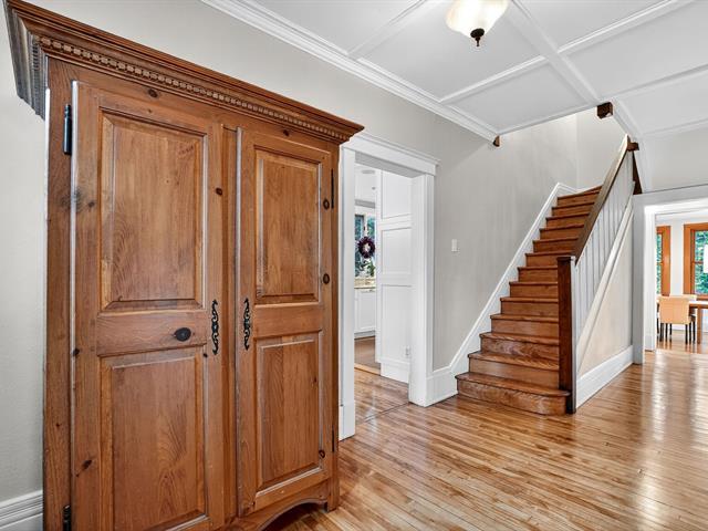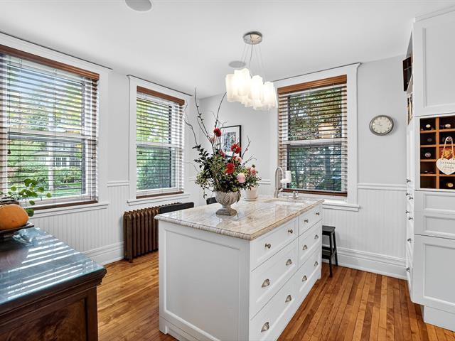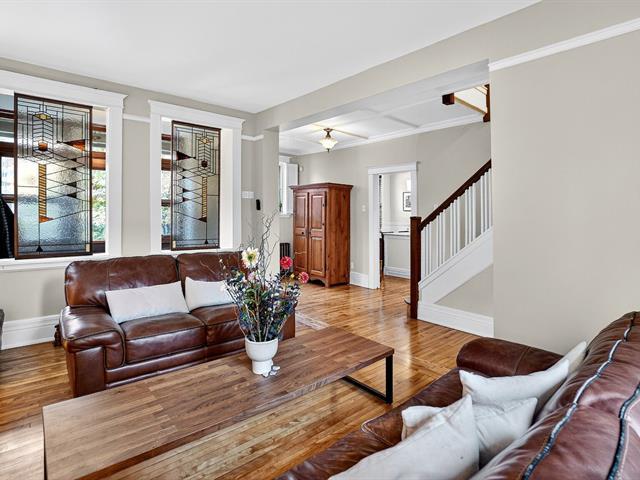 Prestigious house in the heart of Montreal West with a large extension on 3 floors. This house, in the classic style of the area, offers: a large entrance, followed by a living room with a gas fireplace, a kitchen with breafeast corner, and a large dining room with windows at the back. On the second floor, 3 good-sized bedrooms with their own bathroom, as well as the master suite with its bathroom. In the attic, a room can accommodate an office or another bedroom. The basement includes a finished portion that can be used as a family room, and an unfinished portion useful for storage. Terrace and shed in the backyard. A lot of work done. (49909989)