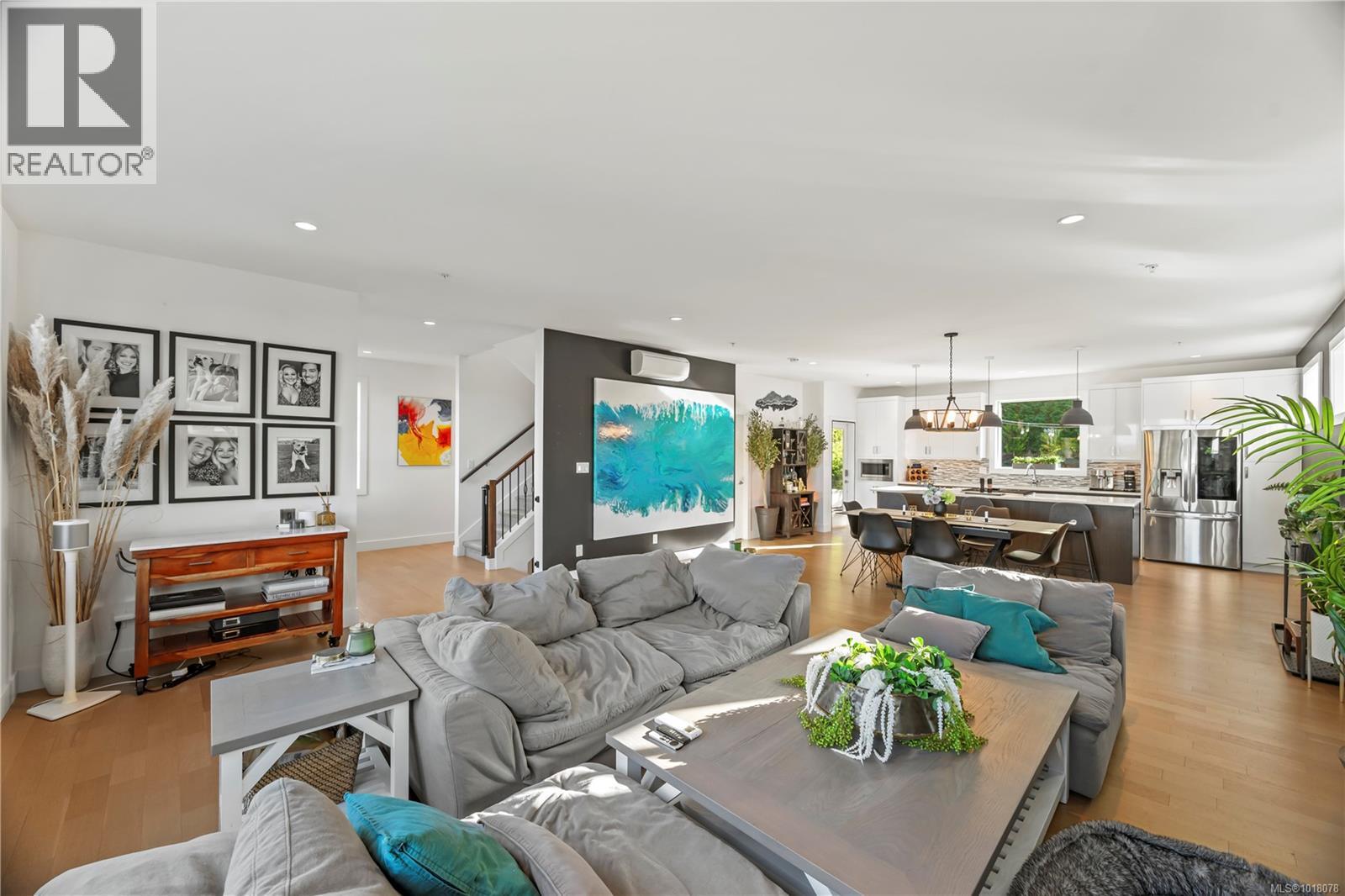 Welcome to 1167 River Rock Place — a modern West Coast home tucked away on one of Bear Mountain’s most desirable cul-de-sacs. Inside, an expansive open-concept floor plan is filled with natural light from oversized windows framing views of Mt. Finlayson. The kitchen features quartz counters and flows seamlessly into the bright living area with a cozy gas fireplace and dedicated home office, which can double as a bedroom nearby. Upstairs are three spacious bedrooms, including a primary with fireplace and spa-inspired ensuite. The converted crawl space creates a perfect home theatre, while the double garage adds convenience. Outside, enjoy an oversized patio, fully fenced flat yard, hot-tub-ready setup, and space for a hammock. Complete with a heat pump, interior sprinkler systems and built-in vacuum, this home blends comfort, function, and lifestyle in a peaceful, well-established street surrounded by mature landscaping — ideal for professionals, executives, and families. (30042583)