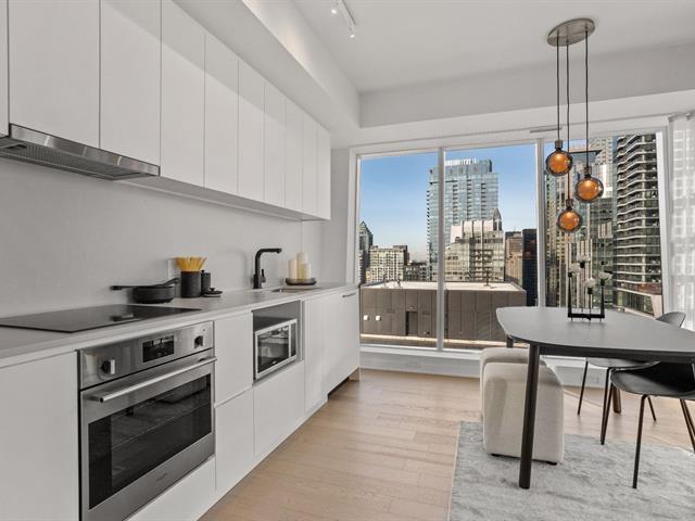 Superb unit in the prestigious Enticy project, combining the charm of a heritage building with the elegance of a contemporary high-rise. Inspired by boutique hotel style, the project offers refined common areas and exceptional quality finishes. Enjoy modern design, 9-foot ceilings, generous windows, and superior soundproofing. Within walking distance of universities, shops, restaurants, and metro stations. Eligible for significant GST and QST rebates under the conditions applicable to new homes. GST/QST must be added to the asking price (43375806)