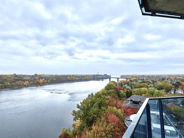 Penthouse located on the 16th floor of Rive Gouin II offering breathtaking views of the Rivière des Prairies and Mount Royal, with garage and two private balconies! Includes two bedrooms, two bathrooms including one en suite, open-concept living space, and storage space. Concrete building ensuring superior soundproofing and offering numerous amenities. Enjoy direct access to a walking trail and bike path along the river, a 10-minute walk from Île-de-la-Visitation Nature Park. A nature package in the city, an opportunity not to be missed! (43981828)
