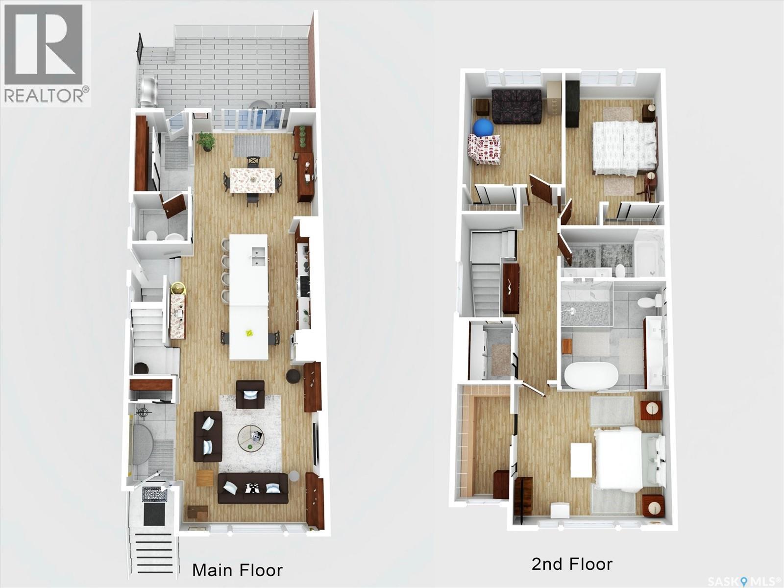 OPEN HOUSE SATURDAY NOV 22ND 2:30-4:00PM. Welcome to 1106 7th St E. This stunning 1,897 sq. ft. semi-detached two-storey offers modern style and exceptional craftsmanship in the established Haultain neighbourhood. The bright, open concept main floor features 9-ft ceilings, large windows, and a stylish electric fireplace with built-in shelving. The chef’s kitchen boasts high gloss cabinets, a massive quartz island, tile backsplash, and stainless steel appliances including a gas range. French doors off the dining area lead to a south-facing, maintenance-free deck and an insulated double detached garage. Upstairs, the primary suite impresses with a walk-in closet and spa-like 5-pc ensuite featuring a soaker tub, glass shower, and double sinks. Two more spacious bedrooms, a 5-pc main bath, and 2nd floor laundry complete this floor. Additional features include no carpet, custom closet organizers, open-tread staircase, pot lighting, and a side entry to the basement with 9-ft ceilings ready for development and a zeroscape yard featuring artificial turf in the front and a custom paving stone patio in the back. Call for your private showing today!! (29047758)