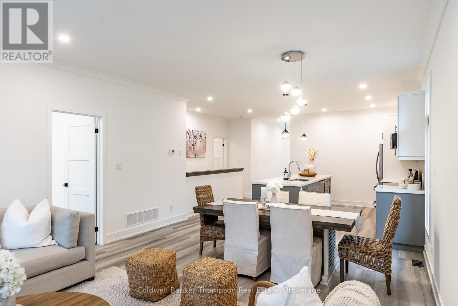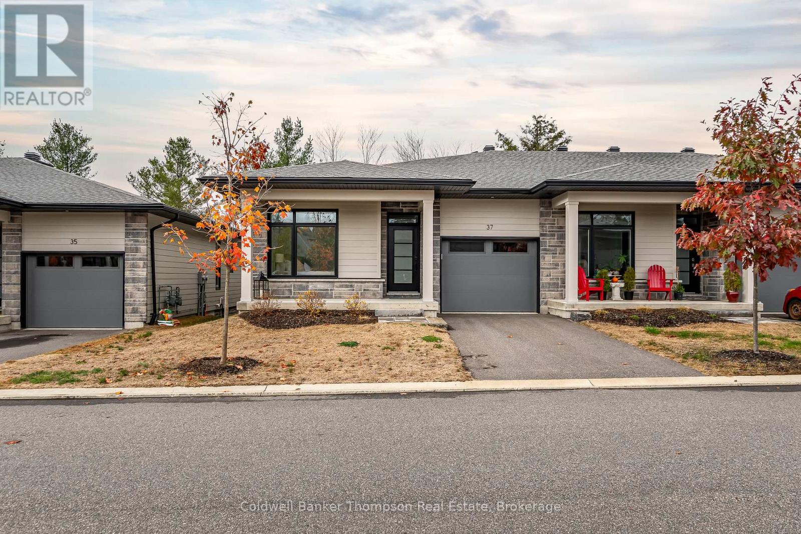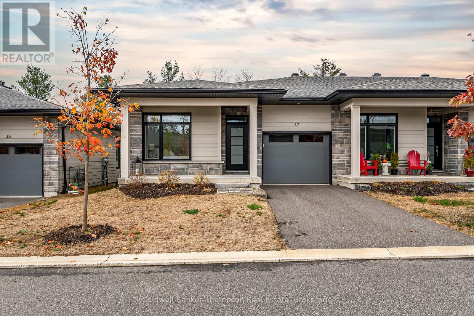 Welcome to this beautifully designed end-unit bungalow townhouse in the sought-after Highcrest community, built by Edgewood Homes in 2022. Thoughtfully planned & well-maintained, this home offers a perfect balance of style, function, & easy, low-maintenance living. From the inviting covered front porch to the private driveway & attached single-car garage, every detail contributes to its welcoming curb appeal. Inside, the open-concept layout connects the kitchen, dining, & living areas, creating a bright & comfortable space for everyday living or entertaining. The kitchen is both beautiful & practical, featuring stainless steel appliances, quartz countertops, an oversized island with breakfast bar seating, & a tasteful combination of on-trend grey lower & crisp white upper cabinetry. The living room's sliding doors open to a private balcony with a charming gazebo covering, an ideal spot to unwind with a morning coffee or enjoy the incredible sunsets from the back deck. The primary suite is located at the rear of the home, offering a peaceful retreat with large windows that fill the space with natural light. It includes a spacious walk-in closet & a stylish 3-piece ensuite with contemporary finishes. At the front of the home, a comfortable guest bedroom & a 3-piece guest bathroom provide an inviting setup for visitors or a convenient work-from-home option. The laundry room also functions as a mudroom, offering inside access from the garage & keeping day-to-day routines organized & efficient. The lower level is unfinished but full of potential, with a walk-out design, a rough-in for a 3-piece bathroom, & plenty of space to create additional living or recreational areas in the future. Additional highlights include fibre optic internet for reliable connectivity & a location close to shops, restaurants, & local amenities. This stylish & move-in-ready townhouse is perfectly suited for easy living in a welcoming & well-connected community. (41505444)