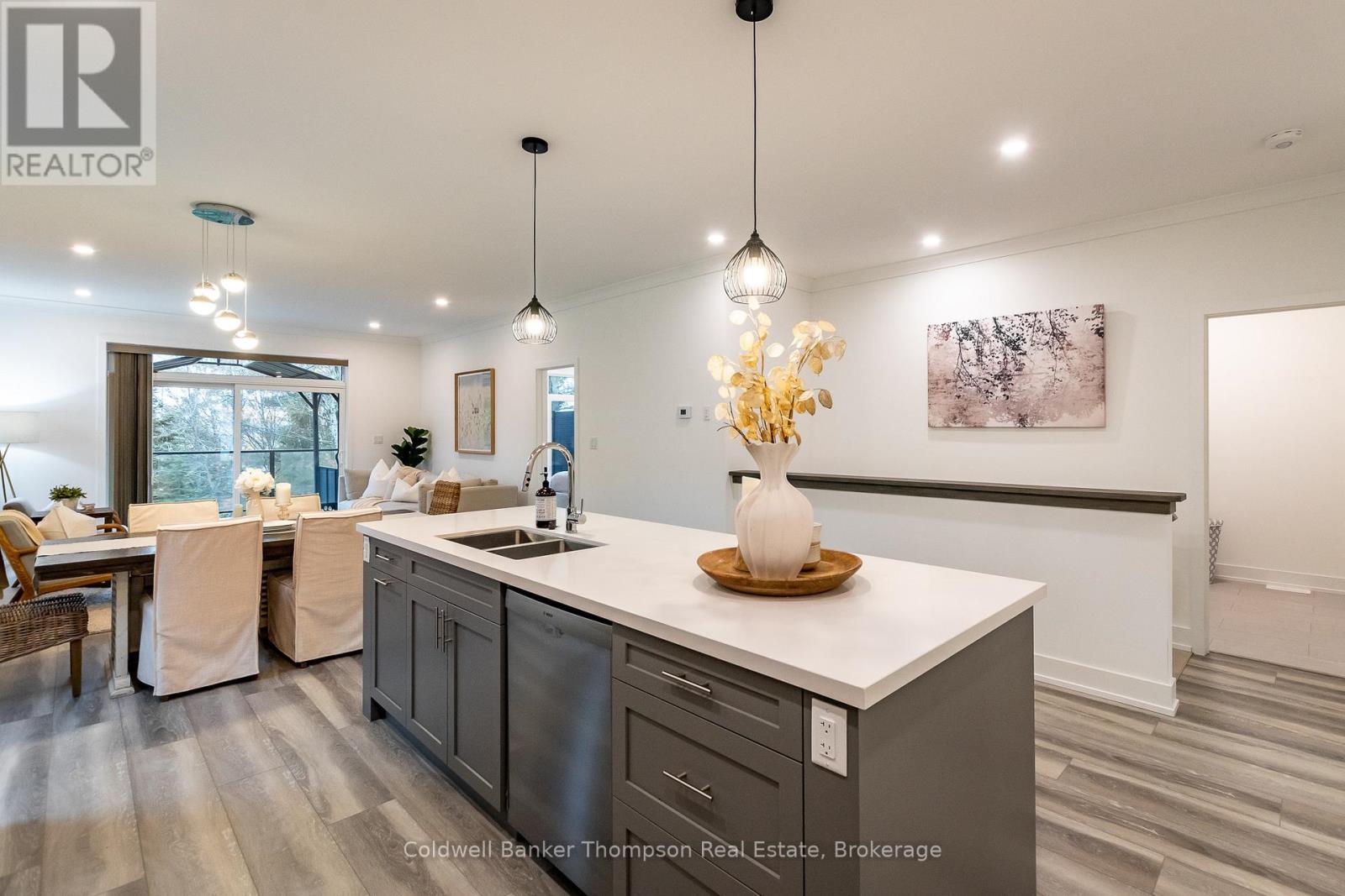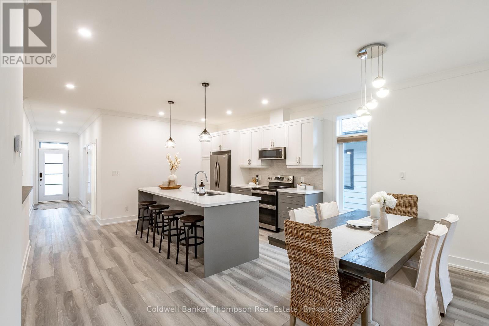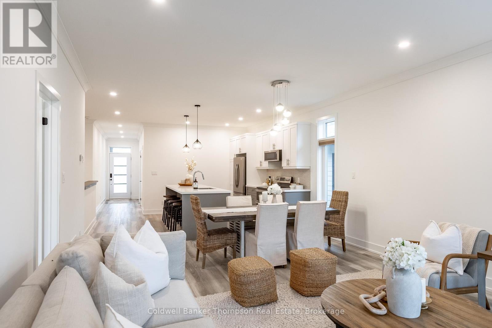 Welcome to this beautifully designed end-unit bungalow townhouse in the sought-after Highcrest community, built by Edgewood Homes in 2022. Thoughtfully planned & well-maintained, this home offers a perfect balance of style, function, & easy, low-maintenance living. From the inviting covered front porch to the private driveway & attached single-car garage, every detail contributes to its welcoming curb appeal. Inside, the open-concept layout connects the kitchen, dining, & living areas, creating a bright & comfortable space for everyday living or entertaining. The kitchen is both beautiful & practical, featuring stainless steel appliances, quartz countertops, an oversized island with breakfast bar seating, & a tasteful combination of on-trend grey lower & crisp white upper cabinetry. The living room's sliding doors open to a private balcony with a charming gazebo covering, an ideal spot to unwind with a morning coffee or enjoy the incredible sunsets from the back deck. The primary suite is located at the rear of the home, offering a peaceful retreat with large windows that fill the space with natural light. It includes a spacious walk-in closet & a stylish 3-piece ensuite with contemporary finishes. At the front of the home, a comfortable guest bedroom & a 3-piece guest bathroom provide an inviting setup for visitors or a convenient work-from-home option. The laundry room also functions as a mudroom, offering inside access from the garage & keeping day-to-day routines organized & efficient. The lower level is unfinished but full of potential, with a walk-out design, a rough-in for a 3-piece bathroom, & plenty of space to create additional living or recreational areas in the future. Additional highlights include fibre optic internet for reliable connectivity & a location close to shops, restaurants, & local amenities. This stylish & move-in-ready townhouse is perfectly suited for easy living in a welcoming & well-connected community. (41505444)