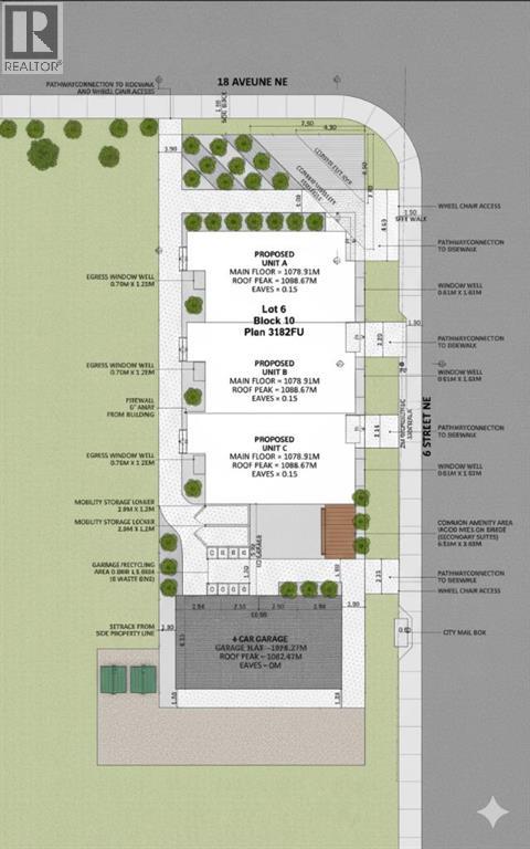 Prime Development Opportunity - Approved Triplex in Winston Heights/Mountview. Turnkey Development Ready for ConstructionRare opportunity to acquire a fully-approved development permit for a 3-unit rowhouse complex with legal secondary suites on a prime corner lot. This shovel-ready project offers exceptional value in one of Calgary's most desirable inner-city communities.Approved Unit SpecificationsThree Luxury Rowhouses - Each unit approximately 2,536-2,540 sq ft 4 Bedrooms | 3.5 Bathrooms | 4 LevelsLower Level: Legal secondary suite with bedroom, full bath, living area & mechanical roomMain Floor: Open-concept living/dining, kitchen with island, powder room, suite foyerUpper Floor: Two bedrooms, full bathroom, private terrace (135 sq ft)Penthouse: Master suite with walk-in closet & ensuite, family room, mechanical roomKey Development FeaturesFour-Car Heated Garage with individual overhead doorsTotal 6 Units: 3 main homes + 3 legal secondary suitesSolar-Ready with conduit infrastructureEV Charging Capable (40A, 240V circuits)Contemporary Design: Architectural panels, stucco, metal accentsEnergy Efficient: Spray foam insulation, 2-hour firewall separationPrime contender for MLI Select - favorable financing potentialPrime Corner LocationDual frontage on 6 Street NE & 18 Avenue NE (collector road)Minutes to downtown CalgaryWalking distance to amenities, transit, parks & schoolsEstablished, walkable community with characterDevelopment DetailsTotal Building Area: 7,614 sq ftDensity: 59.51 units/hectare (optimal)Parking: 4 stalls (exceeds requirements)Zoning: R-CG (Residential Grade-Oriented Infill)Perfect ForDevelopers & builders seeking turnkey inner-city projects | Investors wanting premium rental income | Those capitalizing on Calgary's strong housing marketWhy This ProjectApproved & Ready: Development Permit approved - skip months of planningRevenue Potential: 6 units generate strong cash flowModern Design: Meets demand for mul ti-level urban housingFuture-Ready: Solar & EV infrastructure includedFinancing Advantage: Strong MLI Select candidate for optimal termsComplete architectural drawings, engineering reports, and city approvals included. Existing structures to be removed per approved plans.Complete development permit packages and project details! (31294379)