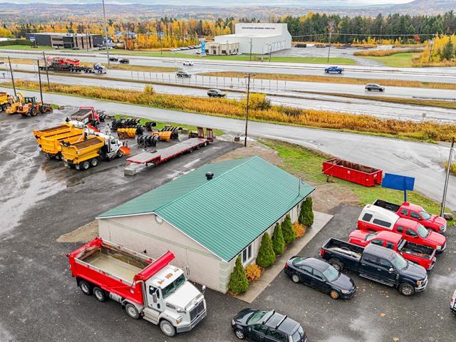 RARE COMMERCIAL OPPORTUNITY! Discover an impressive 95,335 sq. ft. site offering unmatched visibility directly along Highway 10, at the border of Sherbrooke and Magog, just steps from the drive-in theater. The property includes 2 warehouses - one (90 x 60 ft) with three 16-ft doors and one 14-ft door height , approx. 20-ft ceiling height and a 2nd warehouse (60 x 30 ft)--as well as a sales building with offices. 2 access points, including one with a right-of-way servitude. Important investments were made to reinforce the parking base to accommodate heavy truck circulation. A strategic location with outstanding potential.Possession: July 2026. GST/QST must be added to the asking price (44265815)