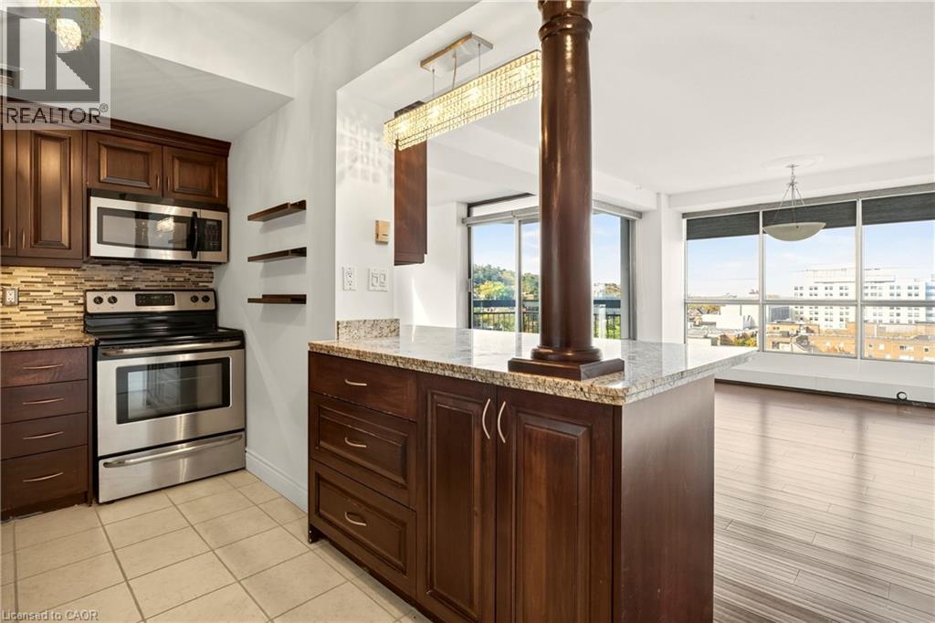 Exceptional views from every window! Discover this stunning 2-bedroom, 1.5-bath, 18th floor condominium apartment with balcony, offering spectacular southwest views overlooking the escarpment and city skyline — a true million-dollar vista. The over 1100 square feet of living space includes an updated kitchen featuring granite countertops, stainless-steel appliances, and a breakfast bar, perfect for casual meals at home. Bamboo flooring throughout adds warmth and style to the spacious interior. Conveniently located within walking distance to St. Joseph's Hospital and close to public transit, mountain access roads and the Hunter Street GO Centre, this well-maintained building offers both comfort and practicality. The building boasts numerous remarkable amenities including a gym, swimming pool, squash court, games room, and party room. Recent renovations have transformed the common areas with a new lobby, refreshed hallways, and modernized unit doors, giving the property a contemporary look that feels like a brand-new building. Underground parking is available for an additional fee. Don't miss this exceptional opportunity to own a move-in-ready unit with breathtaking views and premium amenities. Schedule your showing today! (69810640)
