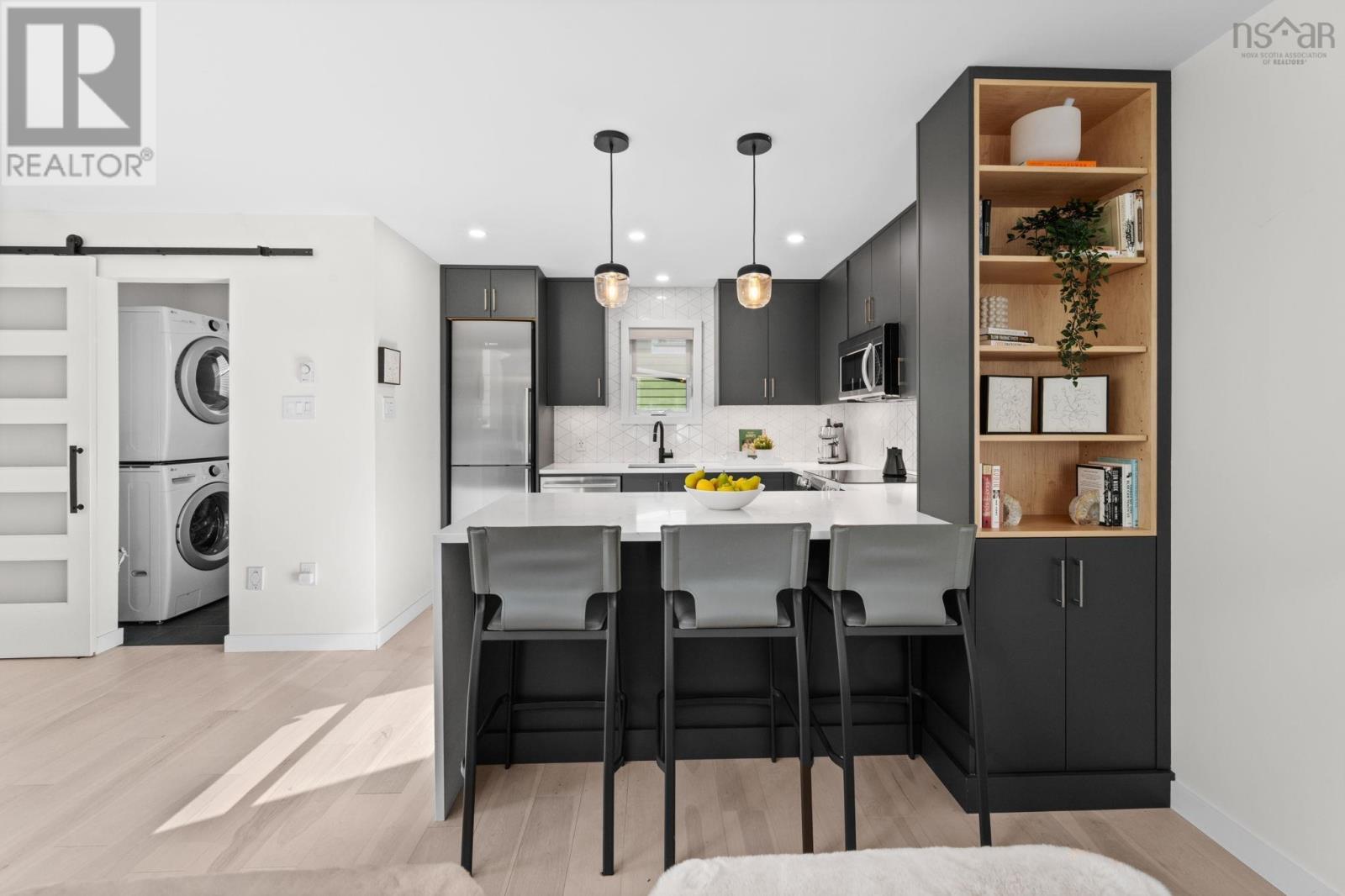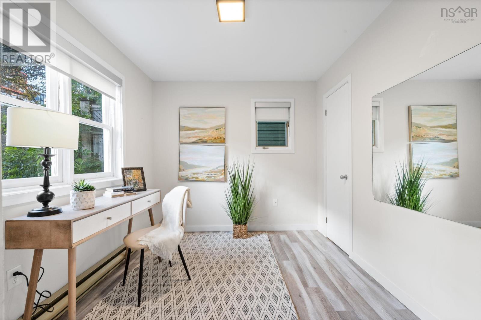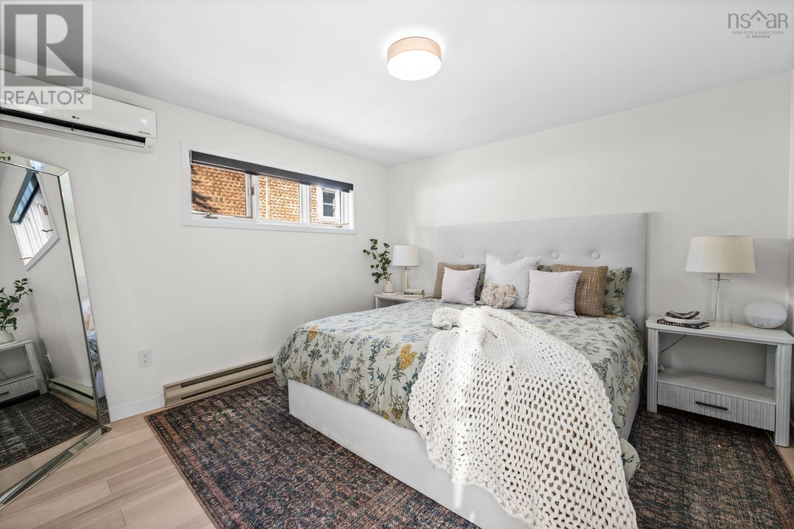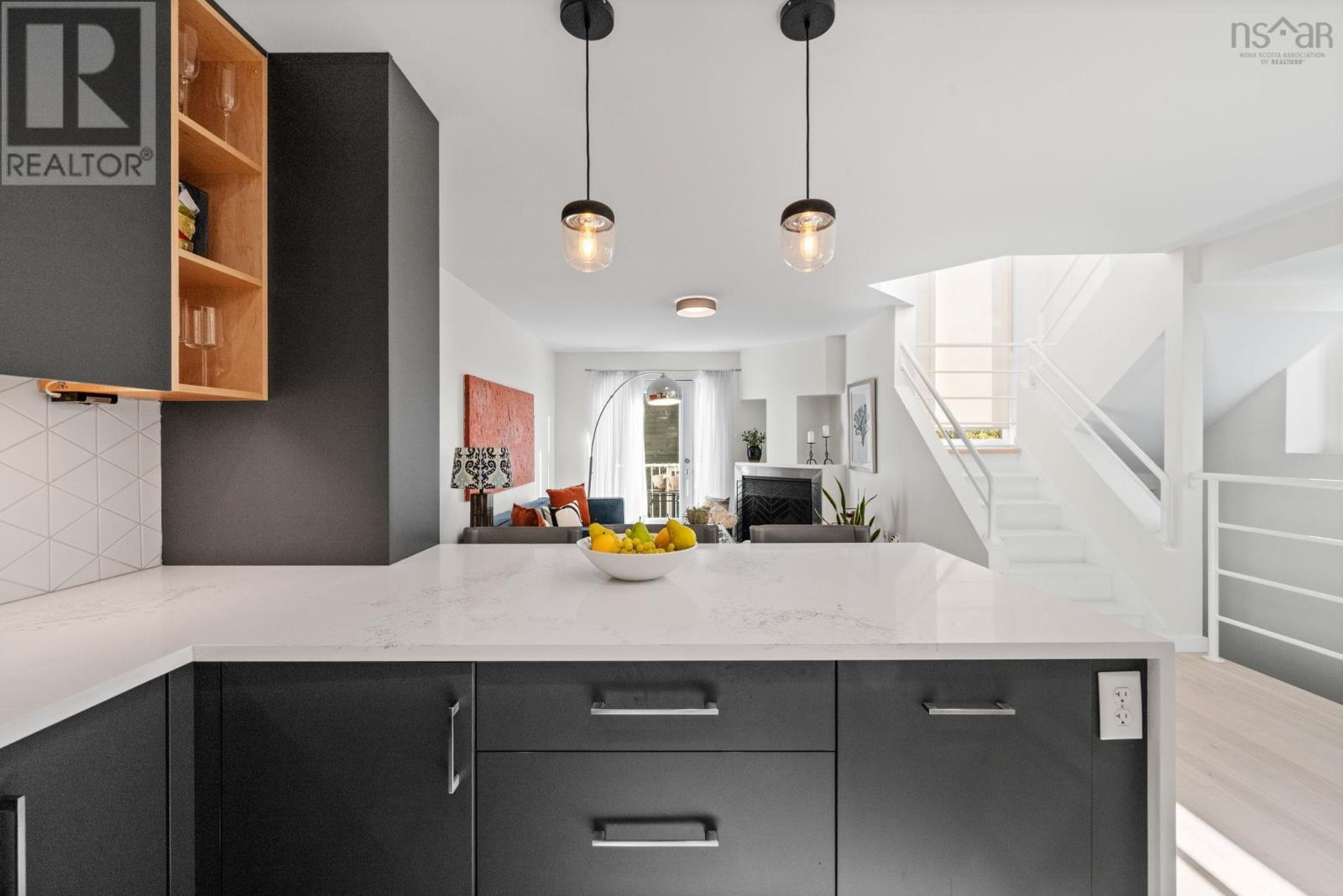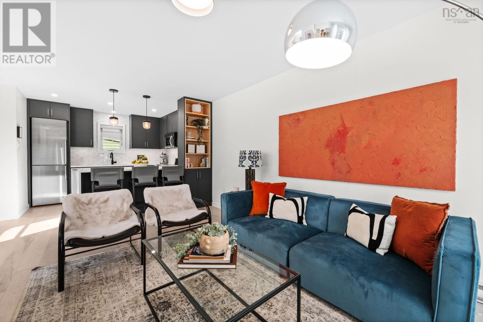 This truly is an exceptional and rare find nestled in the heart of the historic Halifax Peninsula. This architecturally designed townhouse condo offers 2-3 bedrooms, one and a half bathrooms, and the highly coveted convenience of a private garage plus two outdoor parking spaces. The entire space is beautifully sun-drenched, courtesy of dramatic floor-to-ceiling windows and an open stairwell designed to draw light into every corner. The home features a newly renovated eat-in kitchen boasting sleek quartz countertops and top-of-the-line Bosch appliances. For cozy evenings, the living room includes a small balcony and a traditional wood-burning fireplace. The layout is designed for flexibility, with one bedroom/den/office on the main floor and two additional bedrooms situated privately on the third floor. The crowning feature is the top-floor access to a sunny, southwest-facing private rooftop patio, offering stunning views of the downtown skyline. The location is simply unbeatable, positioned just 1.5 blocks from Spring Garden Road and within easy walking distance of the hospital, universities, and all of downtown Halifax's best restaurants and shopping. This is urban luxury and convenience redefined. (231555987)