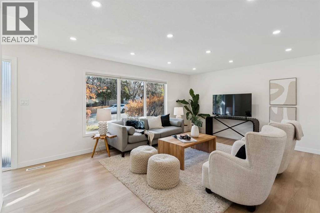 This beautiful 4-level split in the sought after community of Oakridge features over 2100 sq ft of developed space and has just under gone the most complete extensive and attractive renovation. Walk into the front door to a wide-open floor plan, fresh and modern, with a large living room, dining room and an all-new kitchen. New LVP floors, hardwood stairs, paint, light fixtures, flat ceilings, large stone Island with loads of counter and cabinet space, all new cabinets, appliances ... it’s a space to entertain and live in. Up stairs the Master bedroom easily accommodates a King bed and has its own 2 pce ensuite that has a separate toilet closet. The other 2 bedrooms are a good size share a beautiful 4 pce ensuite which comes complete with a smart/LED and anti fog mirror. The 3 rd level is light and bright with lots of windows and features an electric fireplace, large family room, storage closet, a 4 th bedroom/ office with a large walk-in closet. This room is large enough to be both a bedroom and office together. The 4 th level features a media room with sound proofing on the walls, a games area, 3 pce bathroom also with a smart anti fog mirror, laundry room and the utility room. All newer windows, furnace and hot water tank. Out back the single garage/storage shed will accommodate a small car and all the toys one desires and the large yard features raised flowerbeds. A portion of the driveway and the front steps have recently been re- poured with fresh concrete. Now let’s talk about the location… walk or bike to Glenmore park, pathways, parks, shopping, restaurants, banks, schools or the Southland Rec. centre. If you are looking to just move in this gorgeous property is the one for you (31296847)