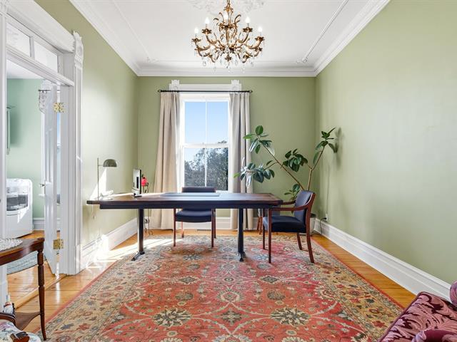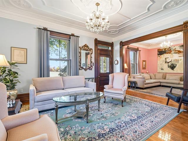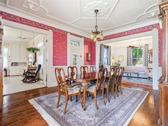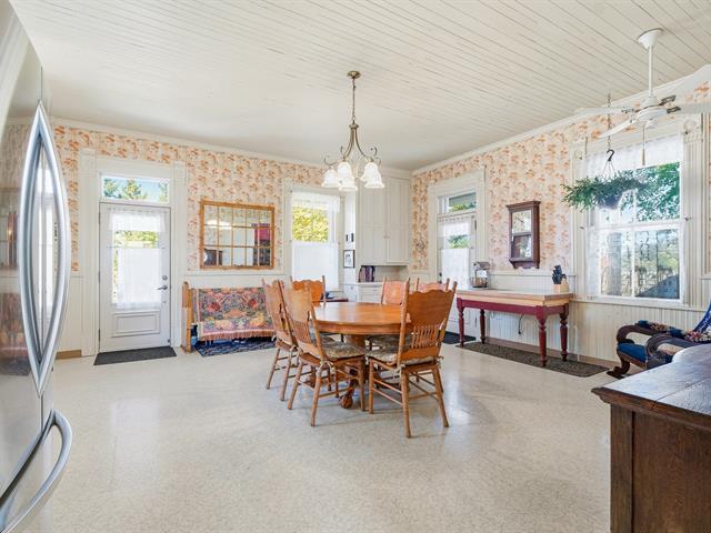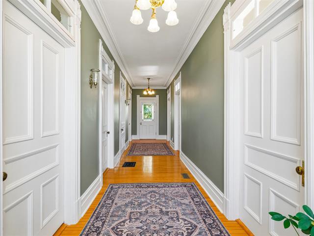 This century-old property with its preserved décor is a masterpiece of emotion and elegance that will leave no one indifferent. Spacious rooms, warm woodwork, intricate moldings, unique wallpaper, hardwood floors, and high ceilings adorned with decorative plasterwork create a true haven of peace. It offers two welcoming living rooms, an elegant dining room, a refined office, a vast culinary space with a scullery, 5 bedrooms, 2 bathrooms, and a powder room. Set on a magnificent private lot of over 50,000 sq. ft., it features a heated in-ground pool and 3 garages with a versatile upper floor. A rare gem--come continue its beautiful story. (44205794)