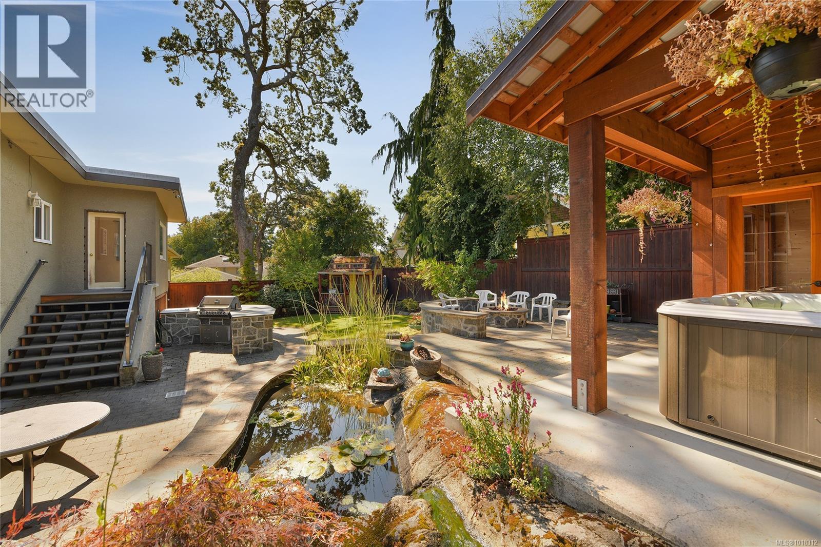 Lovely family home on the Fairfield/Oak Bay border, tucked away on a quiet side street yet close to the Oak Bay Village and proximate to downtown, scenic marine Beach Drive/Dallas Road plus parks, schools and more. This solid 1960s home offers 3 bedrooms on the main, sunken living room with wood stove for entertaining, oak floors, modernized kitchen, den/laundry area down plus extra room for bedroom/den. Separate 2 bedroom self contained suite with separate entrance, patio and parking stall. The highlight of this home is the incredible west facing backyard garden oasis thoughtfully designed with patios, outdoor kitchen, fire pit with circular seating area, pond, separate studio and covered hot tub. (30050194)