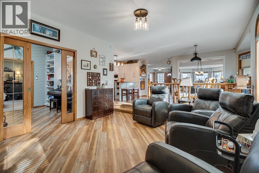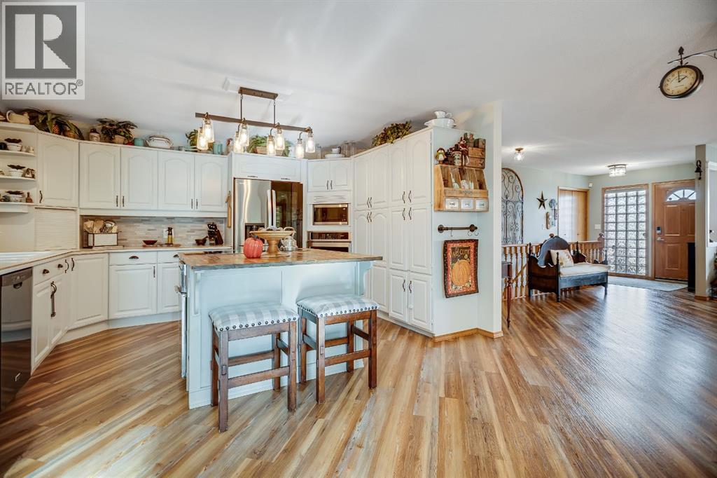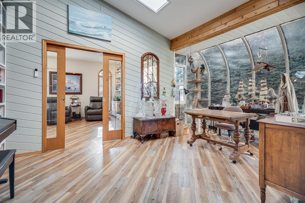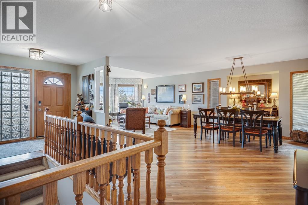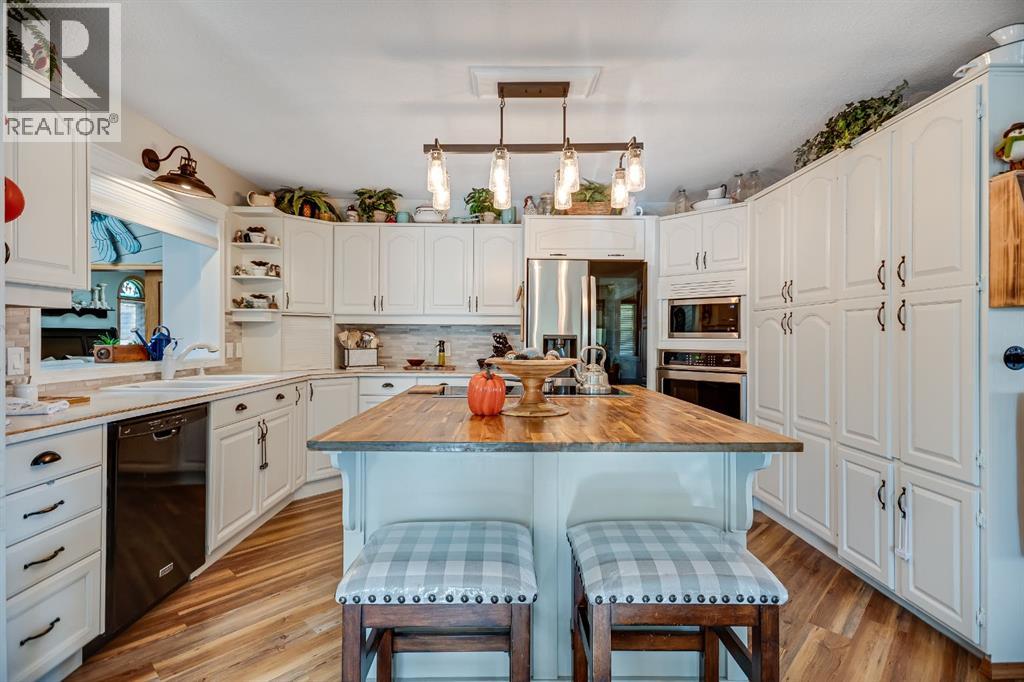 Experience the finest in living with this exceptional, fully finished 2367 sq ft bungalow across the street from Emerson Lake. Immaculately maintained and recently upgraded, this home boasts high-quality finishes, spacious, bright rooms, and a unique, welcoming layout you'll love.The main floor is an entertainer's delight, offering an open-concept living area, a formal dining room, and a cozy family room with a gas fireplace. It features a fantastic sunroom with a curved wall of windows and electric-shade-equipped skylights, plus a functional kitchen with a nook, updated appliances, and plenty of storage.The luxurious master suite is a true retreat with two exits, a walk-in closet, and a newly renovated 6-piece ensuite featuring a spacious glass shower and soaker tub. Two additional bedrooms (one an ideal office) and a dedicated laundry room complete the main level, all updated with new vinyl plank flooring, updated fixtures, and modern hardware.The fully finished basement expands your living space with a huge games room (pool table included!), a bedroom, an office, and a massive workshop/storage area with the comfort of in-floor heating.Outside, you'll find a private, west-facing backyard oasis. Surrounded by a wall of mature spruce trees, the patio offers incredible privacy. It features three water features, landscaping, fruit trees, and a timed irrigation system. Practical extras include a super-sized double attached garage, air conditioning (new furnace/AC), two new hot water tanks, and a concrete tile roof. (31299231)