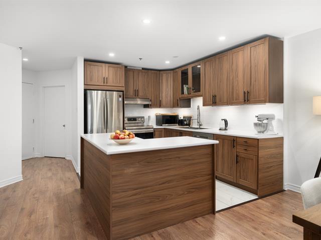 Superb, fully renovated 2-bedroom condo + 1 large office (which could be a bedroom) in the heart of Lachine! Electrical, paint, and storage spaces have been completely redone. Bright open concept with large kitchen featuring an island, large countertop, and wood cabinets offering plenty of storage. Separate laundry room and quality finishes. Cozy living space, ideal for families and/or teleworking. Ideal location near the Lachine Canal, bike paths, transportation, schools, and shops. A rare opportunity not to be missed! (55590041)