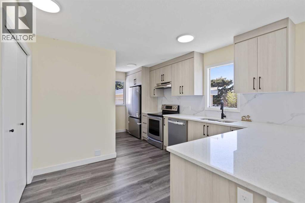 Discover exceptional value and space with this charming home nestled on a massive 120' x 130' lot — over 1/3 acre of beautifully landscaped grounds featuring manicured hedges and vibrant flower beds.From the moment you arrive, the grand entrance with elegant marble flooring sets the tone for the style and warmth found throughout the home. The spacious living room, filled with natural light from large windows and anchored by a cozy fireplace, offers the perfect setting for both relaxing evenings and lively gatherings.The main floor hosts three well-appointed bedrooms, a four-piece bathroom, a functional kitchen, and plenty of built-in cupboards providing generous storage.The lower level expands your living space with a welcoming family room, an additional bedroom, a cold room, a three-piece bathroom, and a recreation room ideal for hobbies or entertaining.Added convenience includes upstairs laundry and a large back entrance for easy everyday living.Outdoor enthusiasts will love the double garage with front and back doors, offering seamless drive-through access. A paved driveway enhances curb appeal and practicality alike.Properties with lots this large are truly rare—don’t miss your opportunity to make this exceptional home your own! (31300322)