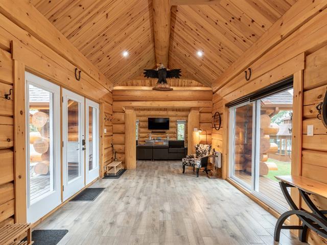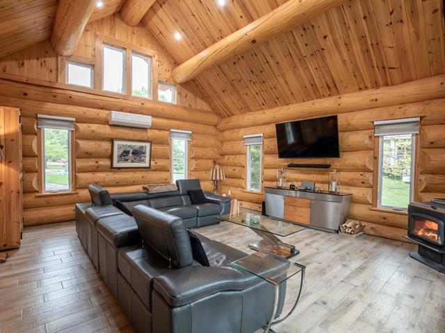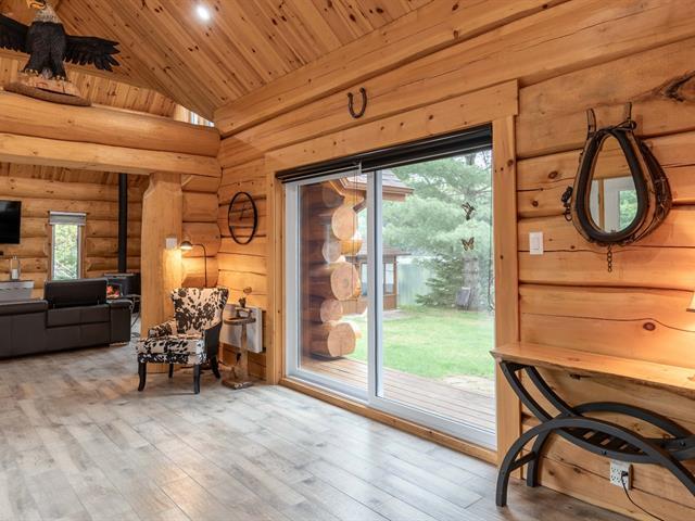 This elegant wooden residence located in Val-des-Bois, less than an hour from Ottawa, offers a charming setting alongside the beautiful Lièvre River. Upon your arrival, you will be captivated by the large paved driveway leading to a double garage with two independent doors. Inside, you are welcomed by a spacious area with cathedral ceilings, creating a sense of grandeur and providing an incredible view of the river highlighted by a large patio door. This property embodies the comfort, luxury, and tranquility of riverfront living while remaining accessible to the city! (46417936)