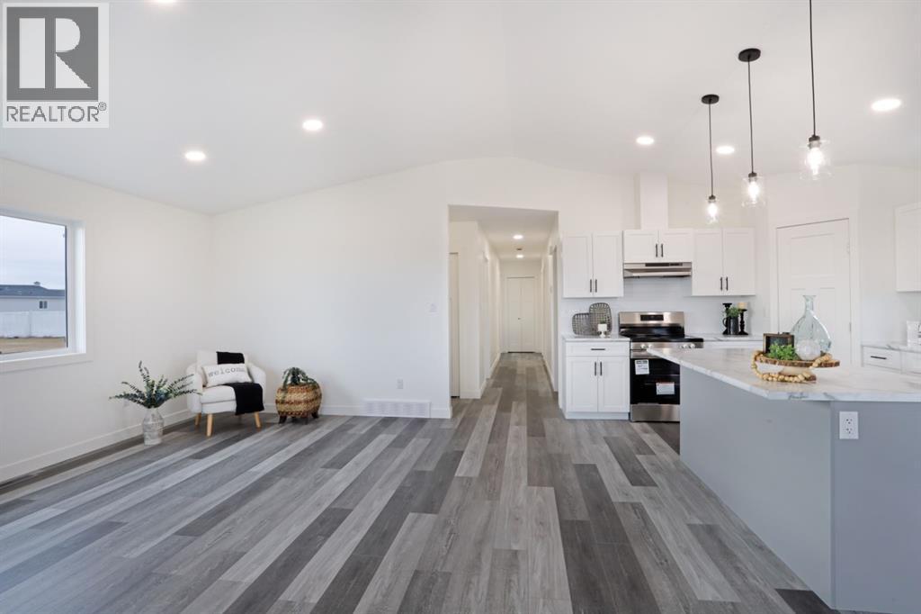 Here’s your chance at owning an affordable NEW HOME! This stunning property offers stylish design, high ceilings, and bright open spaces that instantly feel like home. Step inside to find a beautiful open-concept layout with vaulted ceilings, 3 spacious bedrooms, and 2 bathrooms, including a relaxing primary bedroom with 4 piece ensuite. The kitchen is both functional and inviting, featuring a large island, walk-in pantry, and plenty of natural light from the expansive vinyl windows throughout. Appliances include a fridge, stove, dishwasher, washer, and dryer, so all that’s left to do is move in and enjoy. Also included is a side entrance with closet and utility/laundry room with storage space.You’ll love the covered front porch, perfect for morning coffee or evening sunsets, as well as the parking pad and side and backyard.Ideal for first-time buyers, small families, investors or retirees, this home provides comfort, convenience, and quality all in one package. This is NOT a mobile or modular home. It is a site-built home constructed on engineered screw pilings- Heavy-duty steel supports drilled deep into the ground for a stable, long-lasting foundation. Screw pilings offer excellent performance in Alberta’s soil and weather conditions, ensuring your home is built to last. Additional homes are underway and will be ready in the coming months, with the opportunity to choose your own finishes if purchased before completion. Owning a brand new home is possible and here’s your opportunity! Let’s get you moving and make this one yours. (31300158)