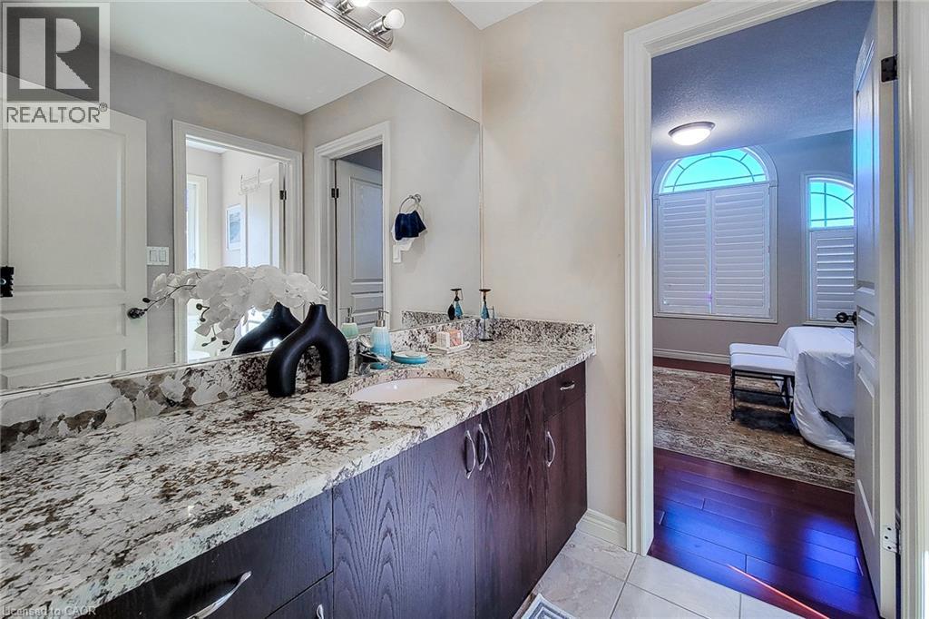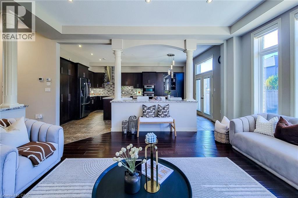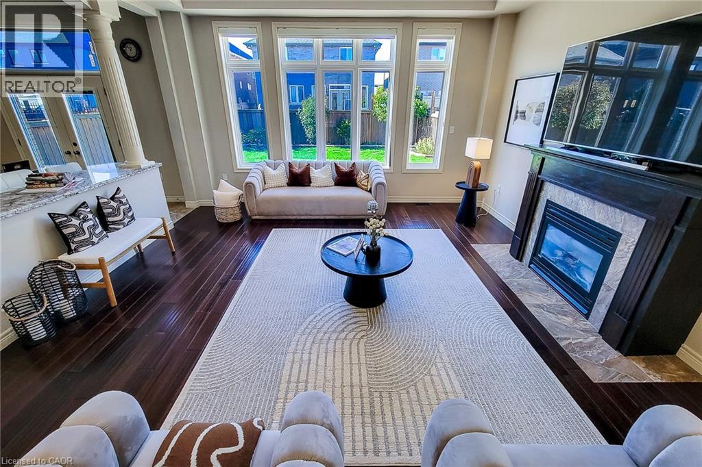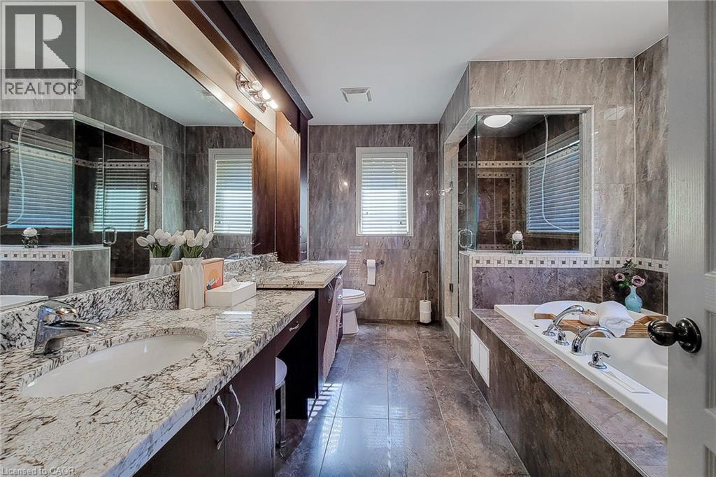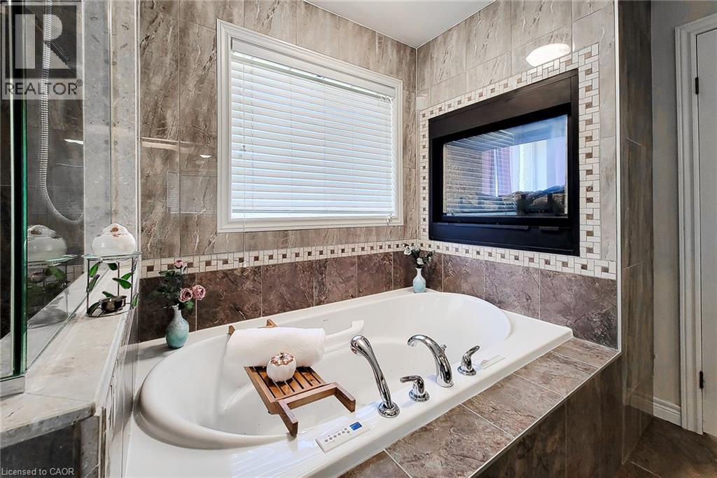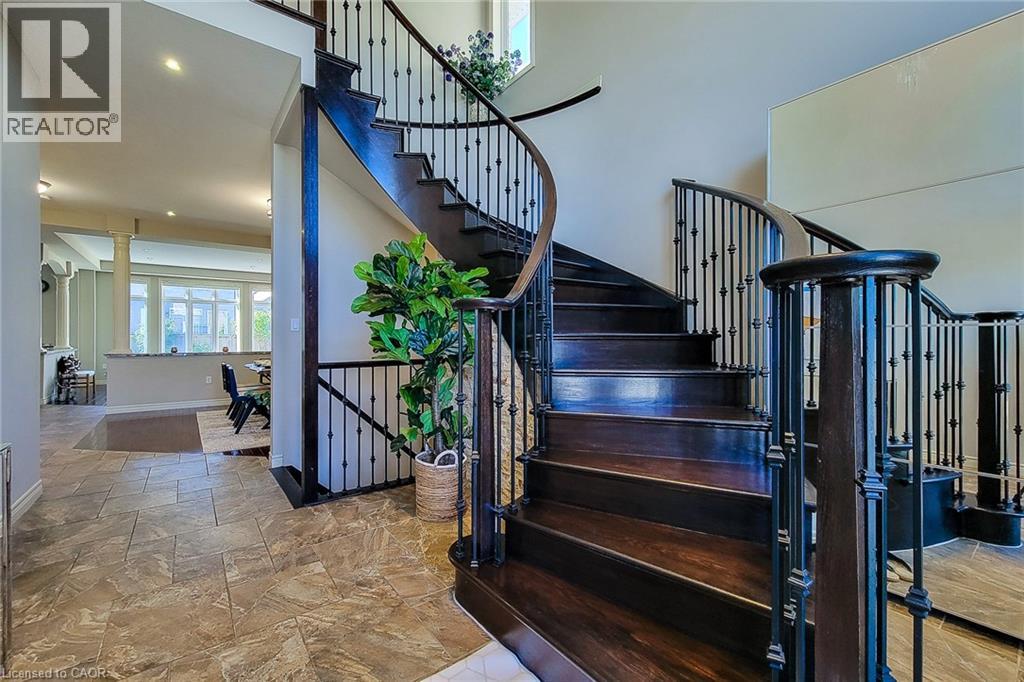 Welcome to this exquisite residence nestled in the prestigious Meadowlands community of Ancaster —a perfect blend of luxury, comfort, and timeless elegance. From the moment you enter, you’ll be captivated by the grand curved oak staircase and soaring 10-foot ceilings, setting the stage for an open-concept design that radiates warmth and sophistication. This thoughtfully crafted home offers approximately 4,450 sq. ft. of refined living space, featuring 5 spacious bedrooms and 5 bathrooms, ideal for family living and entertaining. The chef-inspired gourmet kitchen is the heart of the home, showcasing dual islands, granite countertops, stainless-steel appliances, and views of the sun-filled great room accented by a cozy fireplace and elegant stone feature walls—perfect for gatherings large or small. Upstairs, unwind in your private primary retreat with a two-sided fireplace, spa-like ensuite featuring a Jacuzzi tub, oversized glass shower, and double vanity—a sanctuary designed for relaxation. The fully finished lower level boasts 9-foot ceilings, oversized windows, a recreation and games area, a stylish wet bar, a fifth bedroom, and a full bathroom—ideal for guests, extended family, or entertaining. Step outside to a beautifully landscaped yard and a two-year-new concrete driveway, framed by an elegant stone, brick, and stucco exterior that enhances curb appeal. Additional features include 7 security cameras, an owned hot water tank, and an air exchanger for year-round comfort and peace of mind. This remarkable home truly embodies luxury living at its finest—a must-see for discerning buyers seeking quality and style in one of Ancaster’s most desirable neighborhoods. (69819368)