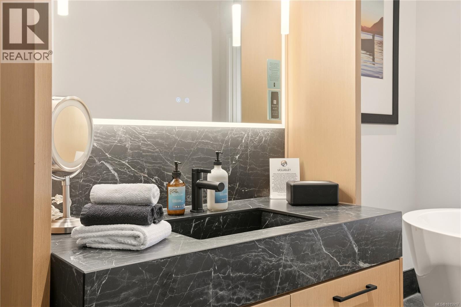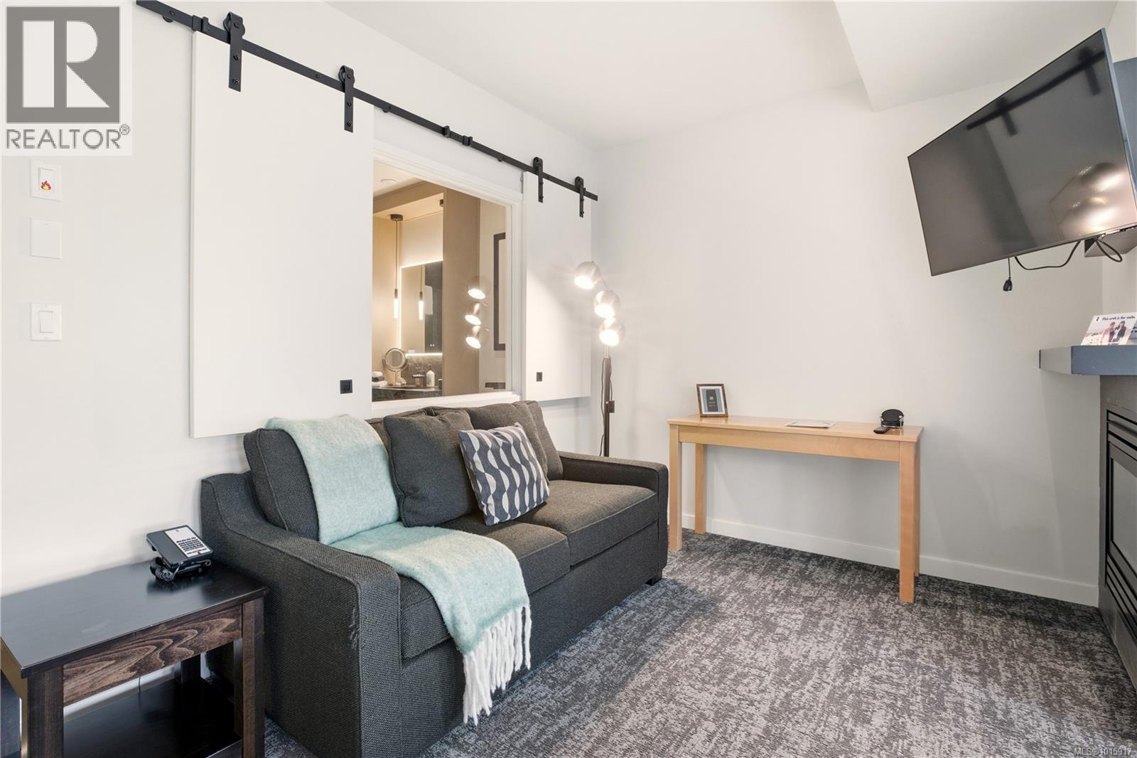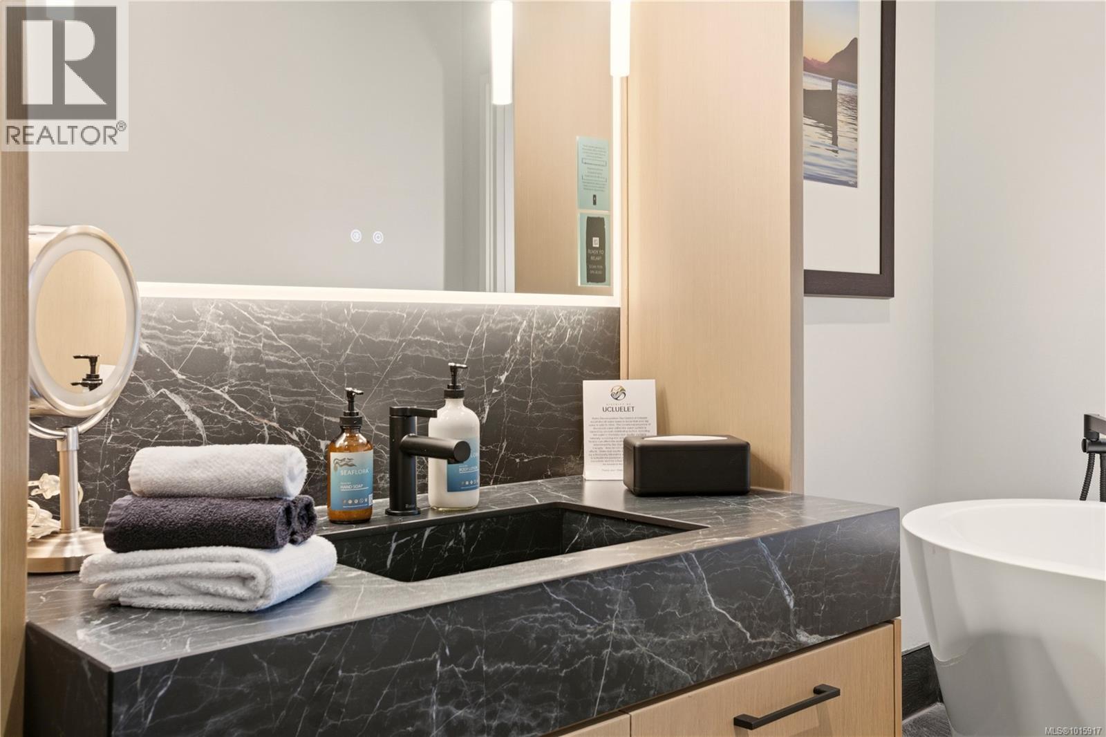 Luxury Studio Suite with Water Views at Black Rock Oceanfront Resort. This upgraded main-lodge studio offers refined coastal living with enhanced privacy and southwest exposure. The custom kitchen expansion includes quartz countertops, extended base cabinetry with oversized drawer and shelving, Wolf induction cooktop, and Whirlpool full-height fridge, convection oven/microwave, and dishwasher. The spacious spa-inspired bathroom features a Riobel rain-head shower, designer sink, pendant lighting, a backlit mirror with adjustable settings, and heated floors. Stay comfortable year-round with a heat pump for heating and cooling plus a cozy gas fireplace. Positioned on the 3rd floor, the suite is easily accessible by elevator and enjoys tree-framed water views and natural light. A premium studio retreat in a sought-after oceanfront resort. (30053522)
