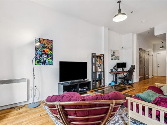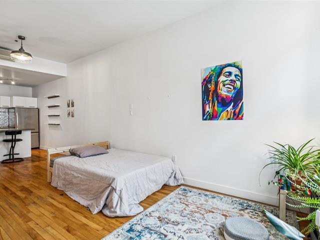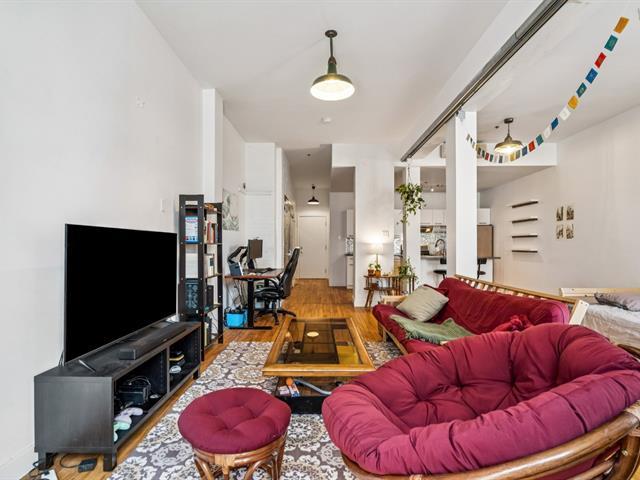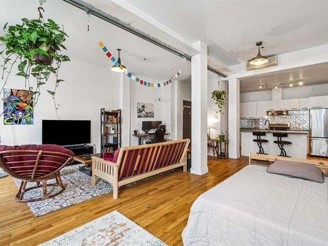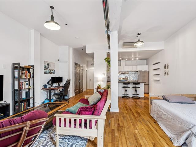Open-concept loft-style condo with high ceilings. Located less than a 10-minute walk from Mont-Royal metro station, it enjoys a prime location in the heart of the Plateau, at the intersection of Saint-Laurent and Mont-Royal avenues, just steps away from the neighborhood's lively cafés, restaurants, and boutiques. Only a short walk from Jeanne-Mance Park, this condo perfectly combines vibrant city living with tranquility. It features a spacious, functional kitchen with a breakfast counter, a full bathroom with separate shower and bathtub, and includes a storage locker. Low condo fees -- ideal for a first purchase or an investment property. (47229861)