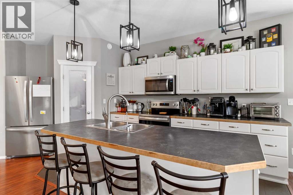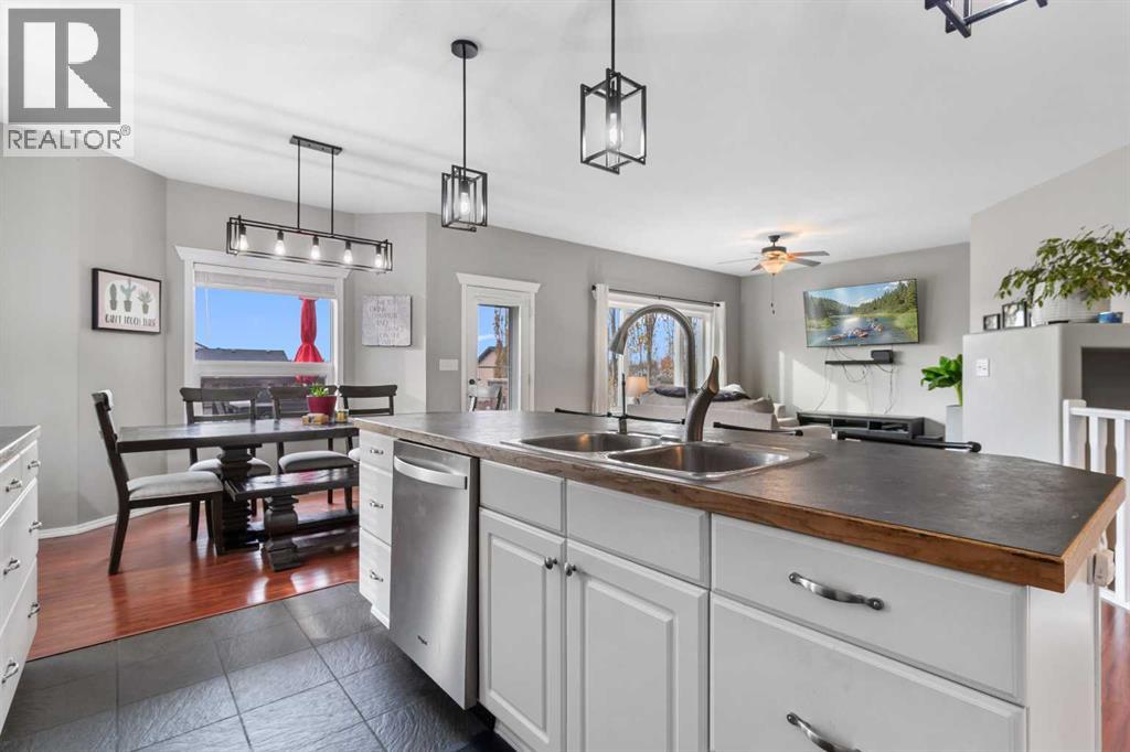 Welcome to this beautiful family home located in Fawn Meadows close to the golf course. With 4 bedrooms and 3 bathrooms, you will have plenty of room for everyone. A generous sized front entry that will lead you around the corner to a large kitchen, dining and adjoining family room. White finish cabinets and a large breakfast bar in the kitchen with lots of windows for plenty of natural light. A garden door out to the deck that overlooks the west facing fully fenced back yard that has RV parking and tons of storage under the deck. Primary bedroom on main floor has a 3 piece bathroom with walk in closet. One more good sized bedroom, a 4 piece bathroom, and the laundry room finish off the main floor. Basement has 2 more large bedrooms, a 3 piece bathroom and a large family room with a roughed in area for a wet bar. Full under-floor heat in the basement and the garage as well as a Centra-Vac system are nice options. The home has fibre optics installed and Includes all appliances with recent upgrades being a new HW Tank, new power board in the furnace, and shingles and siding were done in 2017. Delburne has many amenities including golf, curling, hockey, dog parks, Doctor's Office, Pharmacy, and Grocery Stores. Come for a tour. (31310126)