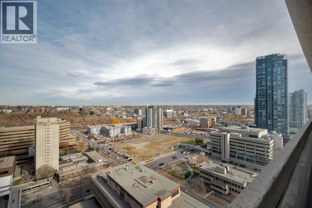 Location! Location! Location! Rocky Mountain Court. This north facing 1 bedroom home is located in the heart of downtown. Located on the 25th floor, it has a beautiful downtown view. This immaculate home has an open floor plan. Huge living room leads to an oversized balcony 8 x 27 ft. with city view. Spacious bedroom with large windows. The kitchen cabinets and bathroom sink have been replaced. The amenities of this building include laundry room on every floor, racquetball court, exercise room with sauna, a rooftop terrance and an underground parking stall (B9), secured front entrance with cameras, on-site building manager 5 days a week, evening security personnel. Endless downtown amenities are within walking distance: the Central library, Stephen Ave, Theatre/ Concert Halls, YMCA, Superstores, restaurants with varieties of cuisines, C-Train & public transportation. It is within walking distance to the Bow river & Princes Island Park. Either to have this as a rental investment or to call this your first home, it is a great buy! (31310426)