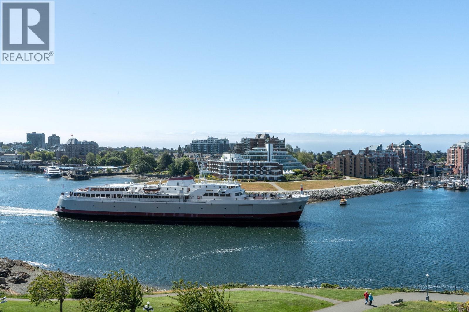 Open House: Sunday 1-3. Unbeatable Songhees Location. Experience exceptional waterfront living in this pristine 2-bedroom, 2-bathroom condo at the highly sought-after Royal Quays. Positioned on the quiet side near the International Marina, this spacious 1,200+ sq ft home has been lovingly cared for by the current owner and showcases active views of Victoria’s vibrant harbour, the Songhees walkway, and the distant Olympic Mountains. A cosy gas fireplace (included in strata fees) anchors the inviting living room. Enjoy the convenience of in-suite laundry, separate storage, and secure parking. This well-run, fully remediated building offers peace of mind and a welcoming community plus a fresh painted & caulked exterior. Long-term rentals are permitted, and pets are welcome (2 cats or 1 dog, no size limit). Steps from the waterfront trail, Boom & Batten restaurant, and shops - embrace an unbeatable lifestyle on Victoria’s stunning inner harbour. (30061820)