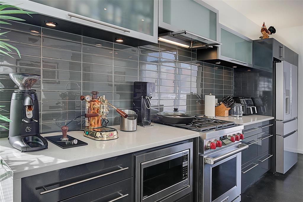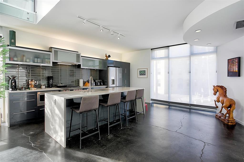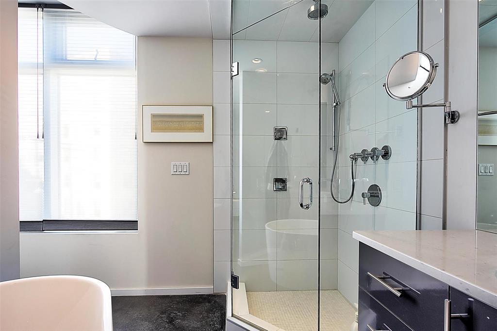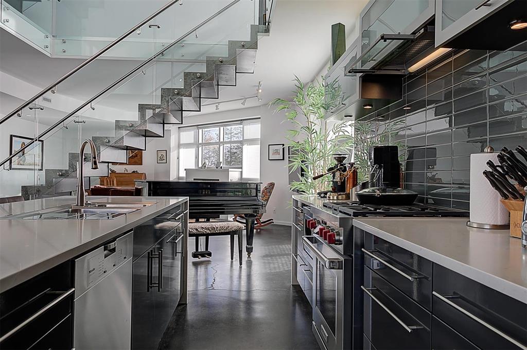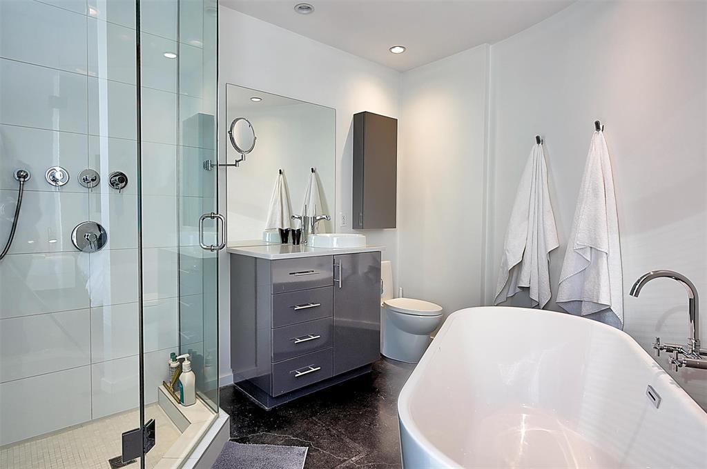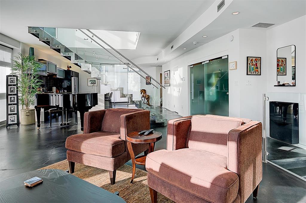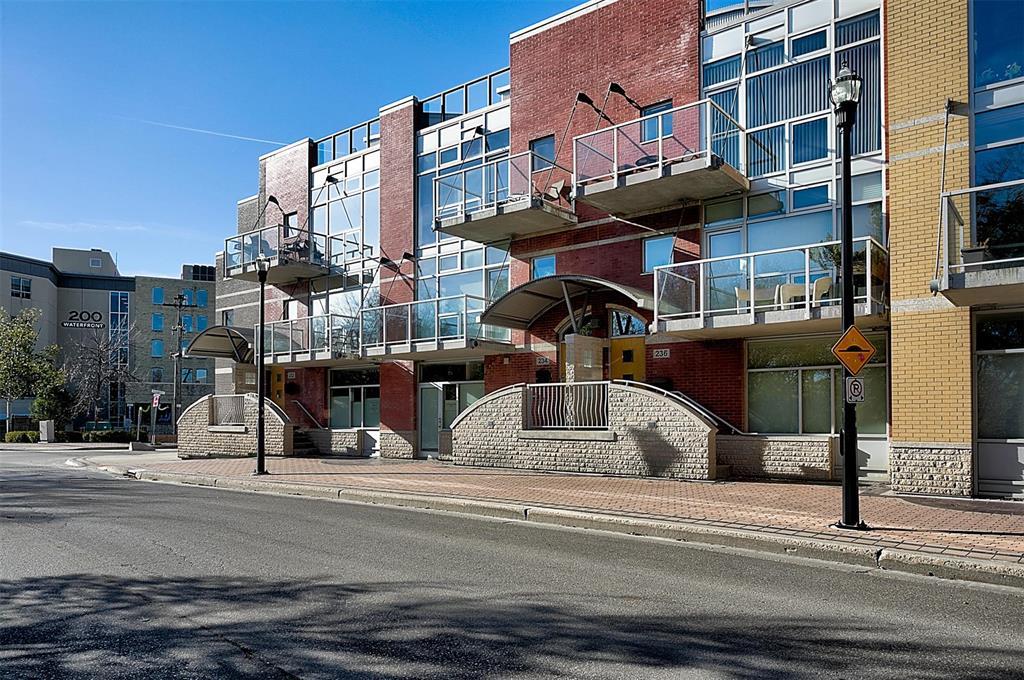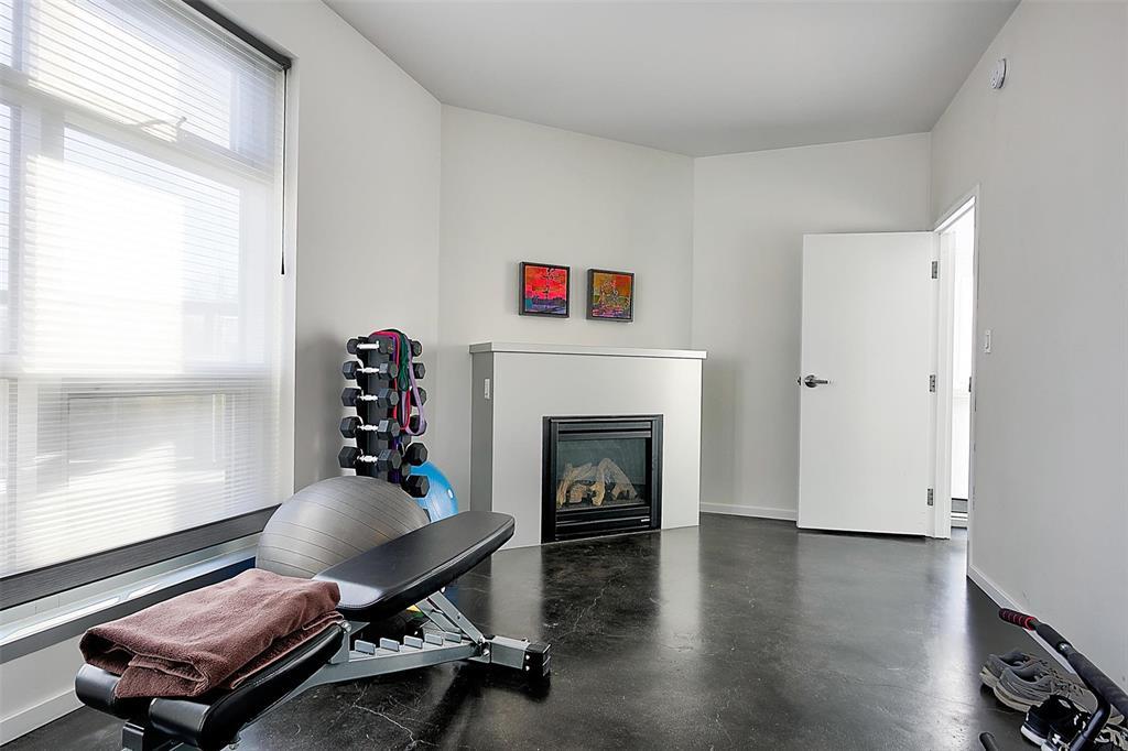 9A//Winnipeg/Welcome to Ship Street Condos! This spacious townhouse condo offers stunning modern finishes and incredible natural light throughout. The main floor features a bright open concept with custom floating concrete staircase. Living Room with floor-to-ceiling windows two-sided gas fireplace overlooking Waterfront Dr. Open concept Kitchen/Dining Room with ample cupboard and counter space, and high-end appliances including a Wolf dual fuel range and GE Cafe 4-door fridge. Main floor laundry and powder room. Two Bedrooms and 2 washrooms on the second level. The Primary Bedroom boasts a curved feature wall and 4-piece en-suite with standalone shower and tub. Second Bedroom with gas fireplace, 3-piece en-suite, and private balcony overlooking Stephen Juba park. The third floor provides access to the panoramic rooftop deck with over 600 square feet of outdoor space overlooking the Red River and downtown Winnipeg. Secure parking in the oversized, heated double garage on the main level with access to the private elevator (shared with next-door neighbour). Heated throughout with hydronic in-floor heat, with supplemental forced air heating and A/C. Located on the South corner with East, South, and West exposure. (231571230)