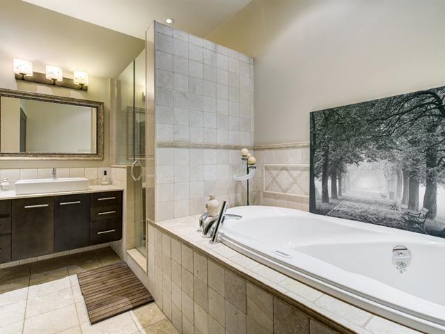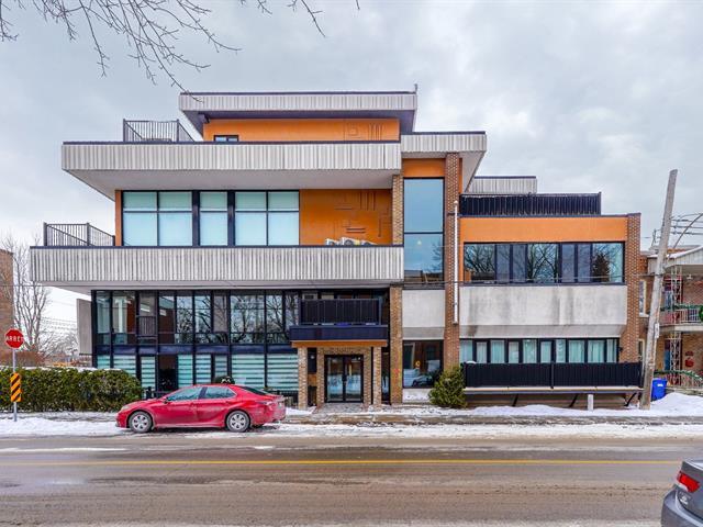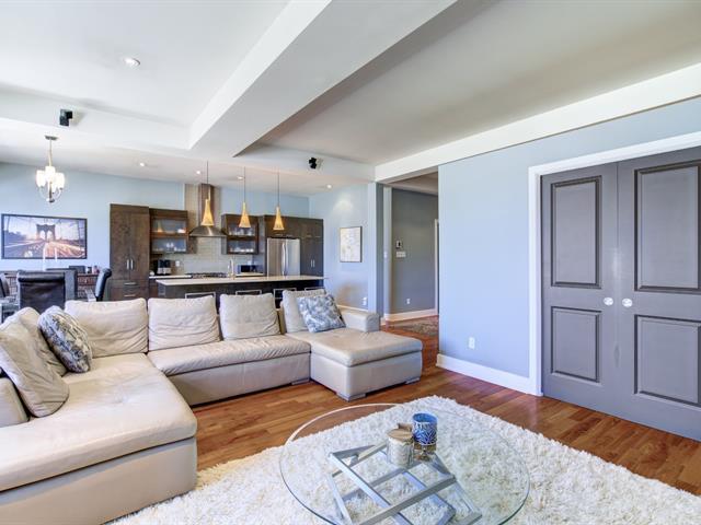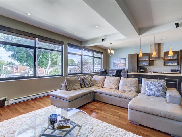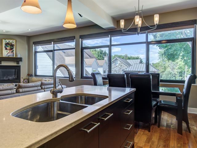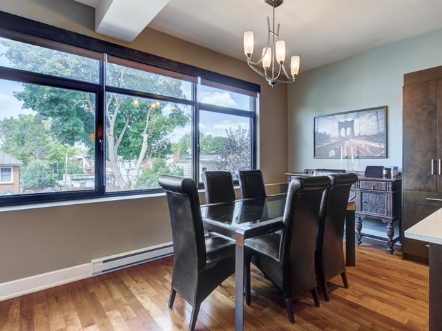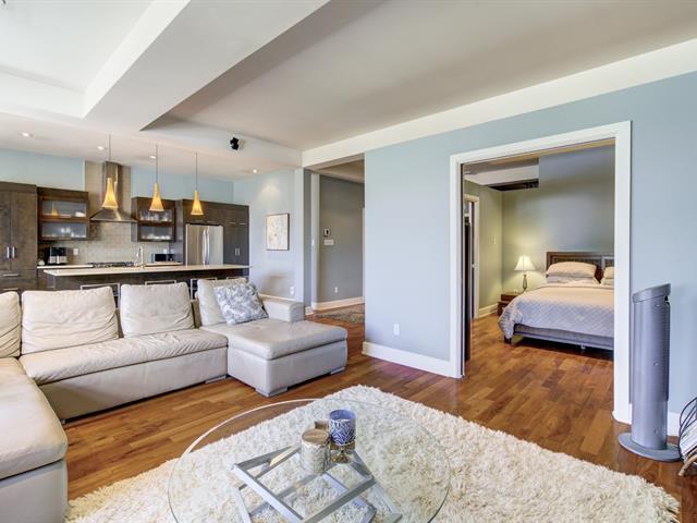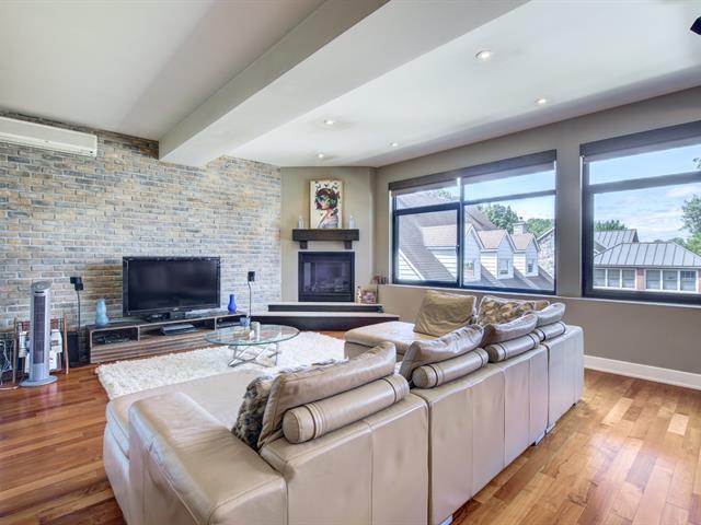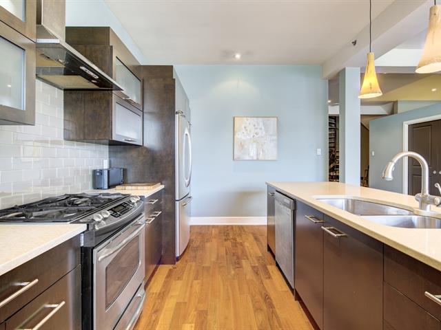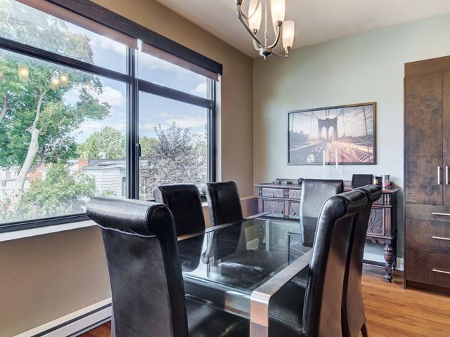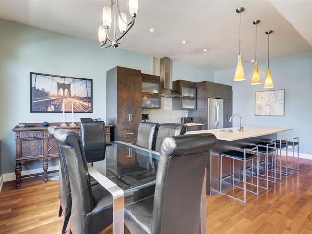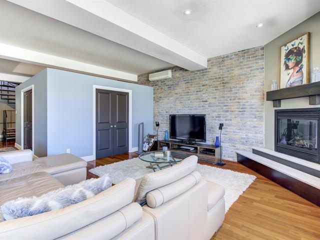 Discover this 1,560 sq. ft. condo on 2 floors with a magnificent private terrace of over 500 sq. ft. Generous windows and abundant light. Unit on two floors: on the first floor, open space with modern kitchen, living room, dining room, bedroom and bathroom/laundry room. 2nd bedroom, bathroom and kitchenette upstairs with access to the terrace. There is a priate entrance directly to the 3rd floor. High ceilings and gas fireplace. Storage and garage included. Elevator in the building. Close to Parc des Rapides and its bike path along the Saint-Laurent and a 5-minute drive from Place LaSalle. (54262751)