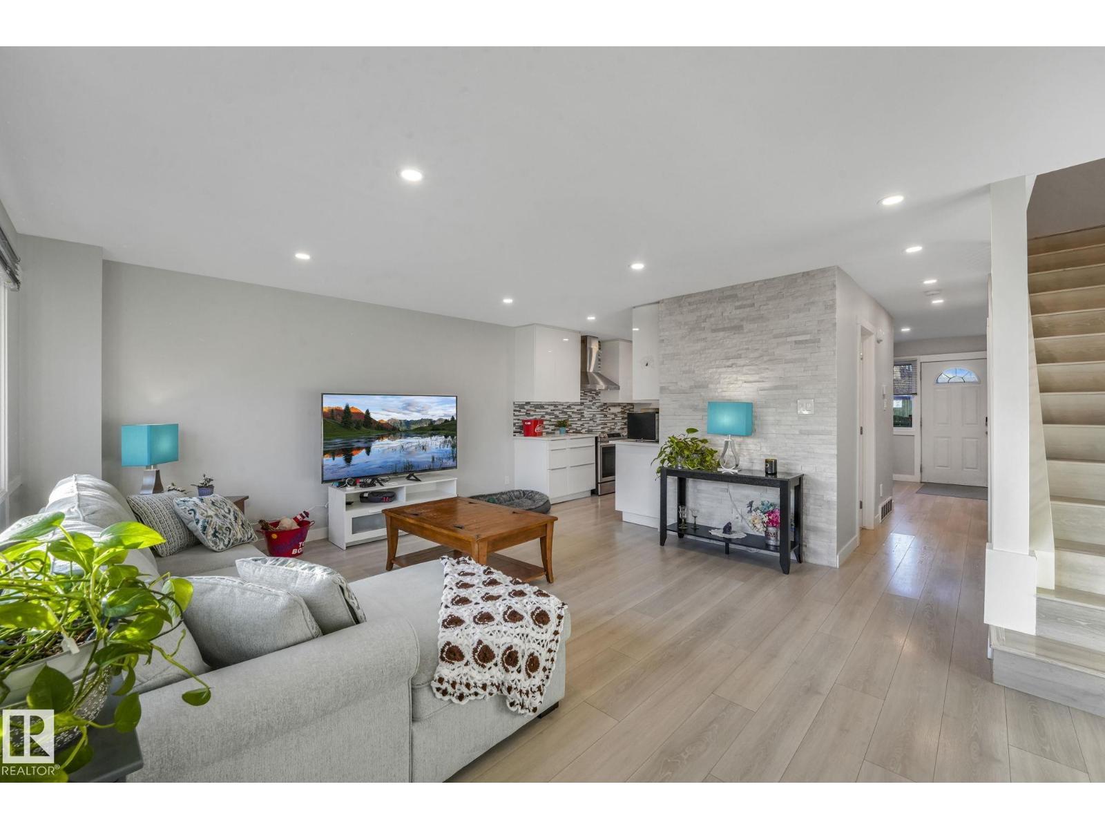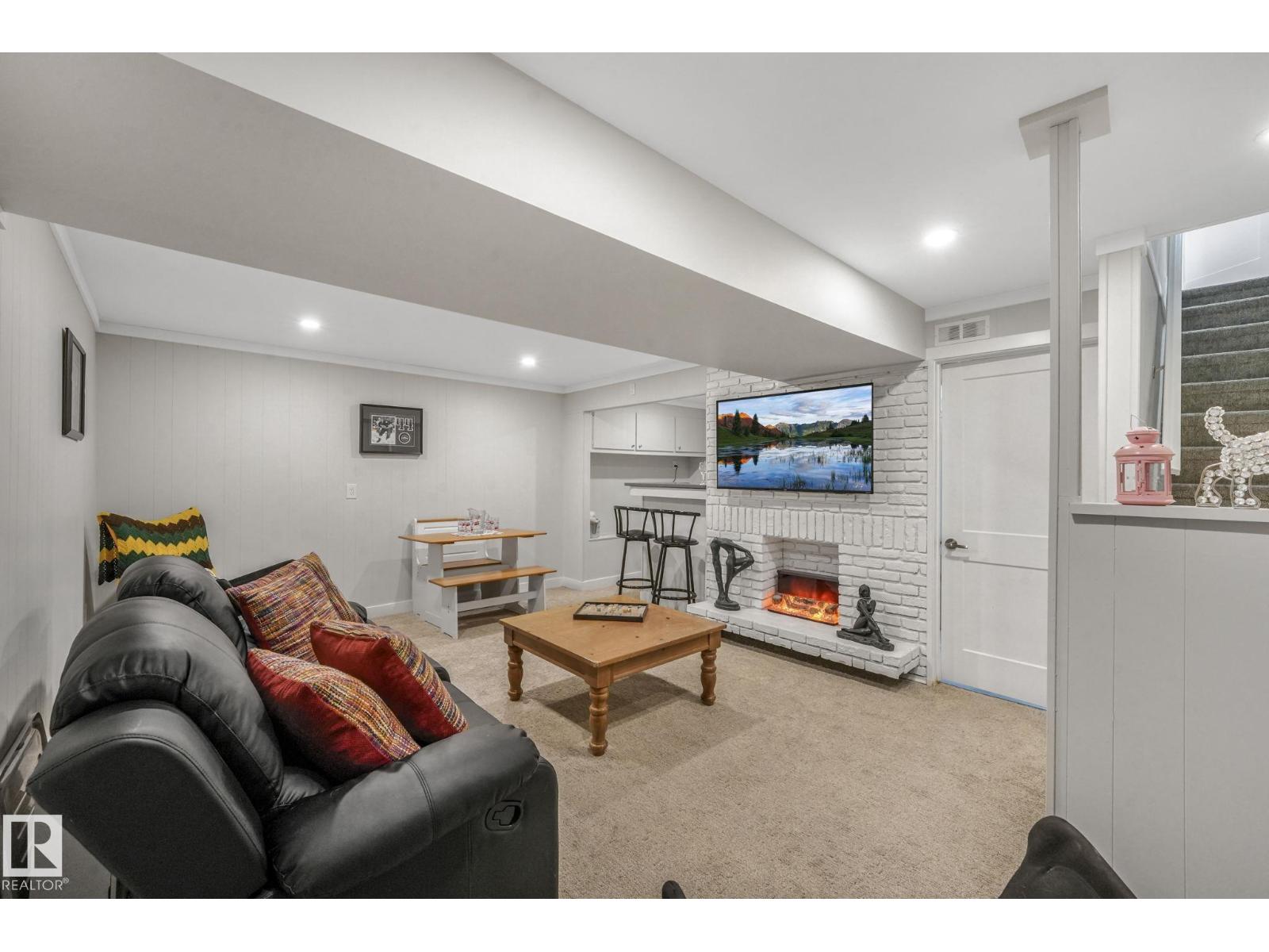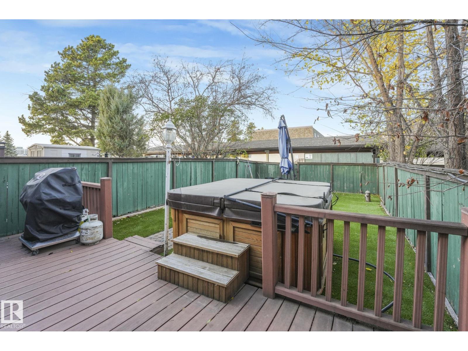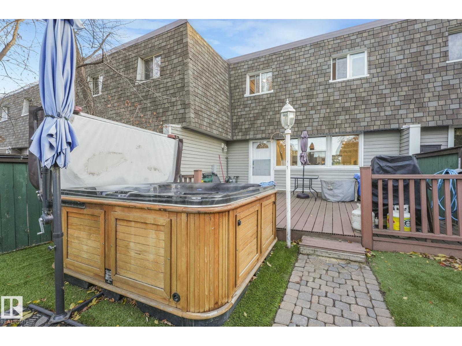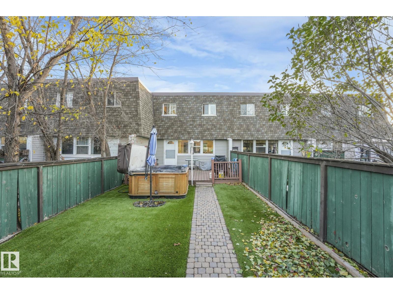 This professionally renovated 2-storey townhouse with upgraded finishings and appliances throughout is extremely well maintained. Upgrades include: Flooring, lighting, electrical, kitchen cabinets, taps, sinks, tile backsplash, toilets, tub, wood finishings, doors and much more! The main level offers a bright and spacious living room with a gorgeous stone feature wall. Walk through kitchen into the dining area, laundry area and a half bath complete the main floor. Upstairs there are 3 generous sized bedrooms with the Primary bedroom offering 2 closets, one which is a walk-in. The basement features a large rec room accommodated by a bar and a workshop area, perfect for entertaining. The backyard includes a large deck, professional installed artificial grass and newer High end Arctic Spas Hot Tub, as well as two covered parking stalls. Within walking distance of Londonderry Mall, schools, public transportation. (33509429)