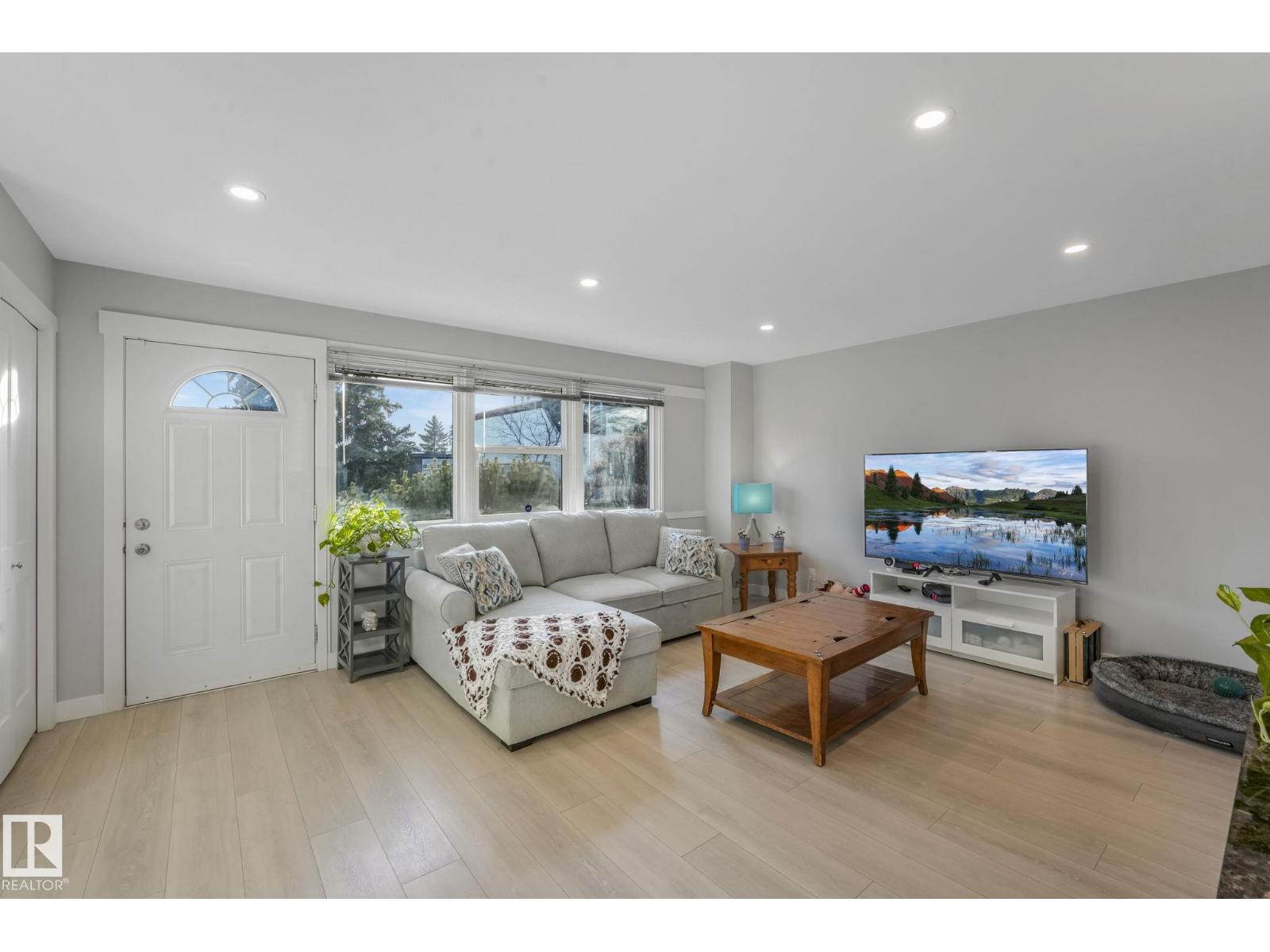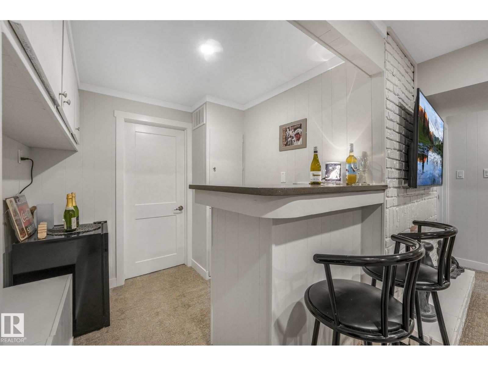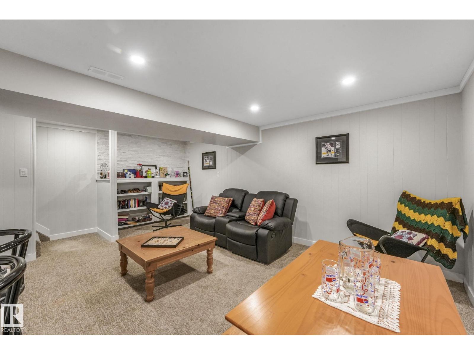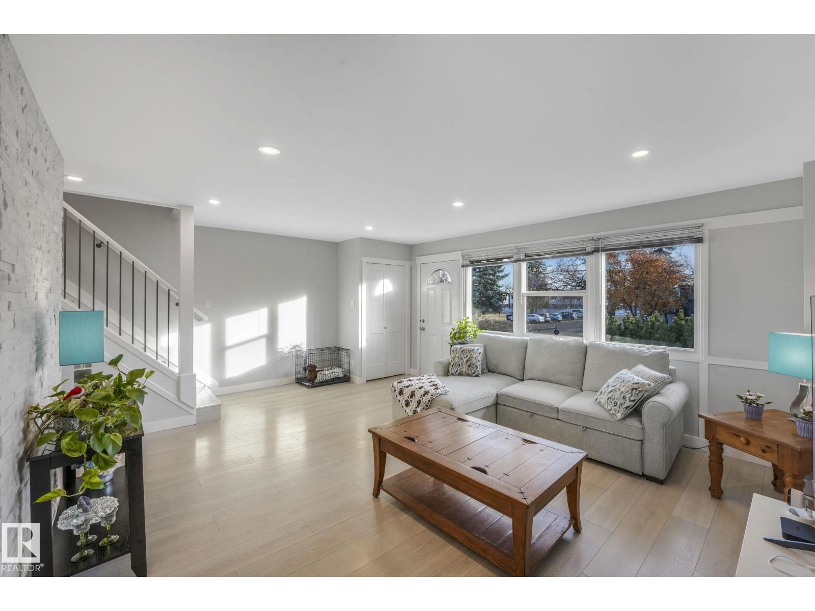 This professionally renovated 2-storey townhouse with upgraded finishings and appliances throughout is extremely well maintained. Upgrades include: Flooring, lighting, electrical, kitchen cabinets, taps, sinks, tile backsplash, toilets, tub, wood finishings, doors and much more! The main level offers a bright and spacious living room with a gorgeous stone feature wall. Walk through kitchen into the dining area, laundry area and a half bath complete the main floor. Upstairs there are 3 generous sized bedrooms with the Primary bedroom offering 2 closets, one which is a walk-in. The basement features a large rec room accommodated by a bar and a workshop area, perfect for entertaining. The backyard includes a large deck, professional installed artificial grass and newer High end Arctic Spas Hot Tub, as well as two covered parking stalls. Within walking distance of Londonderry Mall, schools, public transportation. (33509429)