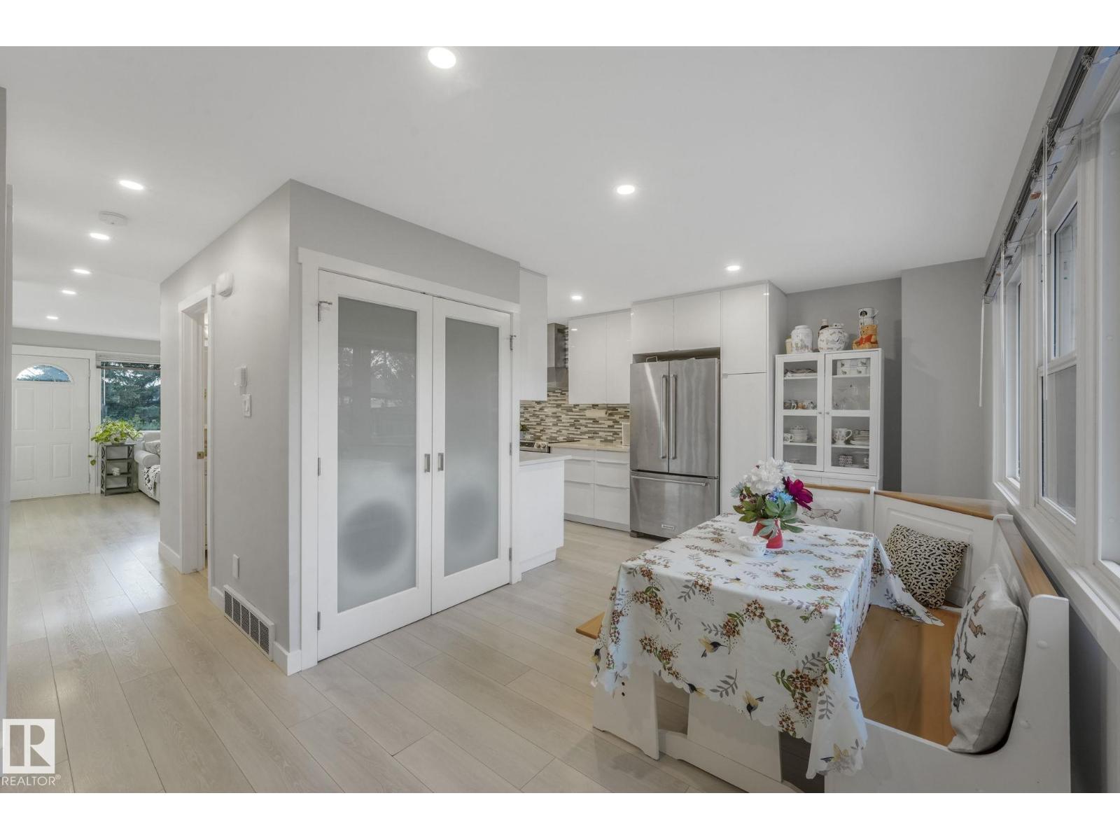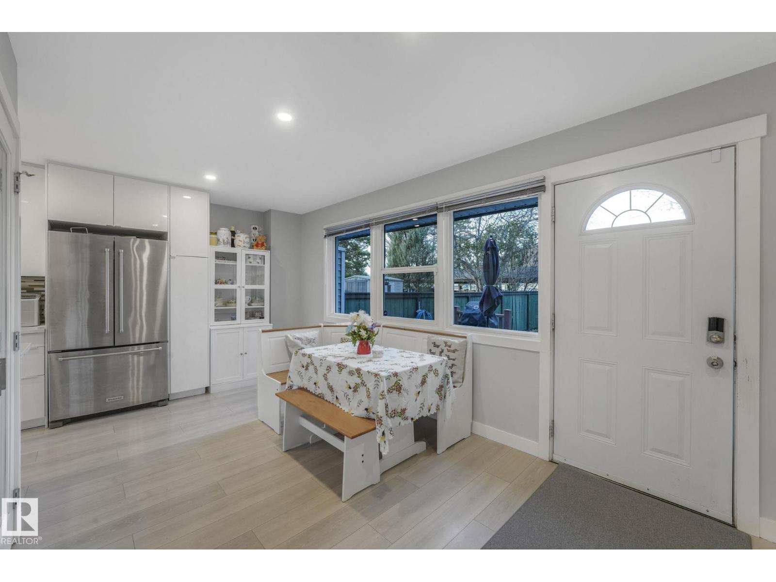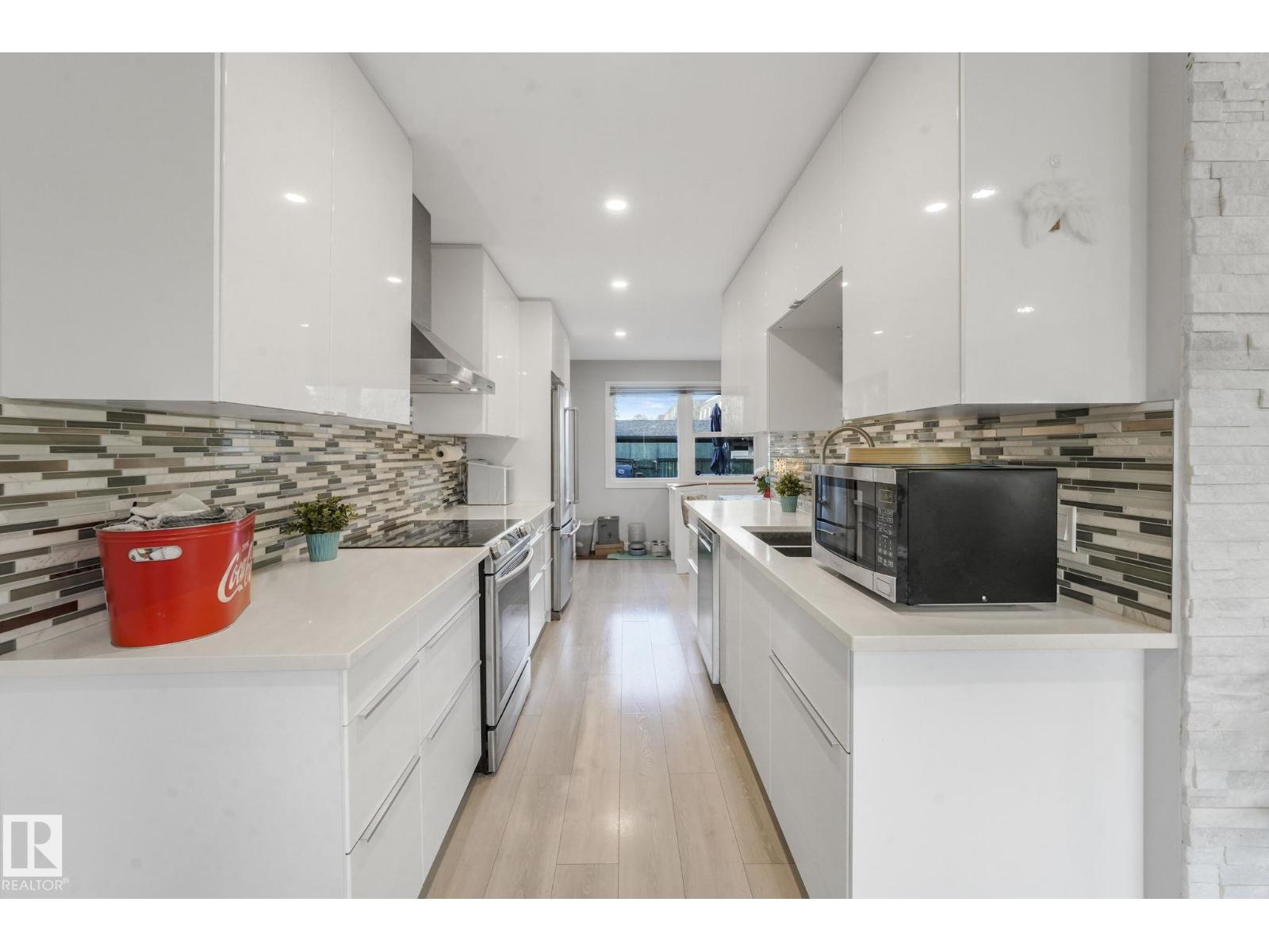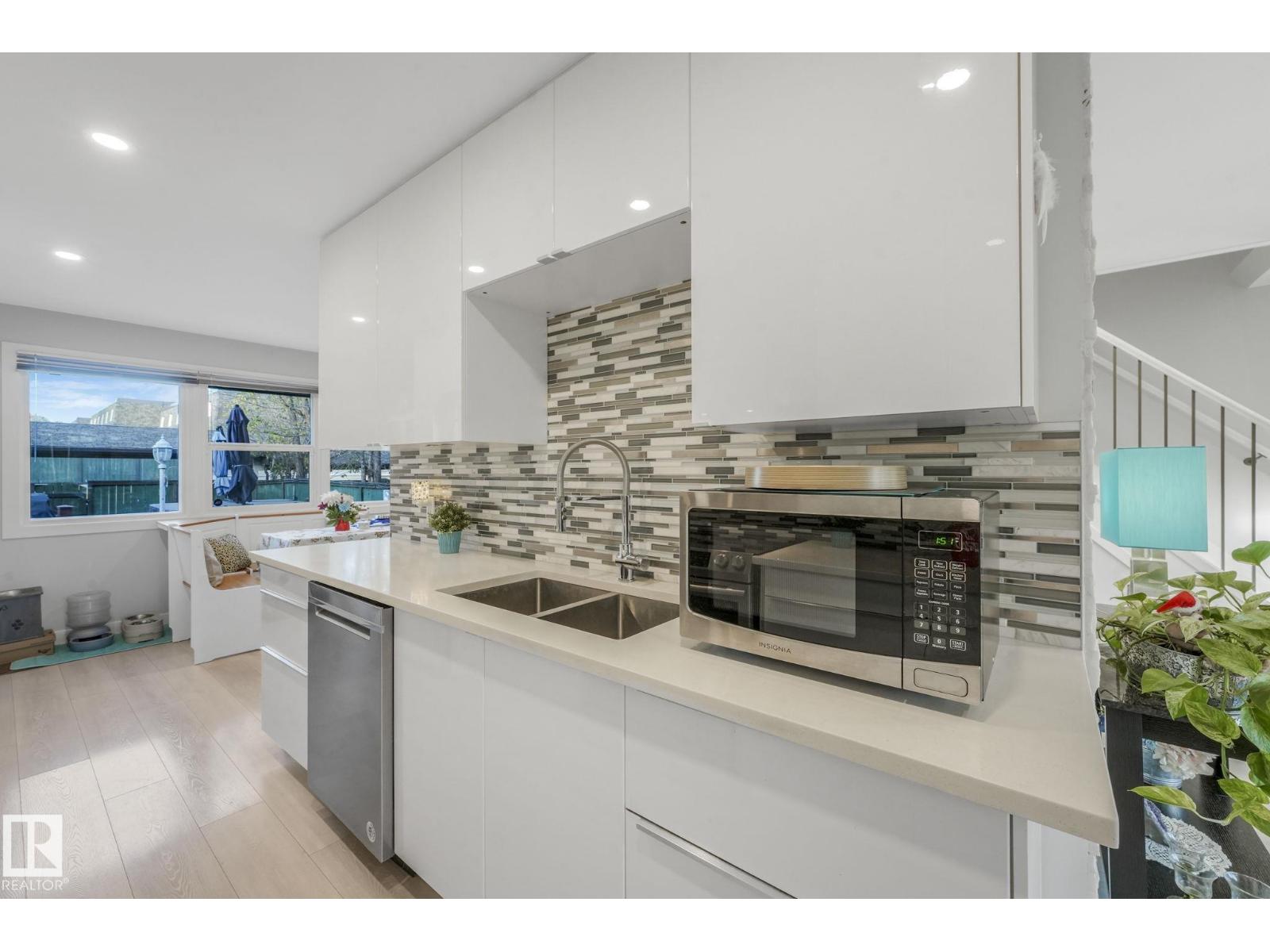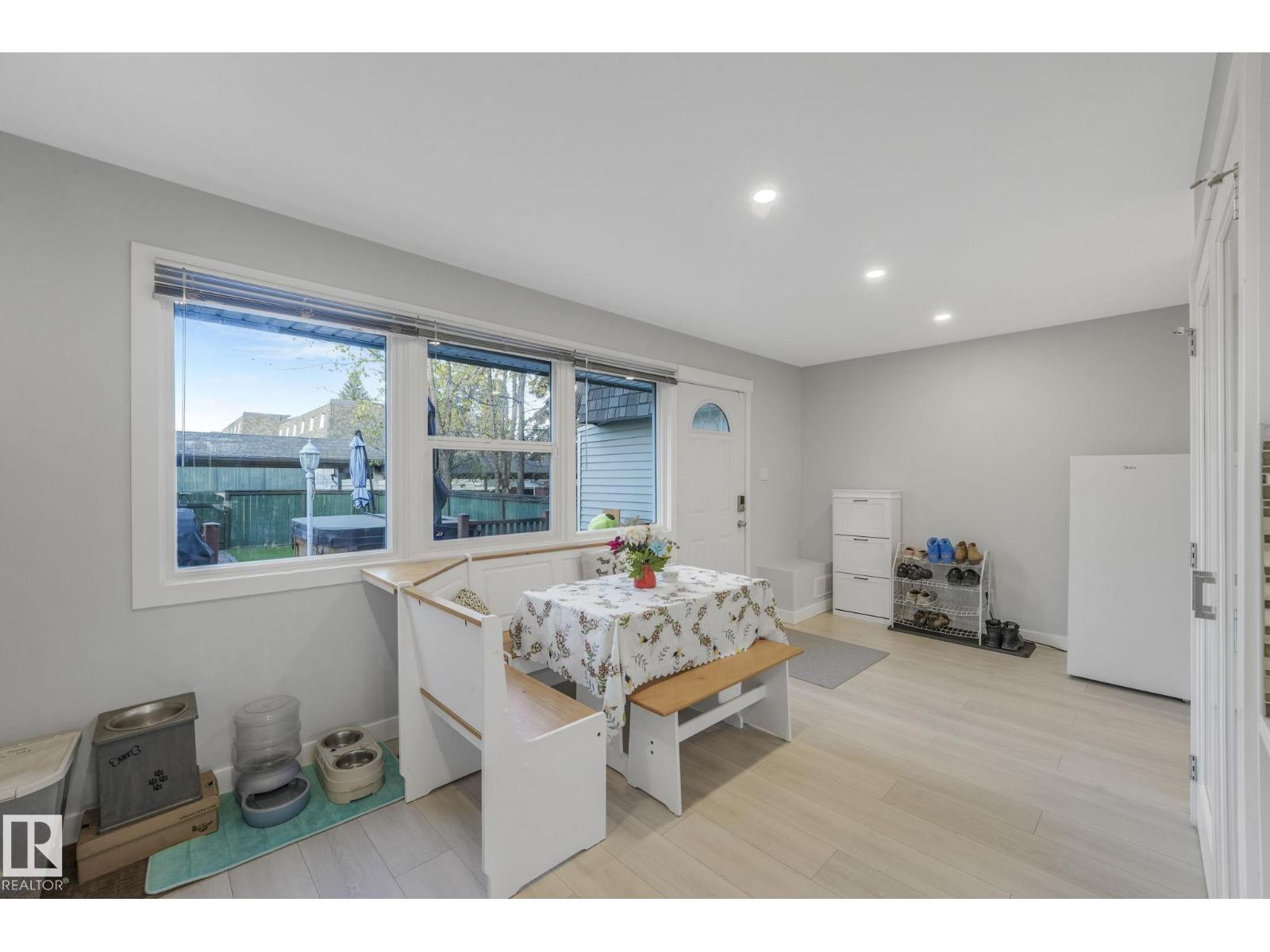 This professionally renovated 2-storey townhouse with upgraded finishings and appliances throughout is extremely well maintained. Upgrades include: Flooring, lighting, electrical, kitchen cabinets, taps, sinks, tile backsplash, toilets, tub, wood finishings, doors and much more! The main level offers a bright and spacious living room with a gorgeous stone feature wall. Walk through kitchen into the dining area, laundry area and a half bath complete the main floor. Upstairs there are 3 generous sized bedrooms with the Primary bedroom offering 2 closets, one which is a walk-in. The basement features a large rec room accommodated by a bar and a workshop area, perfect for entertaining. The backyard includes a large deck, professional installed artificial grass and newer High end Arctic Spas Hot Tub, as well as two covered parking stalls. Within walking distance of Londonderry Mall, schools, public transportation. (33509429)