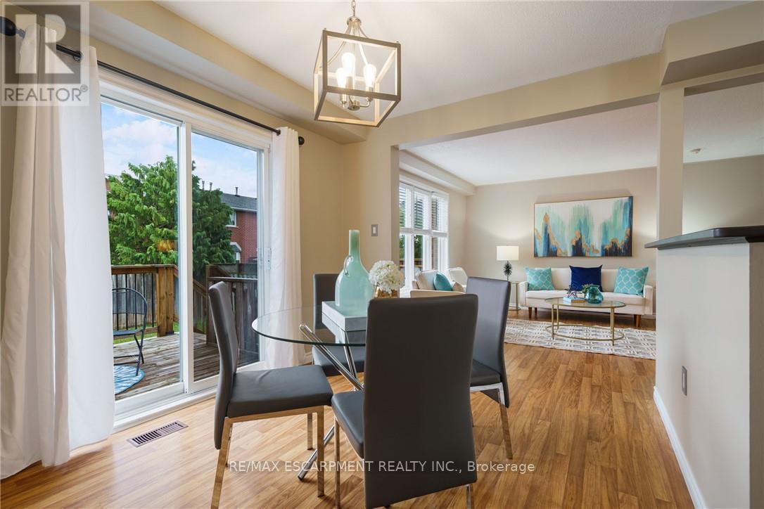 Welcome to 85 Chelsea Crescent in Sherwood Village! This beautifully maintained 3-bedroom, 3-bathroom freehold townhome is located in highly sought-after Lower Stoney Creek and offers a rare double-car garage with inside entry, garage door opener, and double driveway. Inside, you'll find a bright open-concept living and dining area that flows into the updated kitchen, complete with a large breakfast bar-perfect for family time and entertaining. The main floor features newer laminate flooring, and the dining room opens through sliding doors to a lovely two-tier deck with a gas BBQ hookup and a fully fenced backyard. Upstairs, there are two bedrooms plus a full main bath, along with a private principal suite on its own level, featuring a 2-piece bathroom and two large closets. The additional bedrooms also offer generous closet space. The finished lower level provides even more living space with a spacious family room, plenty of storage, and a convenient 3-piece bathroom with a separate shower. The home has been freshly painted, and the exterior showcases well-kept landscaping-making it completely move-in ready. All of this in a quiet, family-friendly location, close to schools, parks, shopping, churches, and with easy access to the highway. (41538574)