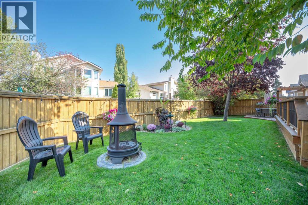 Welcome to this beautifully upgraded home with extra side yard, located just a short walk from the private lake, two schools, parks, river pathways and shopping. From the moment you step inside, you’ll be impressed by the grand vaulted entrance, showcasing inlaid tile flooring and a sense of timeless sophistication. The home has been extensively refreshed, the main floor features an updated half bath, a front flex room, a formal dining room, and a bright dinette that flows seamlessly into the living room, complete with a cozy gas fireplace for cooler nights. The completely renovated kitchen is a showstopper, boasting quartz countertops, new white slow-close cabinetry, custom backsplash, stainless steel appliances, undermount lighting, and thoughtful design throughout, perfect for both everyday living and entertaining. Upstairs, you’ll find four spacious bedrooms, a laundry room, and an open den area ideal for a home office or study nook. Both bathrooms have been fully renovated, including a four-piece main bath and a luxurious four-piece ensuite with high-end finishes. The fully finished basement expands your living space with two large rec rooms that include the 75" TV, a fifth bedroom, and another three-piece bathroom—offering flexibility for guests, hobbies, or family movie nights. Outdoors, enjoy the massive deck and patio designed for entertaining with a retractable awning, hot tub ready, and complemented by multiple storage sheds. Additional updates include a newer roof, upgraded vinyl windows, PEX plumbing, updated hot water tanks, water softener, a new furnace with heat pump, and a heated double attached garage with a 220 outlet—ensuring year-round comfort and peace of mind. This meticulously maintained home truly has it all: show home quality, modern upgrades and an unbeatable location in a family-focused community with access to excellent schools, golf courses, and the beauty of nearby Fish Creek Park and the Bow River. Quick access to Deerfoot and Stoney Trail ensures easy connectivity across the city. Call today for your own private showing! (31317564)
