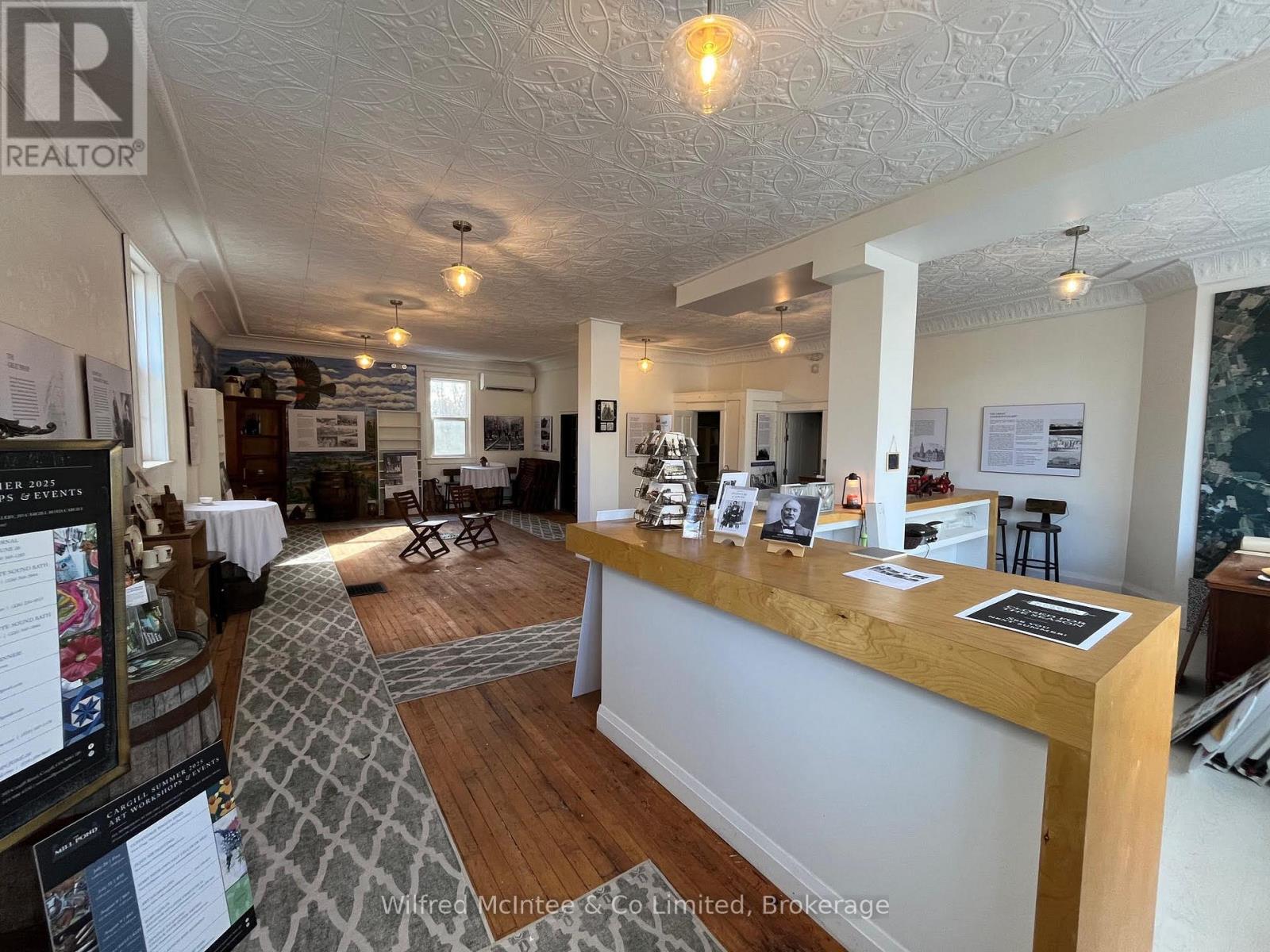 Discover a beautiful, spacious 1200 sq. ft. space filled with natural light in the heart of the quaint Hamlet of Cargill. Overlooking the Teeswater River, this unique property - formerly the "Bank" of Cargill - even still features its original vault! Includes with 8 ft ceilings, hardwood floors, a bathroom, and a large countertop/reception area, there is endless potential here. Also possibility for basement rental as well. Come for a viewing to take in the beauty of this space. (41543388)