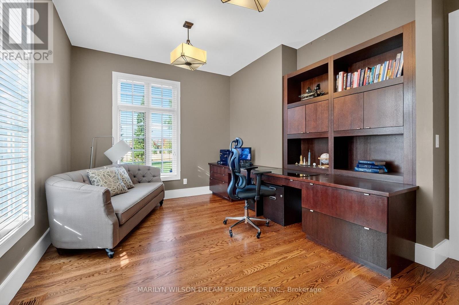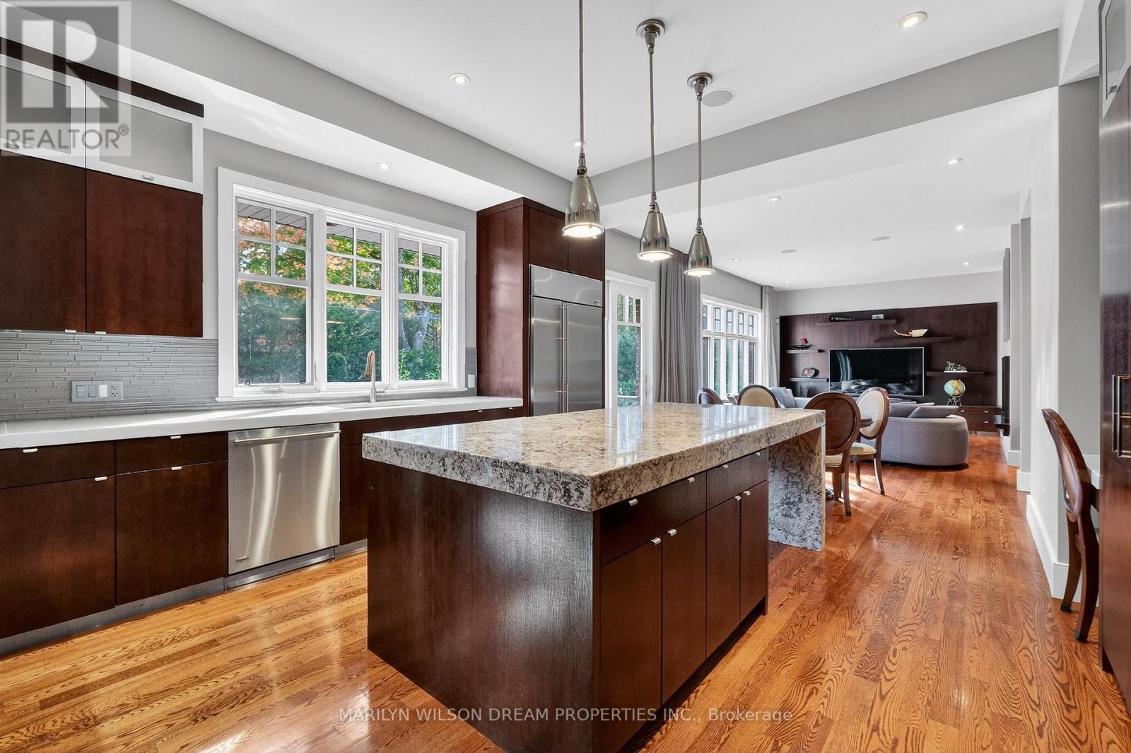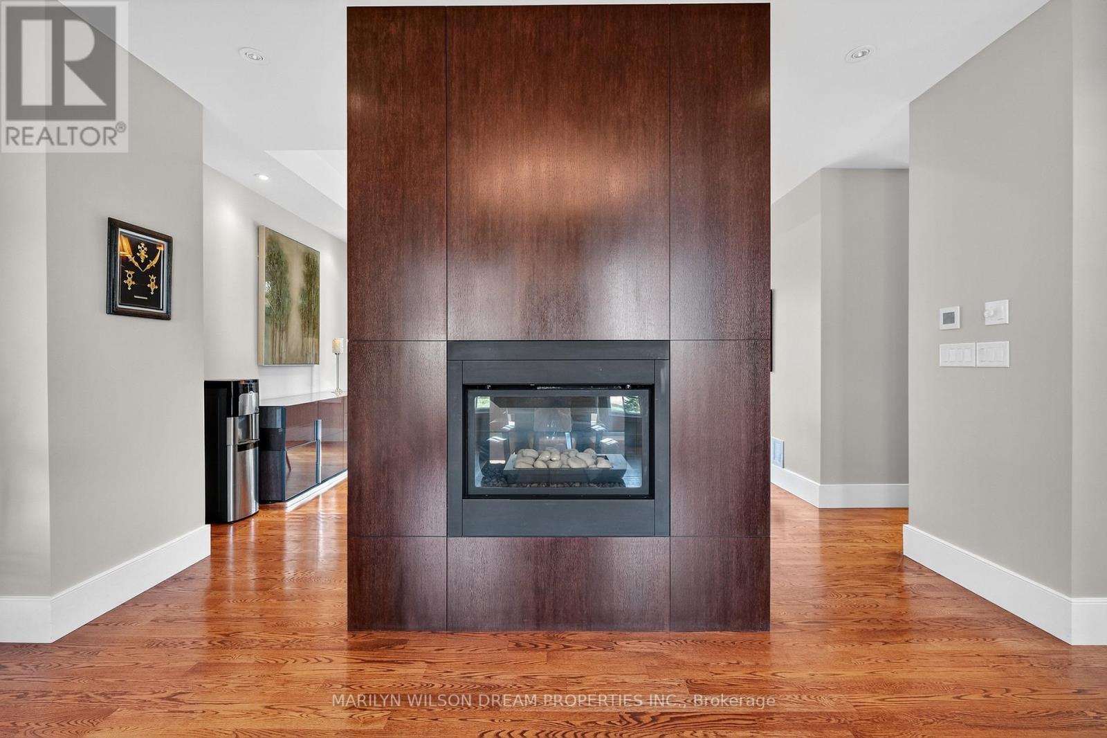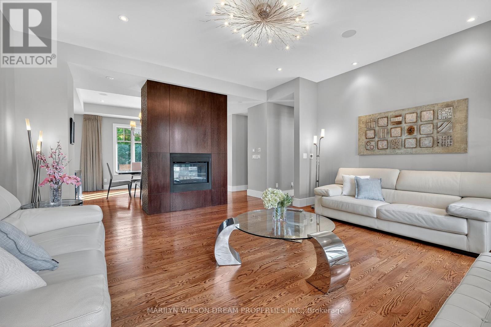 Beautifully positioned across from serene parkland, this distinguished Rockcliffe Park residence offers rare privacy and tranquil natural views. This custom home was built in 2008 by Minto and stands apart as one of the community's newer homes. It offers an elegant brick-and-stone façade complemented by expansive windows that invite in parkland views. Inside, the home features 10-foot ceilings on the main floor and 9-foot ceilings above. The grand double-height foyer, with 22-foot ceilings and striking modern lighting, sets the tone for the home's airy, light-filled interiors. The living and dining rooms are divided by a dramatic double-sided rift-cut oak fireplace accented in sandstone - an architectural focal point that balances warmth and sophistication. The chef's kitchen continues the theme of understated luxury, with custom rift-cut oak cabinetry, quartz countertops, a glass backsplash, and a statement granite island. Open to the family room and leading directly to the landscaped terrace, it's ideal for both daily living and entertaining. The main-floor study, with built-in cabinetry and views of the park, provides a peaceful retreat. Upstairs, four bedrooms each feature their own ensuite bathroom, while the primary suite offers a spa-inspired haven with a steam shower, freestanding soaking tub, and double vanity. The second-floor laundry room is outfitted with a sink and hanging space for convenience. The lower level enhances the home's livability with radiant-heated floors, a fully-equipped home theatre with surround sound, an exercise room, a four-piece bathroom, and direct access to the double garage. Designed with comfort and modern functionality in mind, this Rockcliffe Park residence seamlessly combines timeless craftsmanship with contemporary luxury in a superb setting. (41543904)